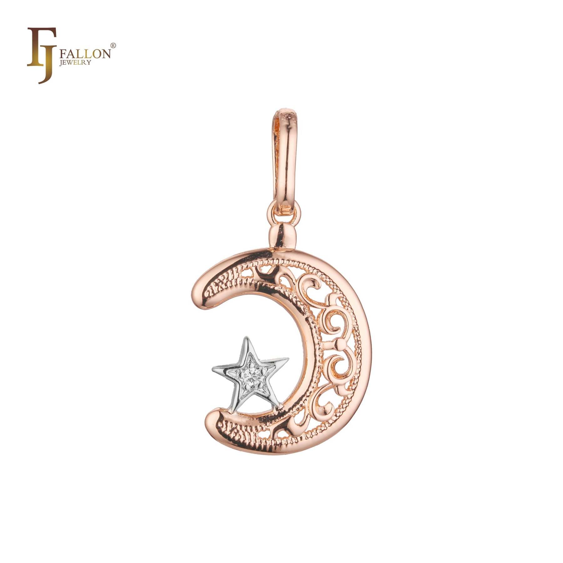 Star and Crescent moon Islamic Rose Gold, 14K Gold two tone, White Gold pendant