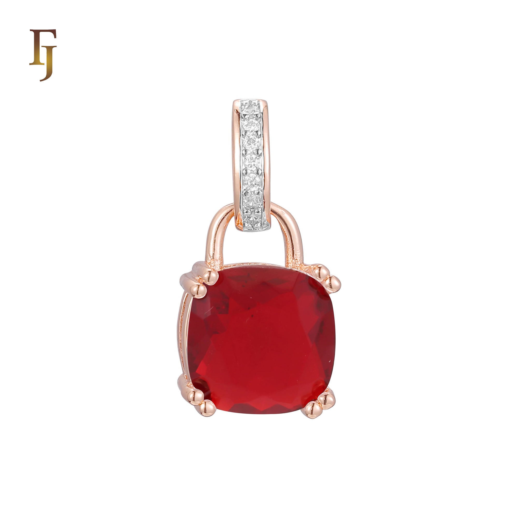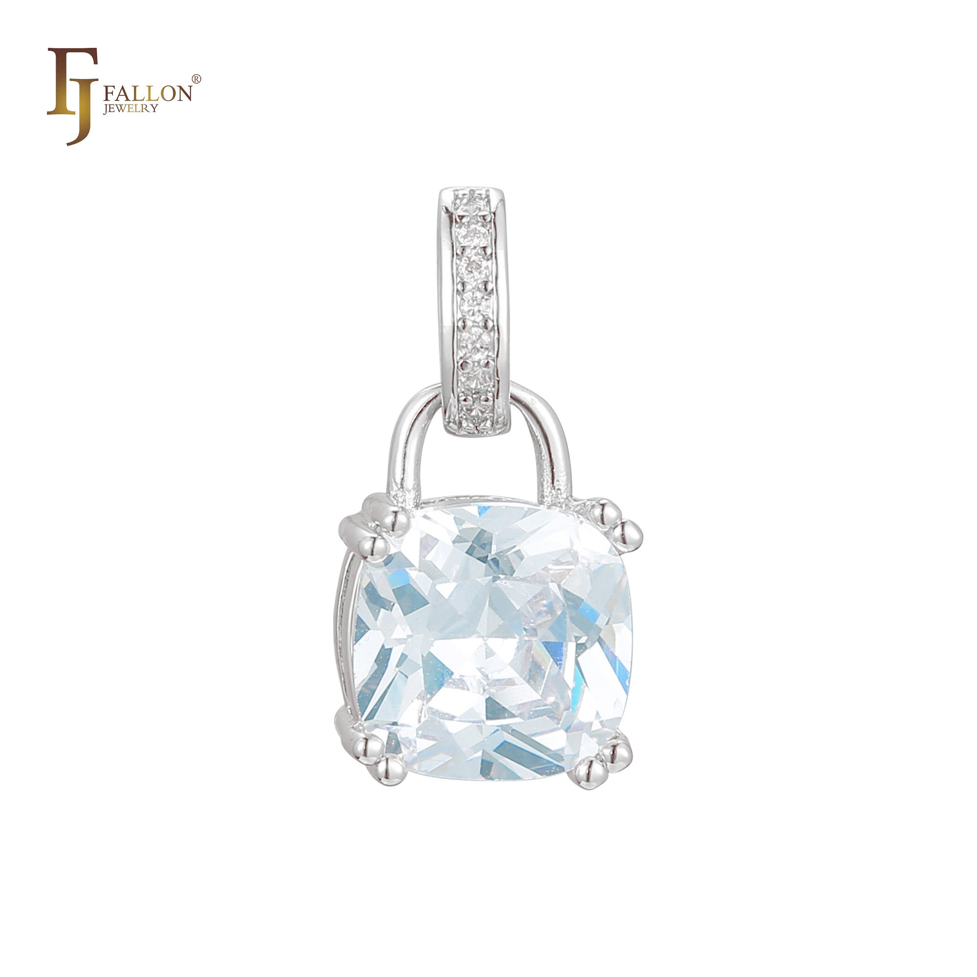 🔥 Lock solitaire cushion cut cz Rose Gold two tone, 14K Gold pendant