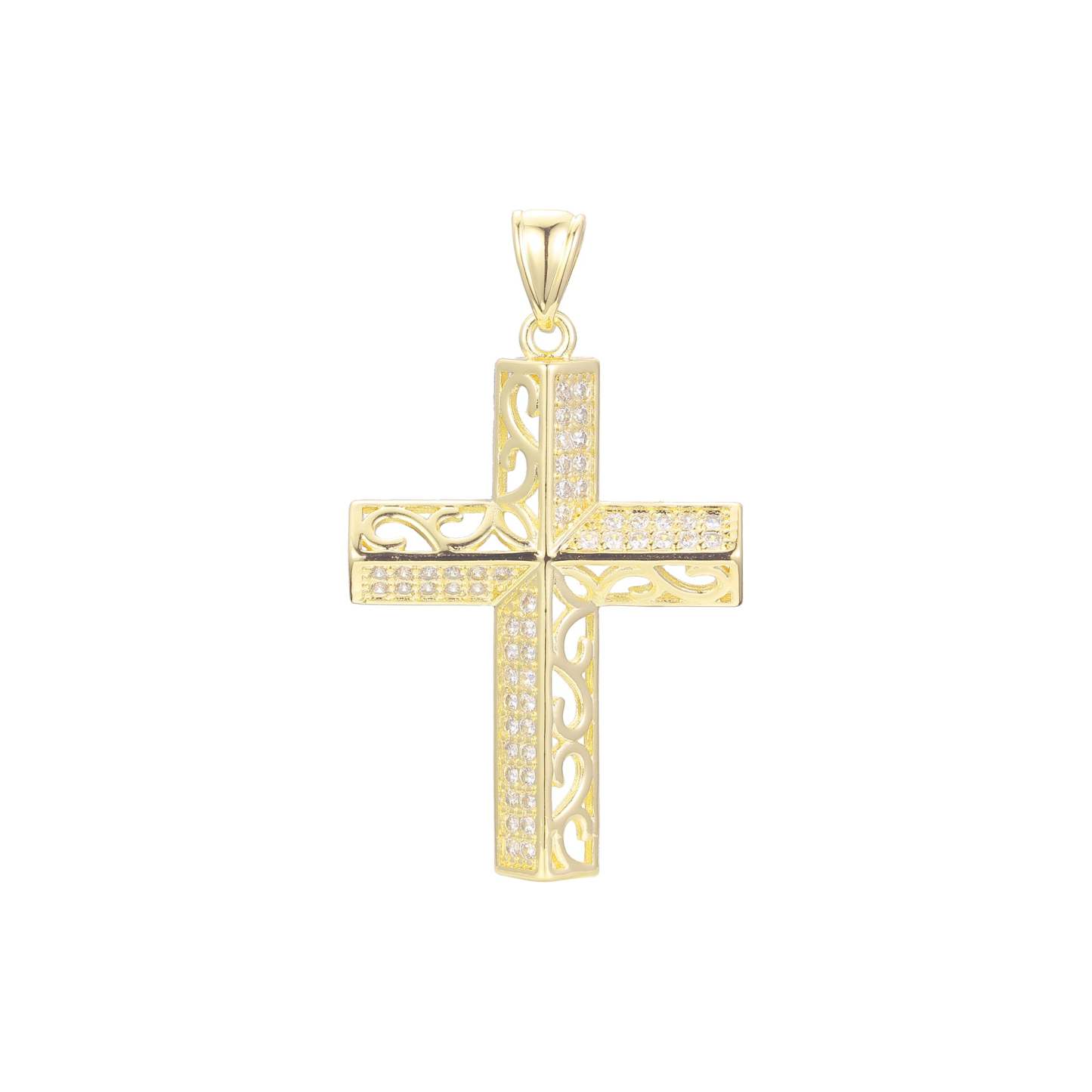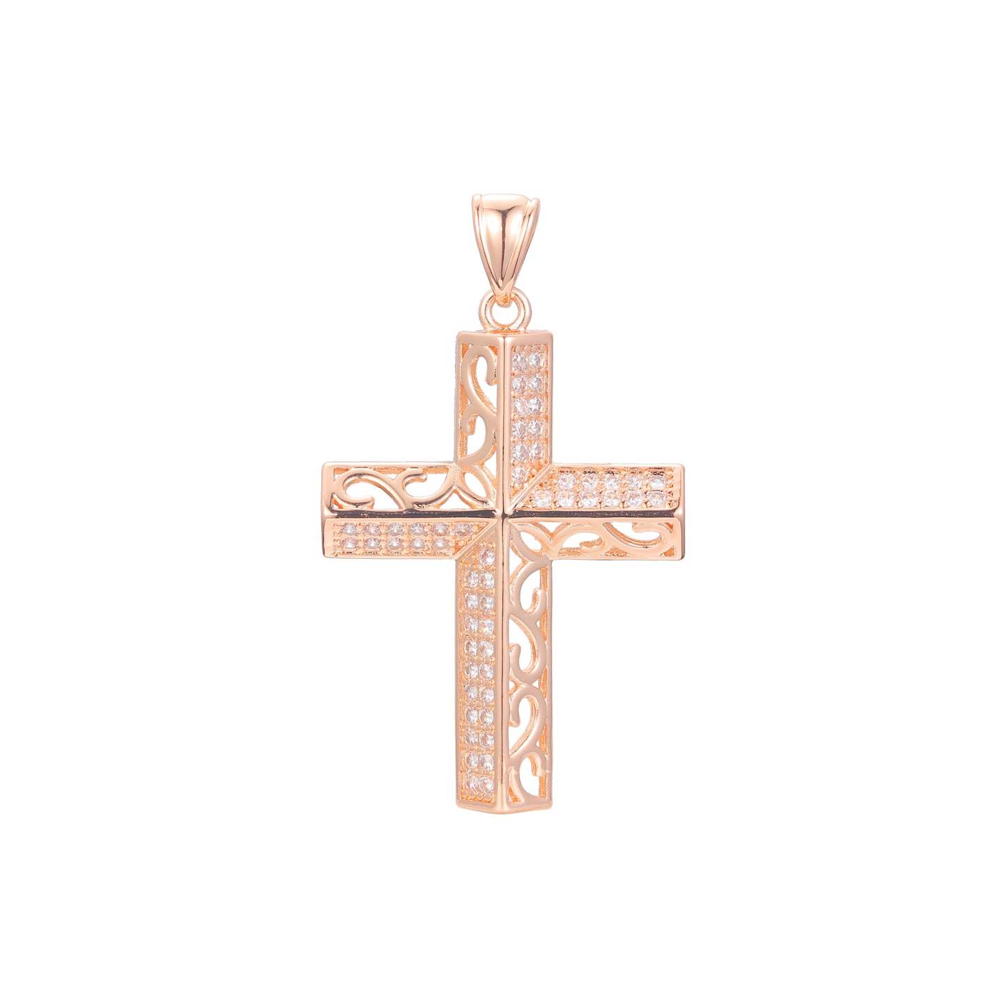 Filigree paved White CZ Rose Gold cross pendant