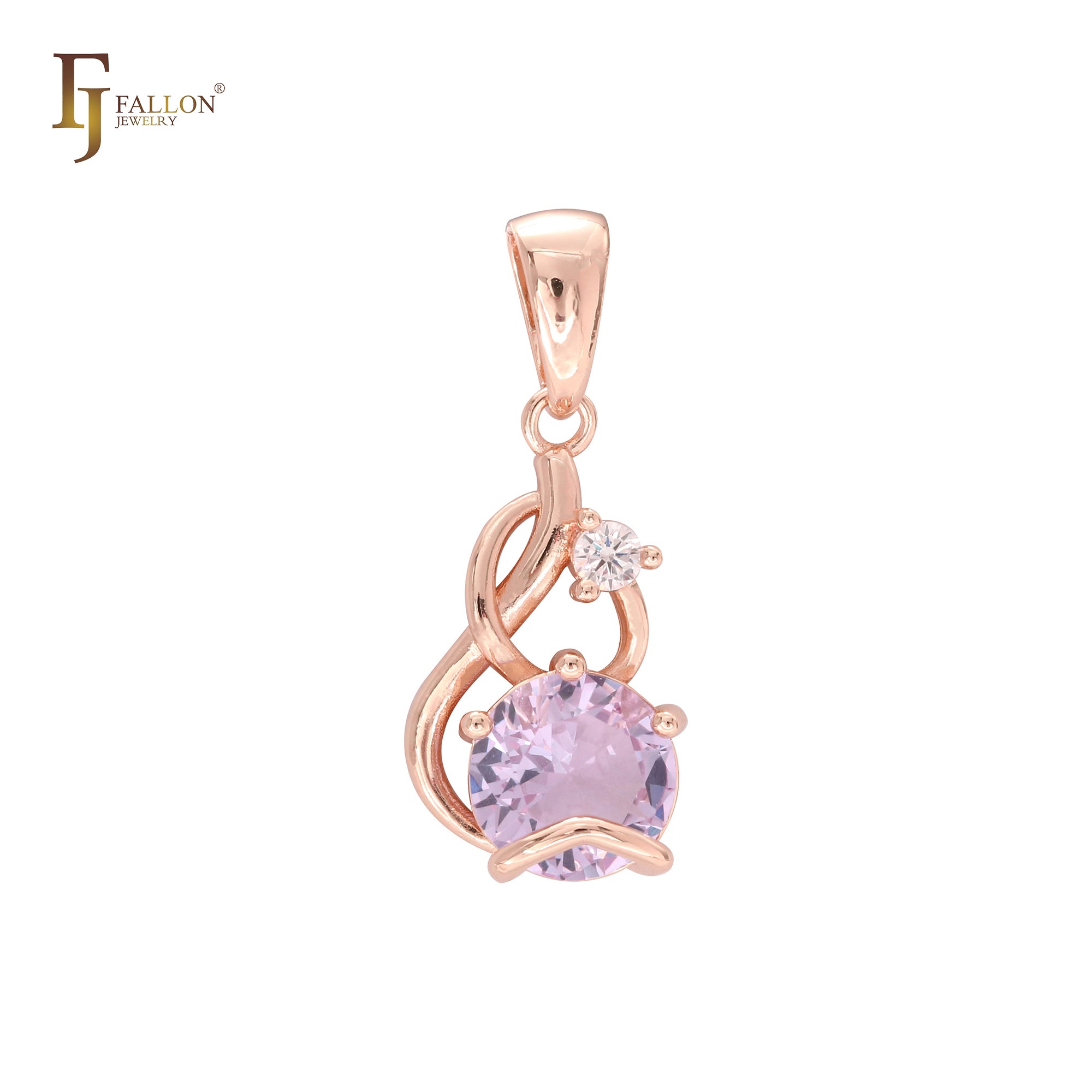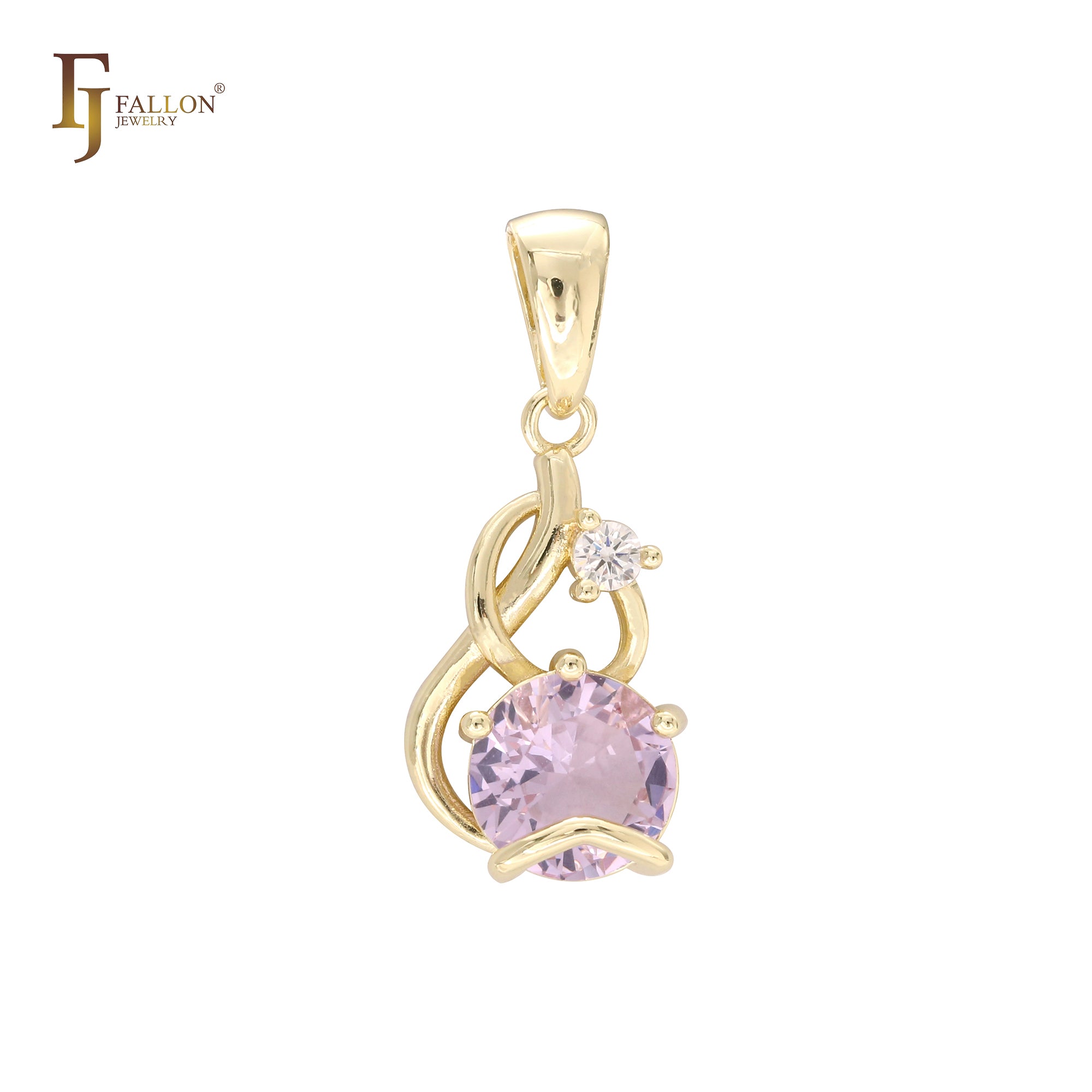 Rounded big CZ 14K Gold, Rose Gold, White Gold colorful Solitaire Pendant