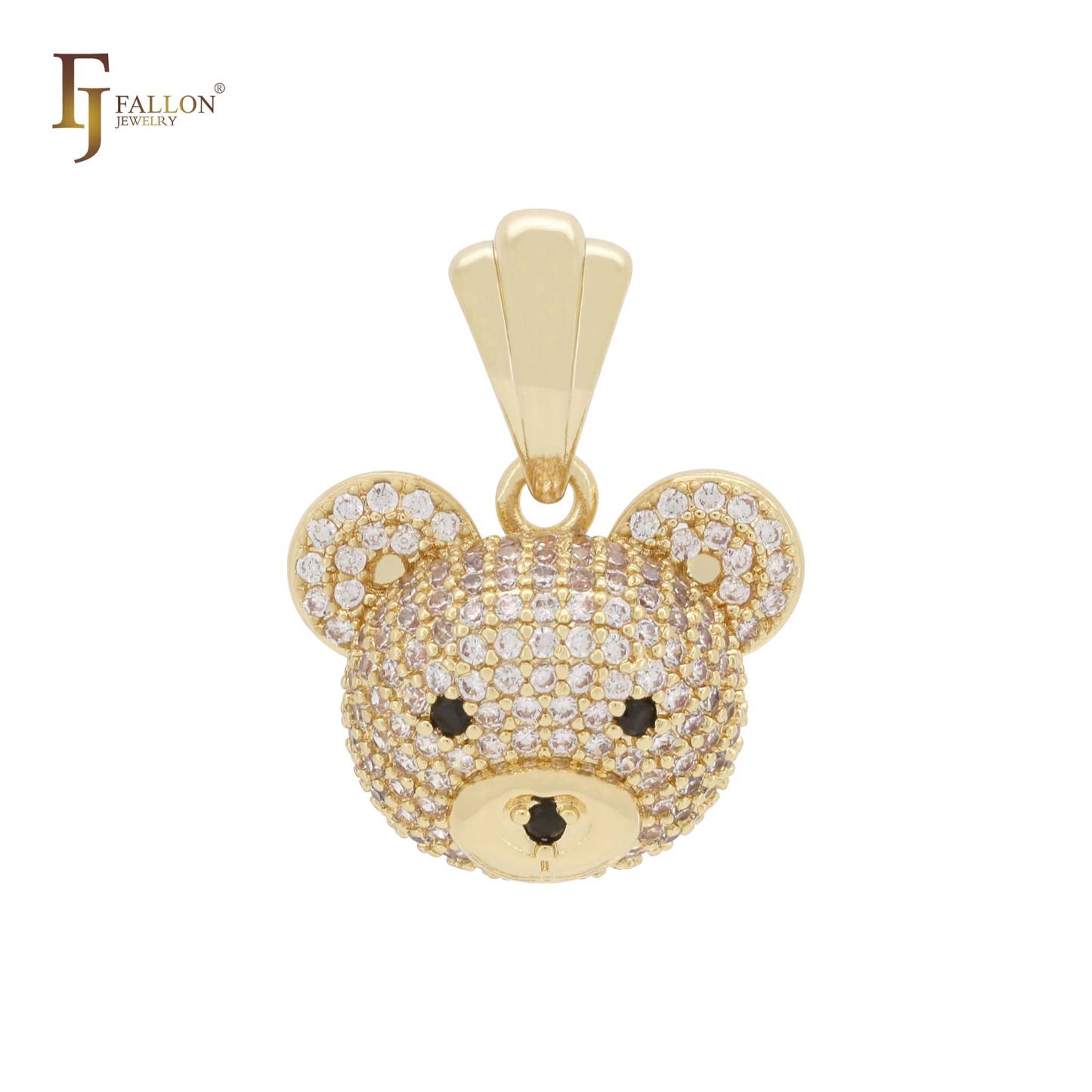Cluster white CZs Iced Out 14K Gold Bear Cute Animal Pendant