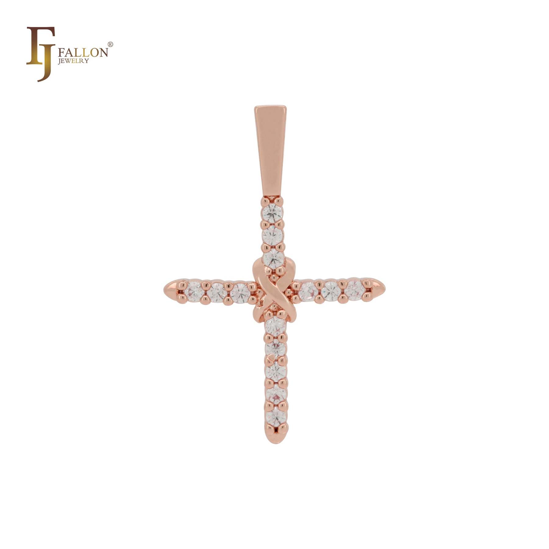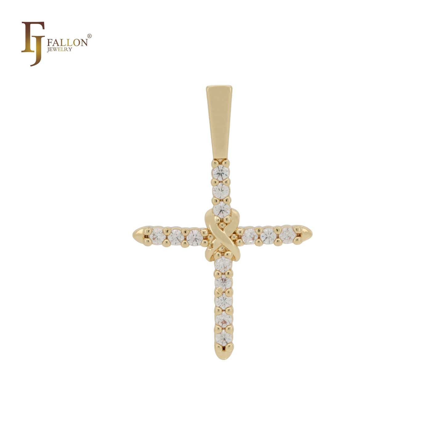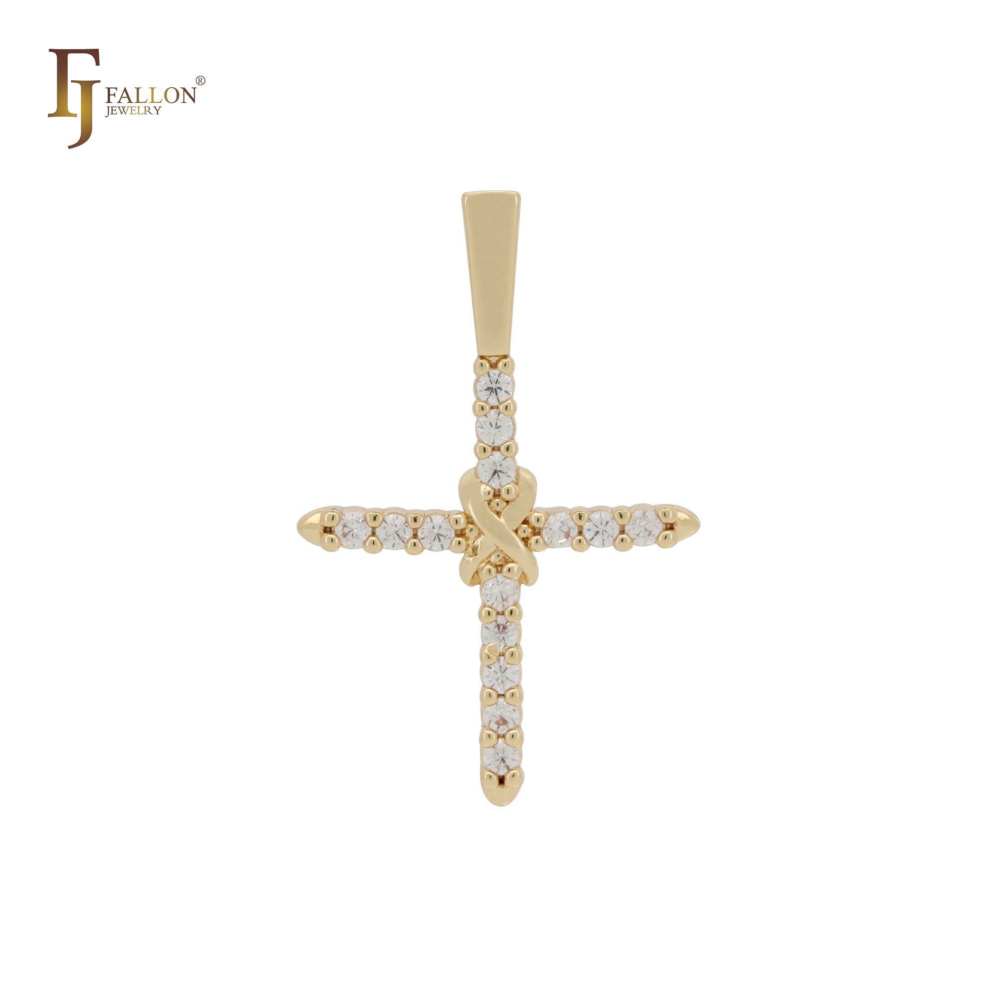 Cluster center knotted Latin christian 14K Gold cross pendant