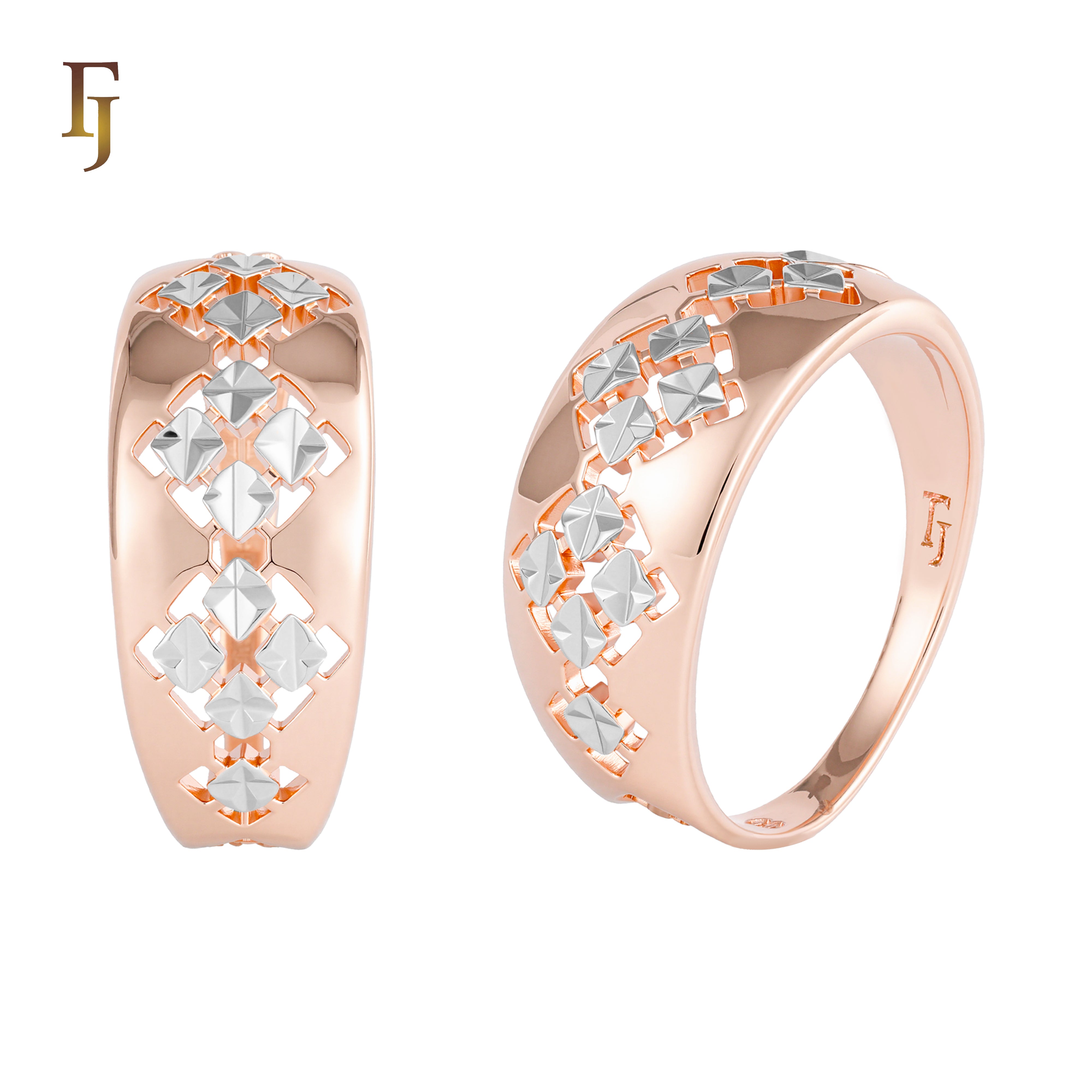Geometric Pattern Wide Rose Gold Plated Ring for Women, Brass Based Jewelry