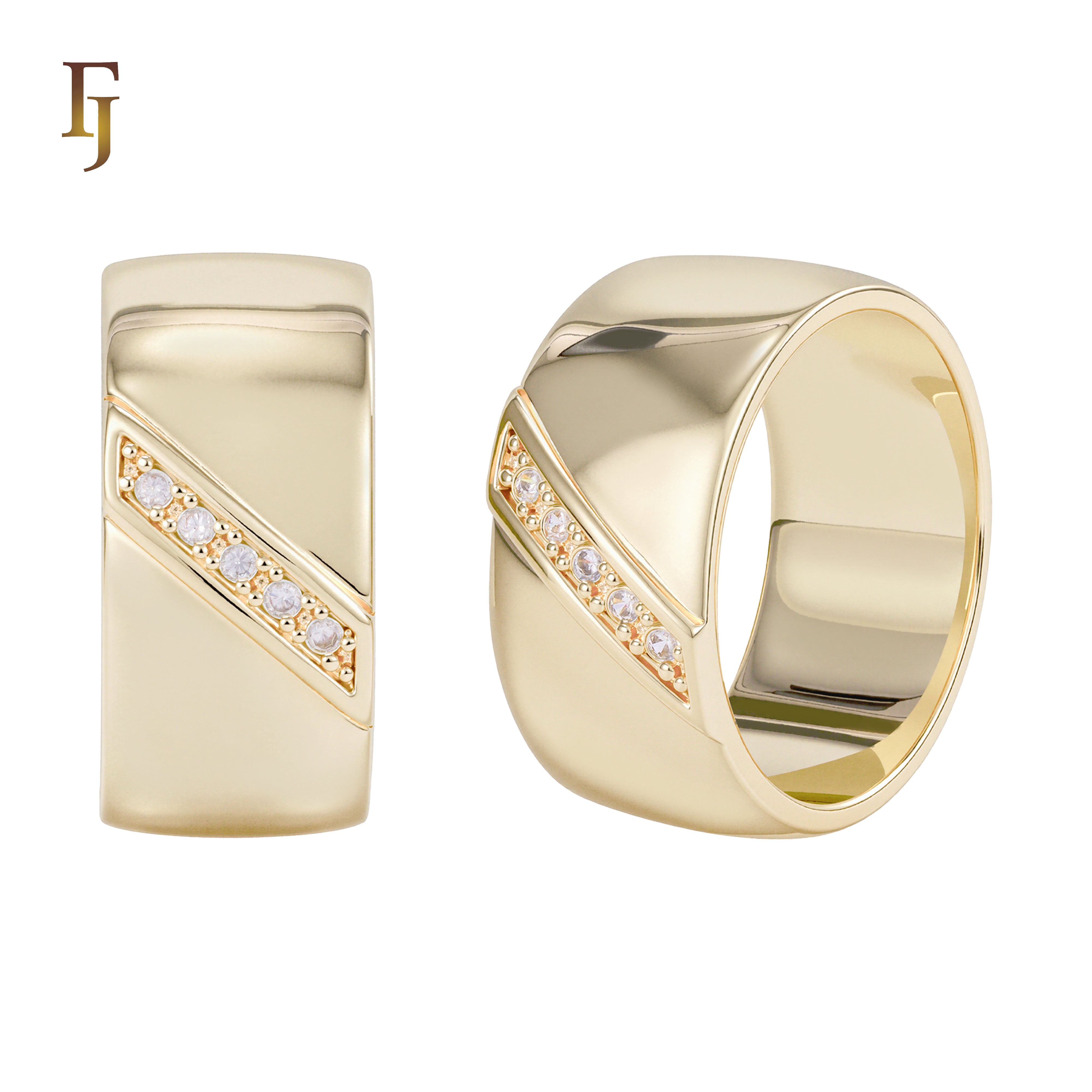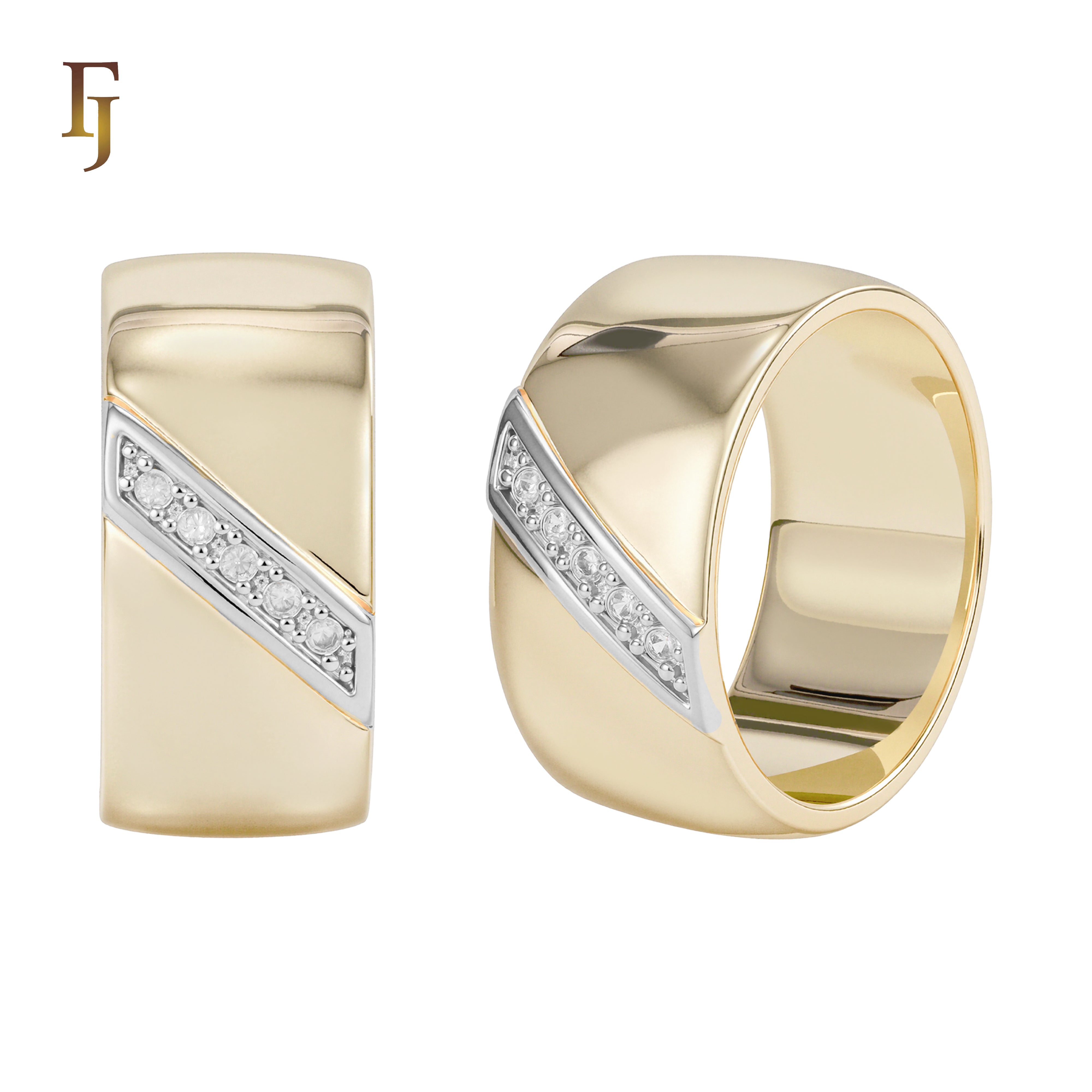 Bold Two-Tone Gold Plated Wide Band Ring with Diagonal CZ Inlay for Men or Unisex
