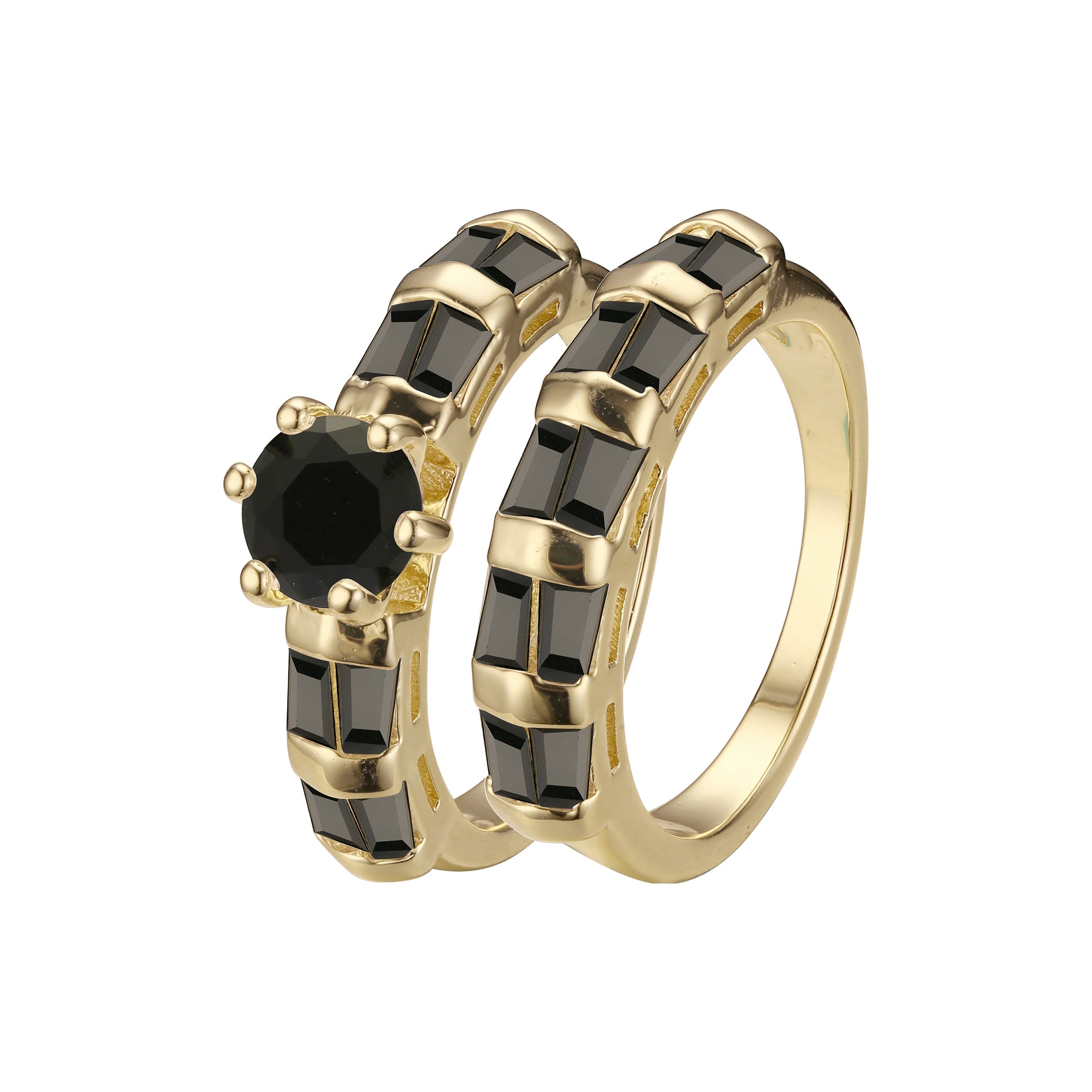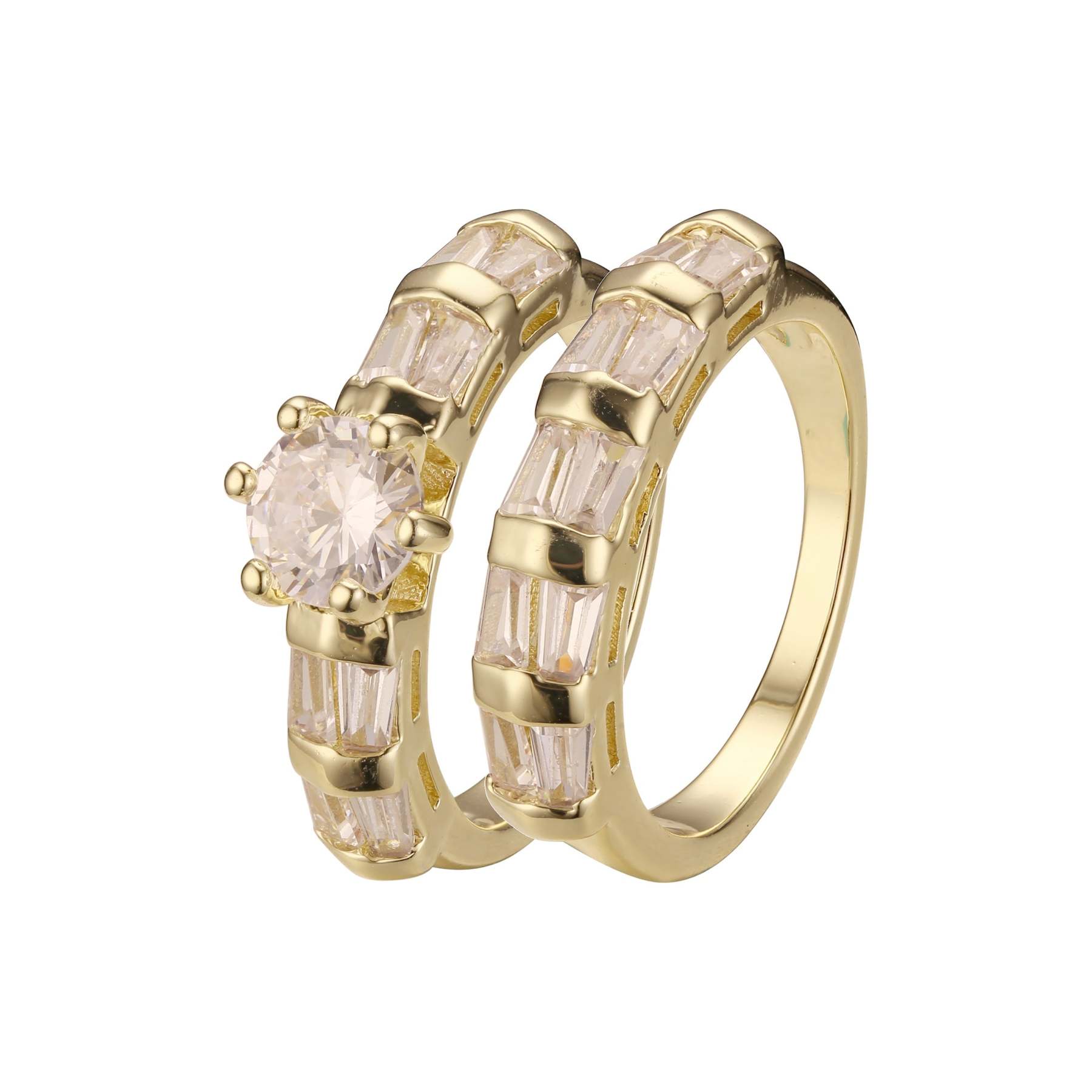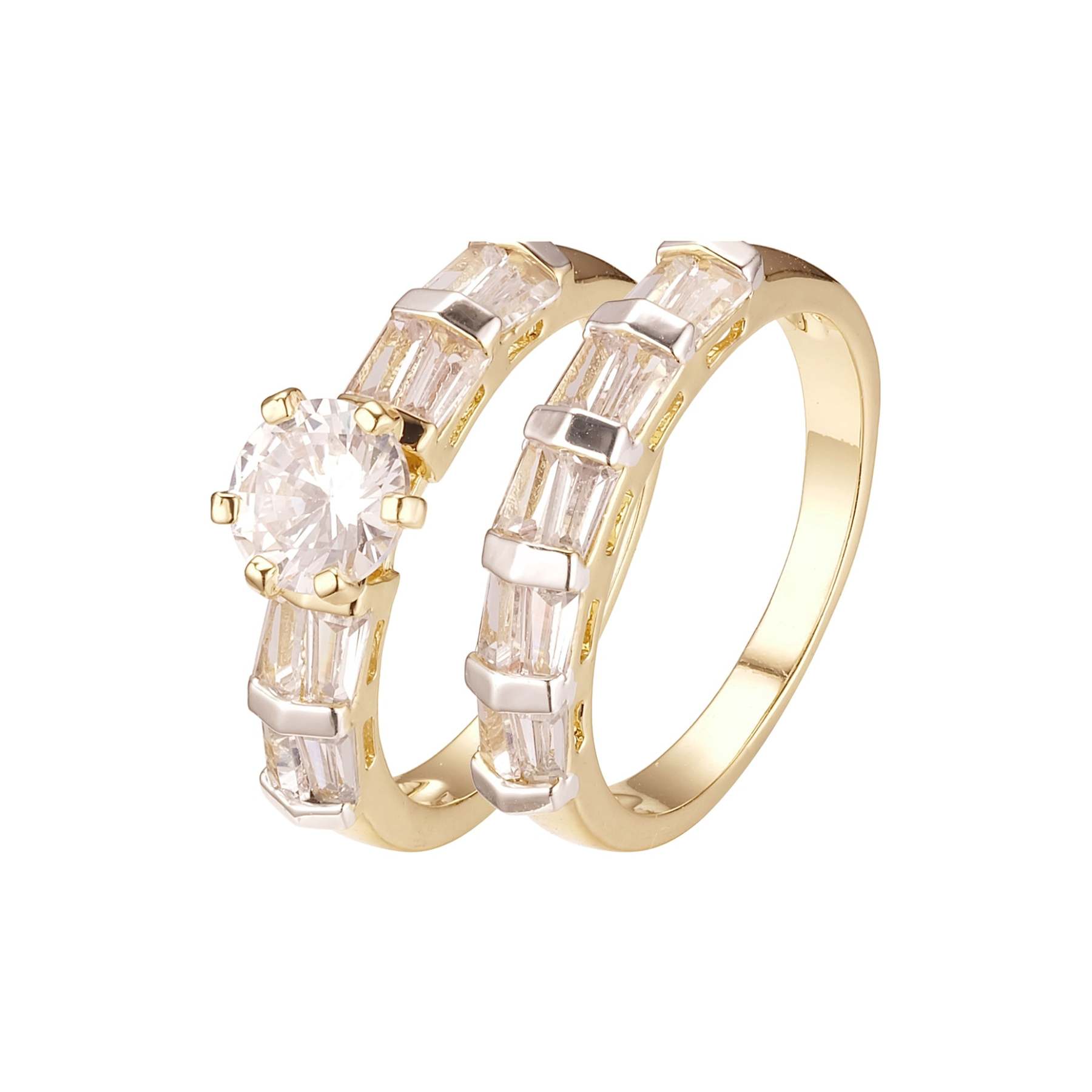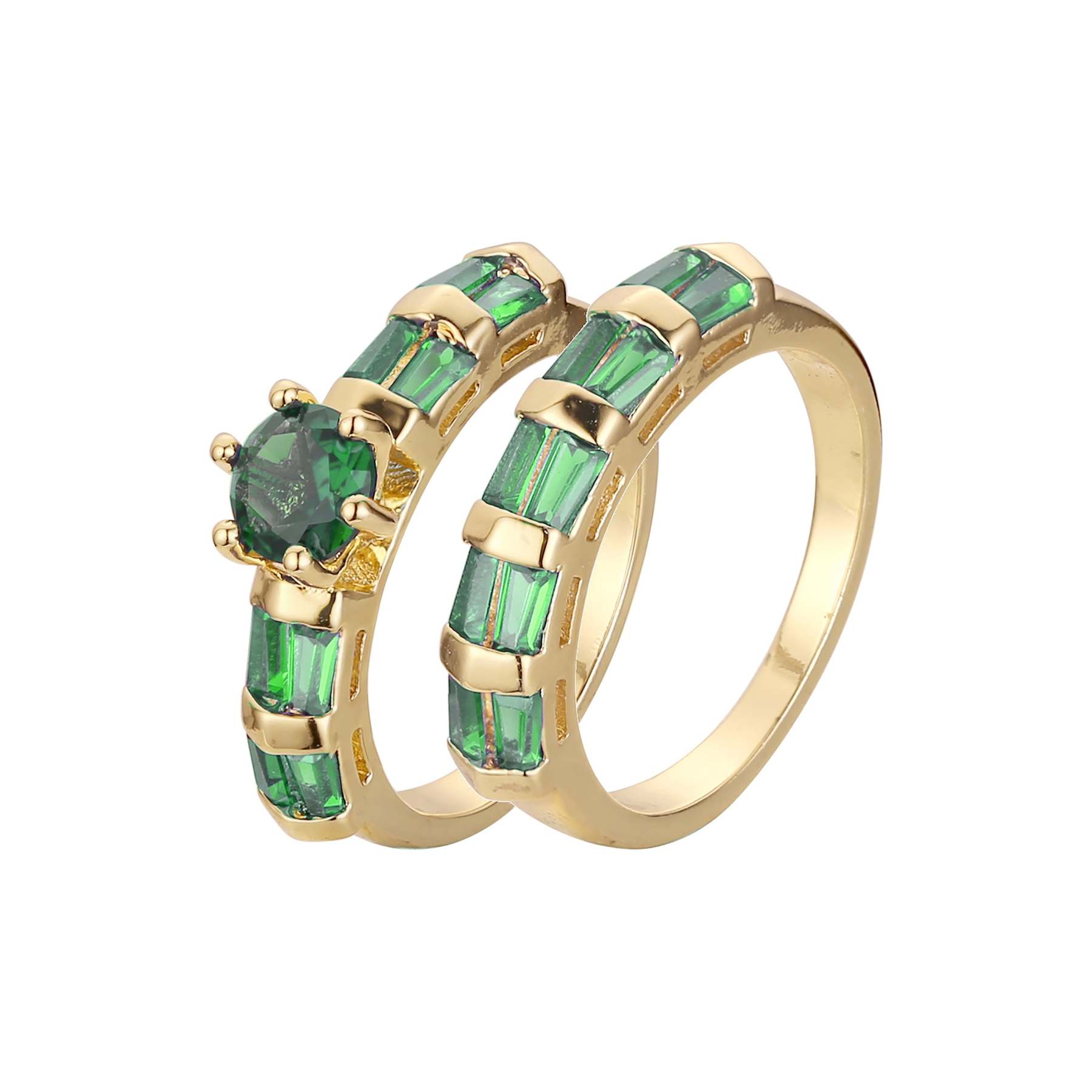 Stackable emerald cut colorful cluster double rings plated in 14K Gold colors