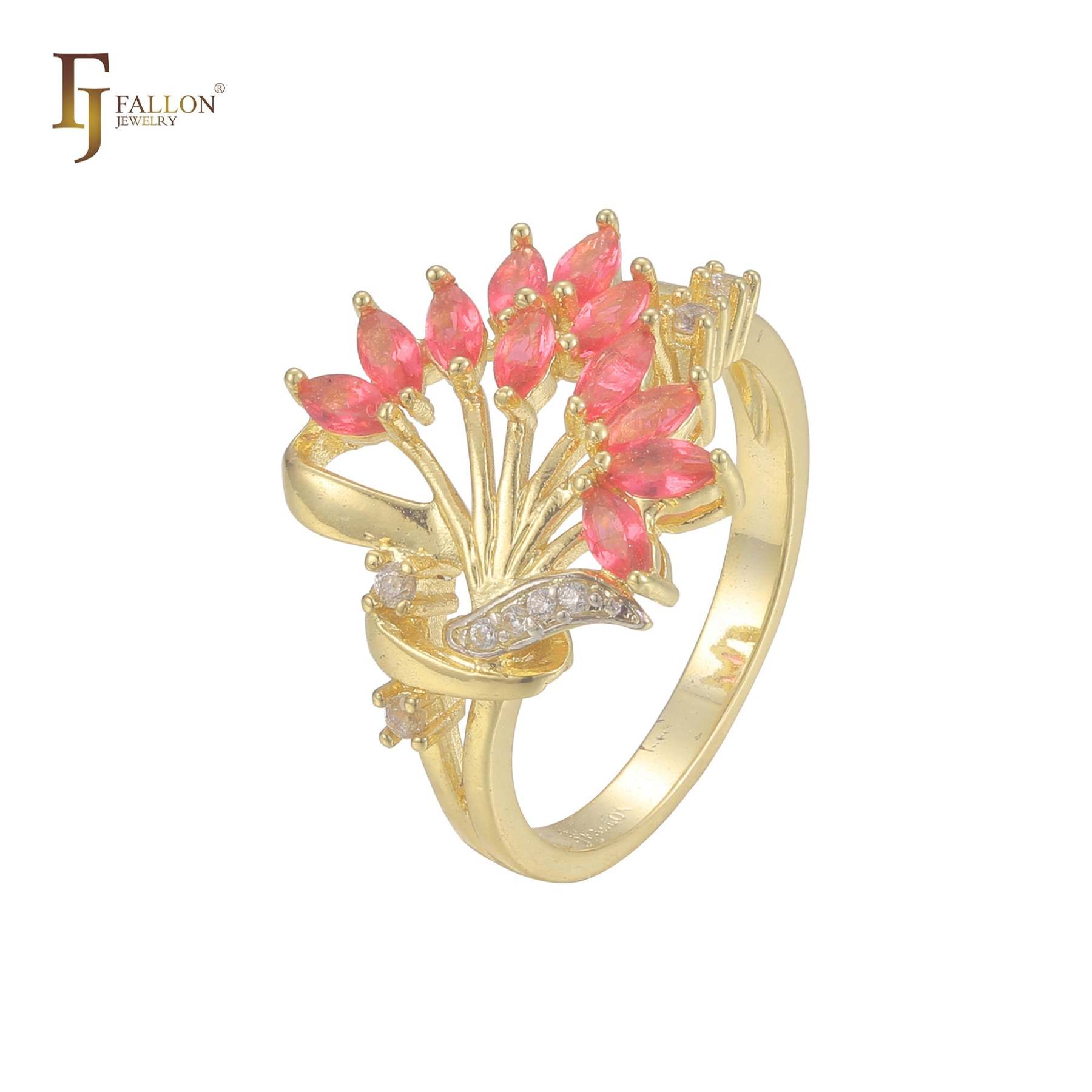 Luxurious blooming flower red CZ Fashion 14K Gold, 18K Gold, Rose Gold Rings