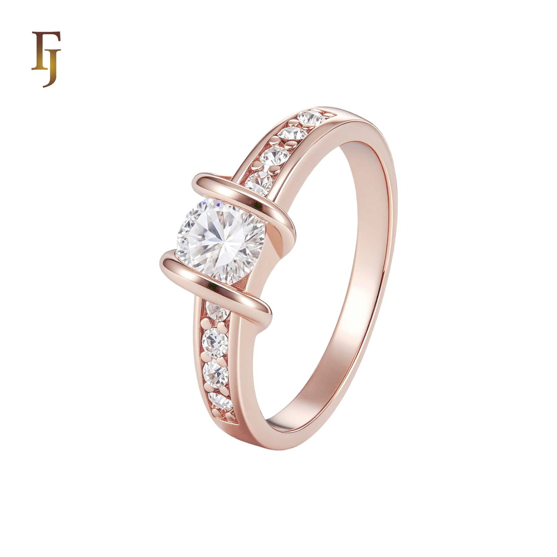 Elegant double band clawed solitaire white CZ Rose Gold Engagement Rings