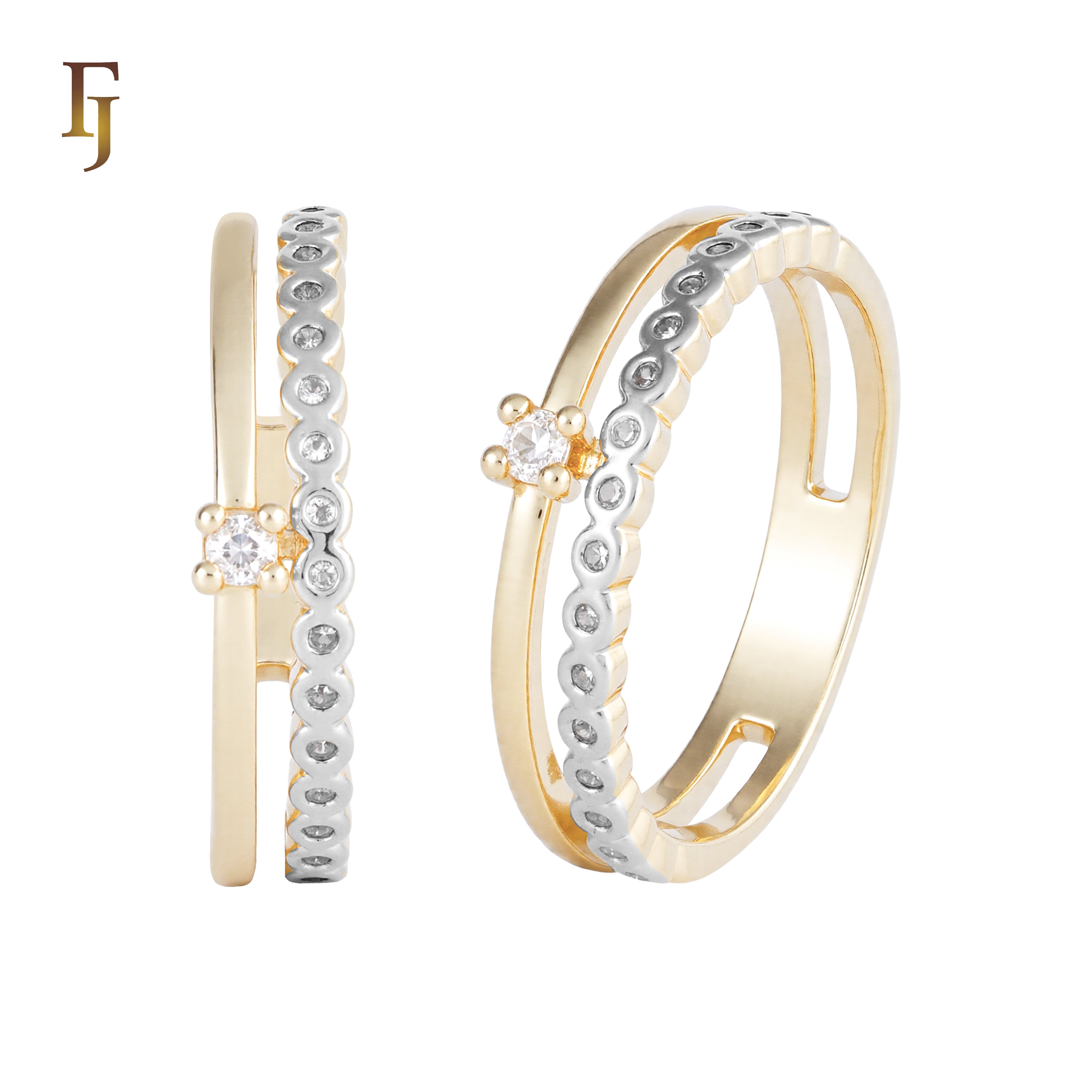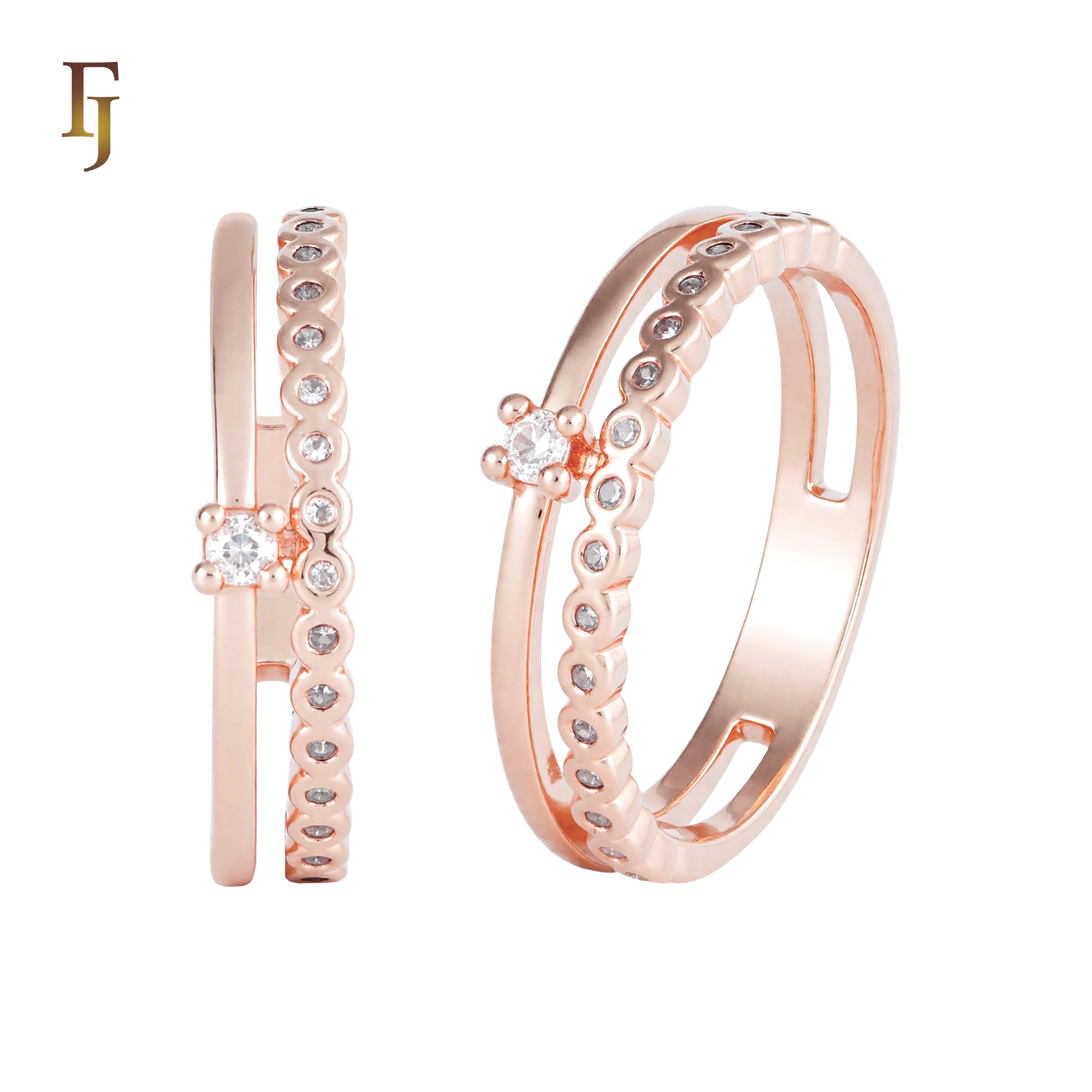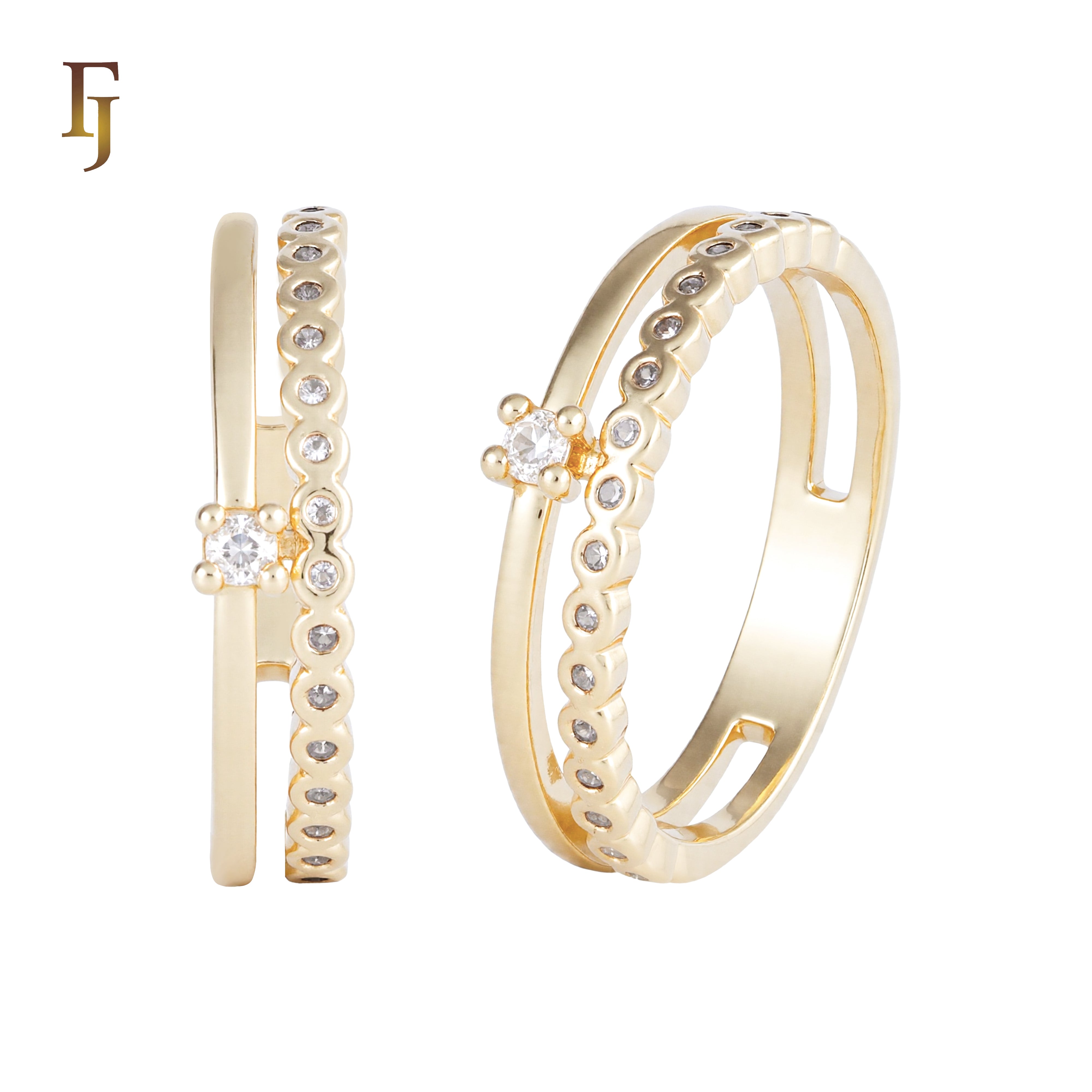 This dual-band ring features a vintage-inspired design with a delicate beaded edge and sparkling CZ accents. A central cubic zirconia adds charm and brilliance. Perfect for stacking, gifting, or adding a romantic touch to any outfit.