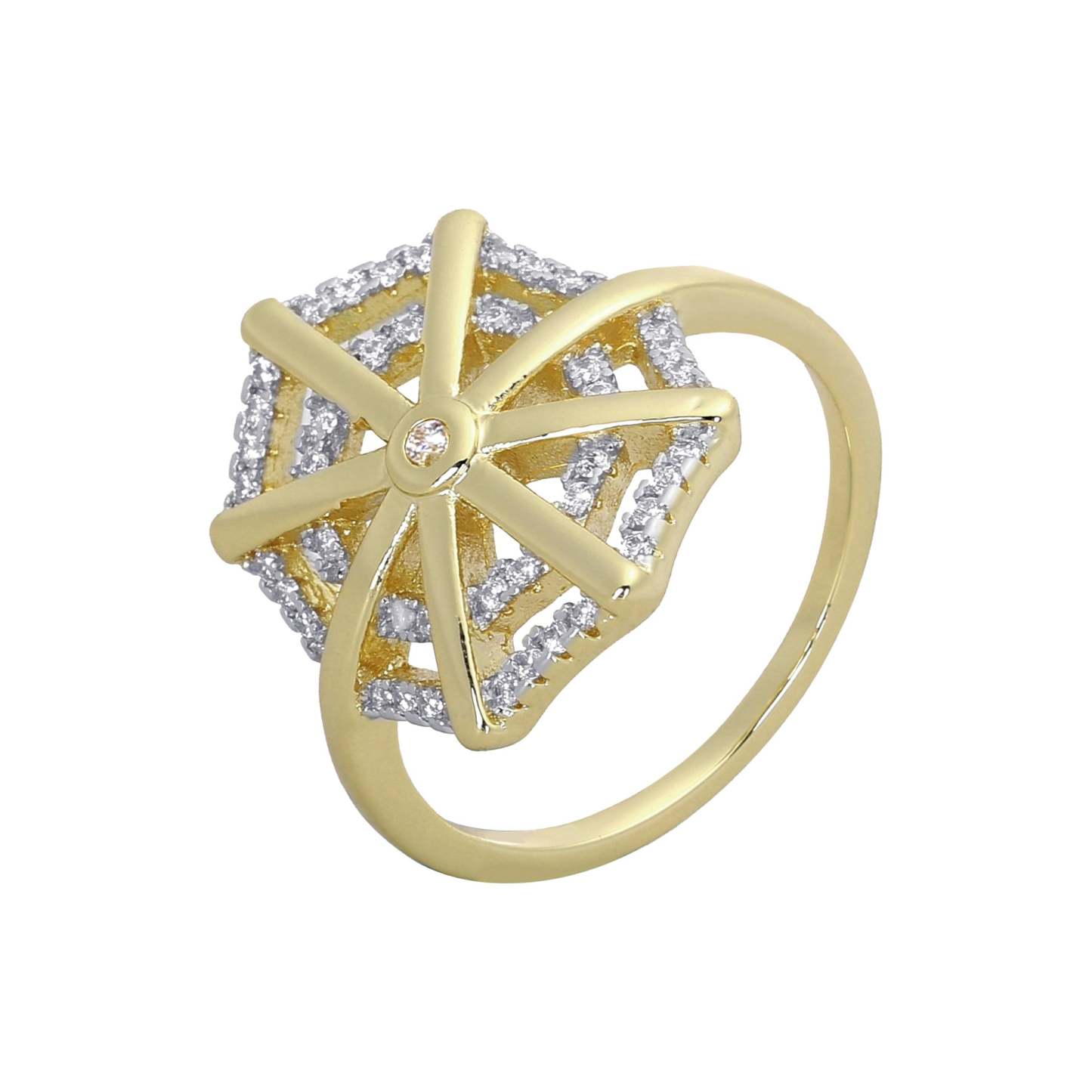 Spider web paved halo 14K Gold, Rose Gold two tone rings