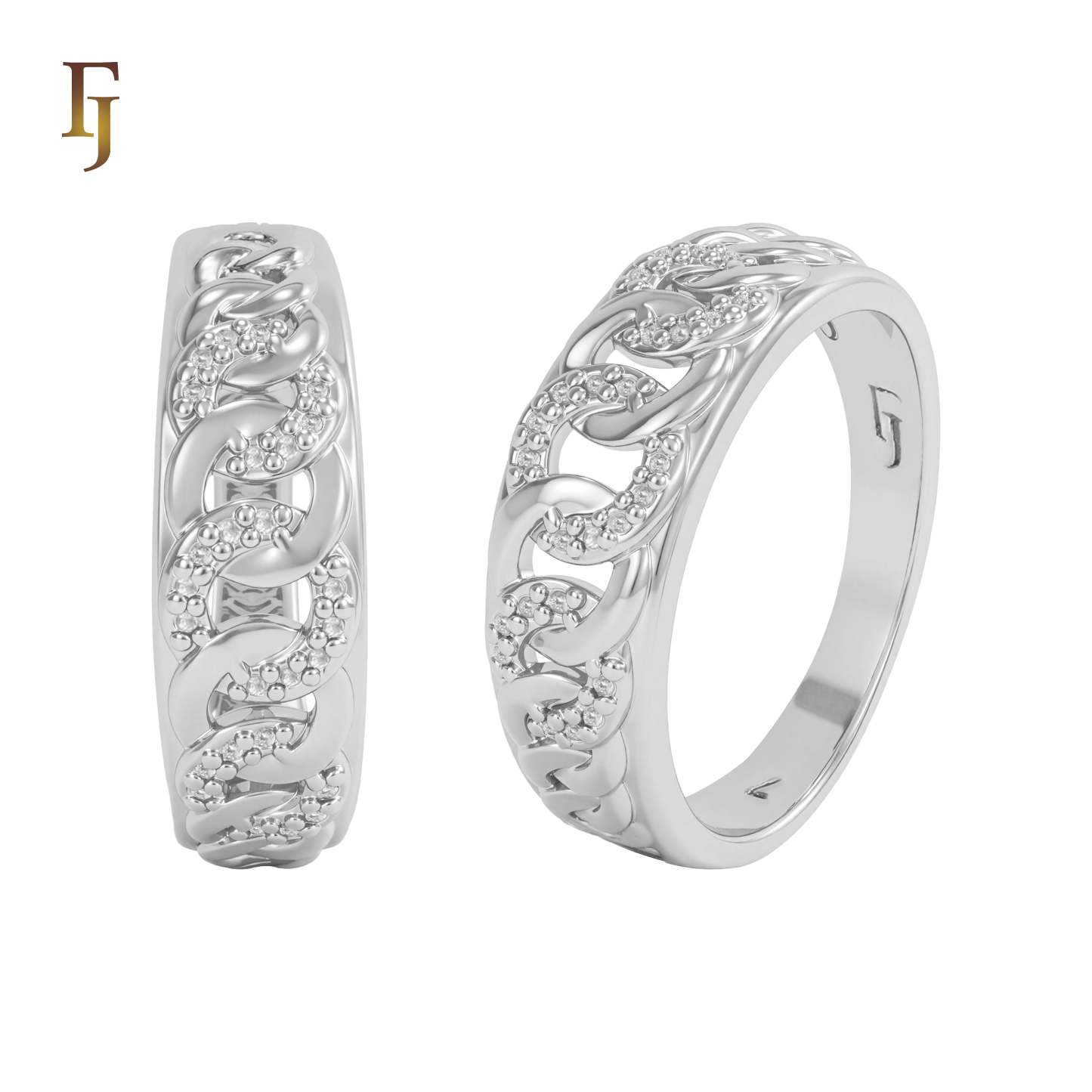 This bold silver ring showcases a series of interlocking chain links with alternating polished and textured finishes. The unique combination adds depth and shine, making it a standout piece perfect for both daily wear and modern statement looks.