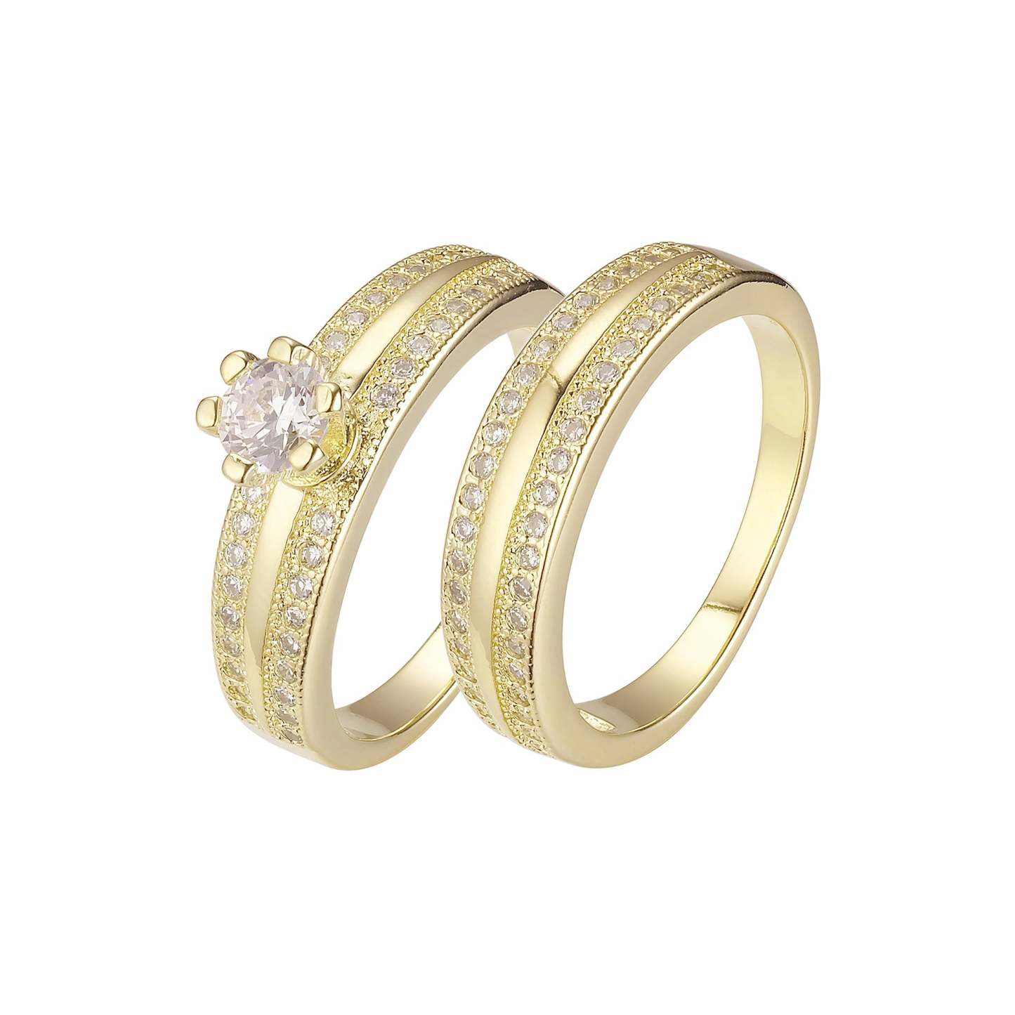 Double band paved stackable rings plated in 14K Gold
