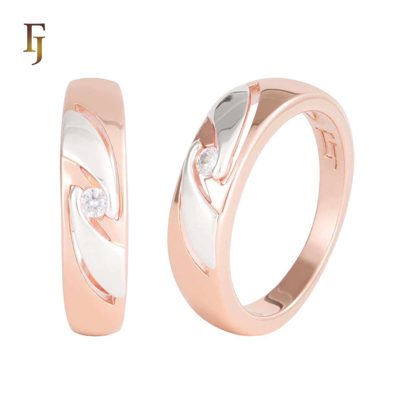 Featuring sleek white enamel inlays and a single sparkling CZ, this rose gold band ring combines clean lines with subtle elegance for a modern, everyday statement look.