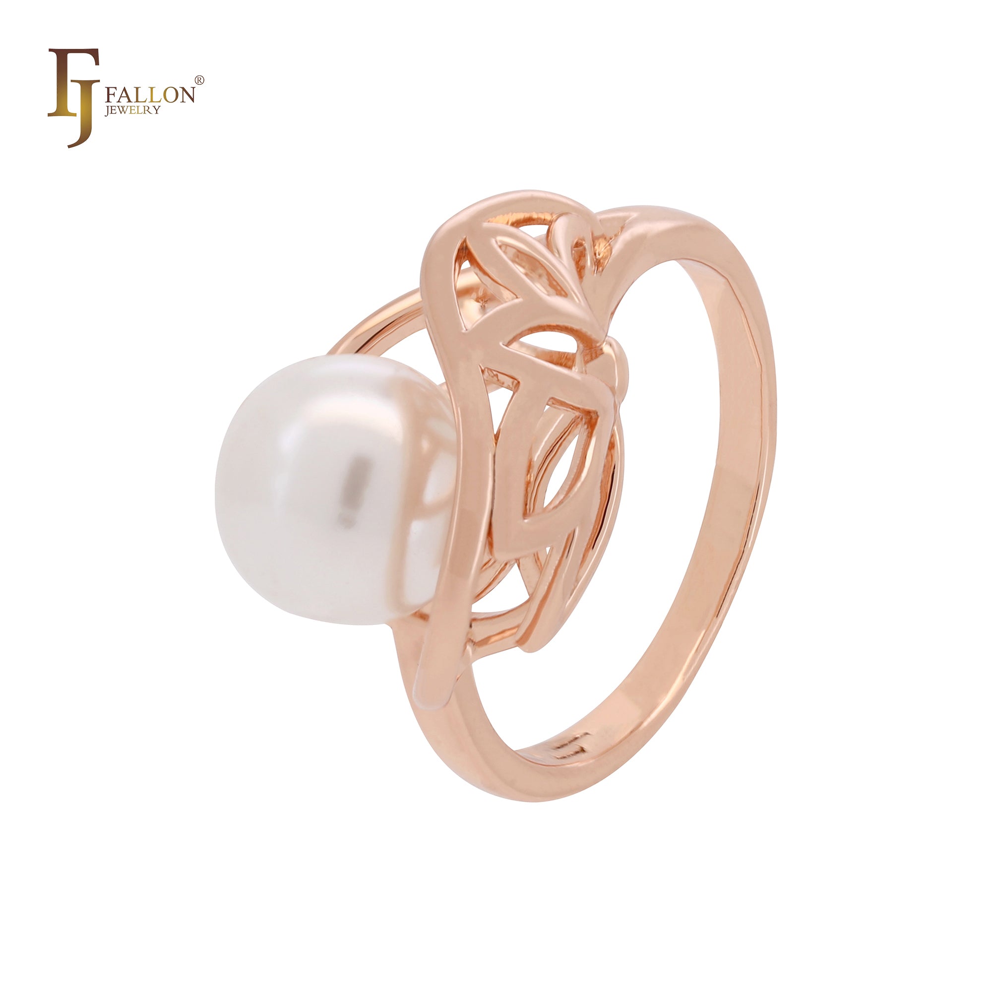 Enclosed mesh pearl Rose Gold Fashion Rings