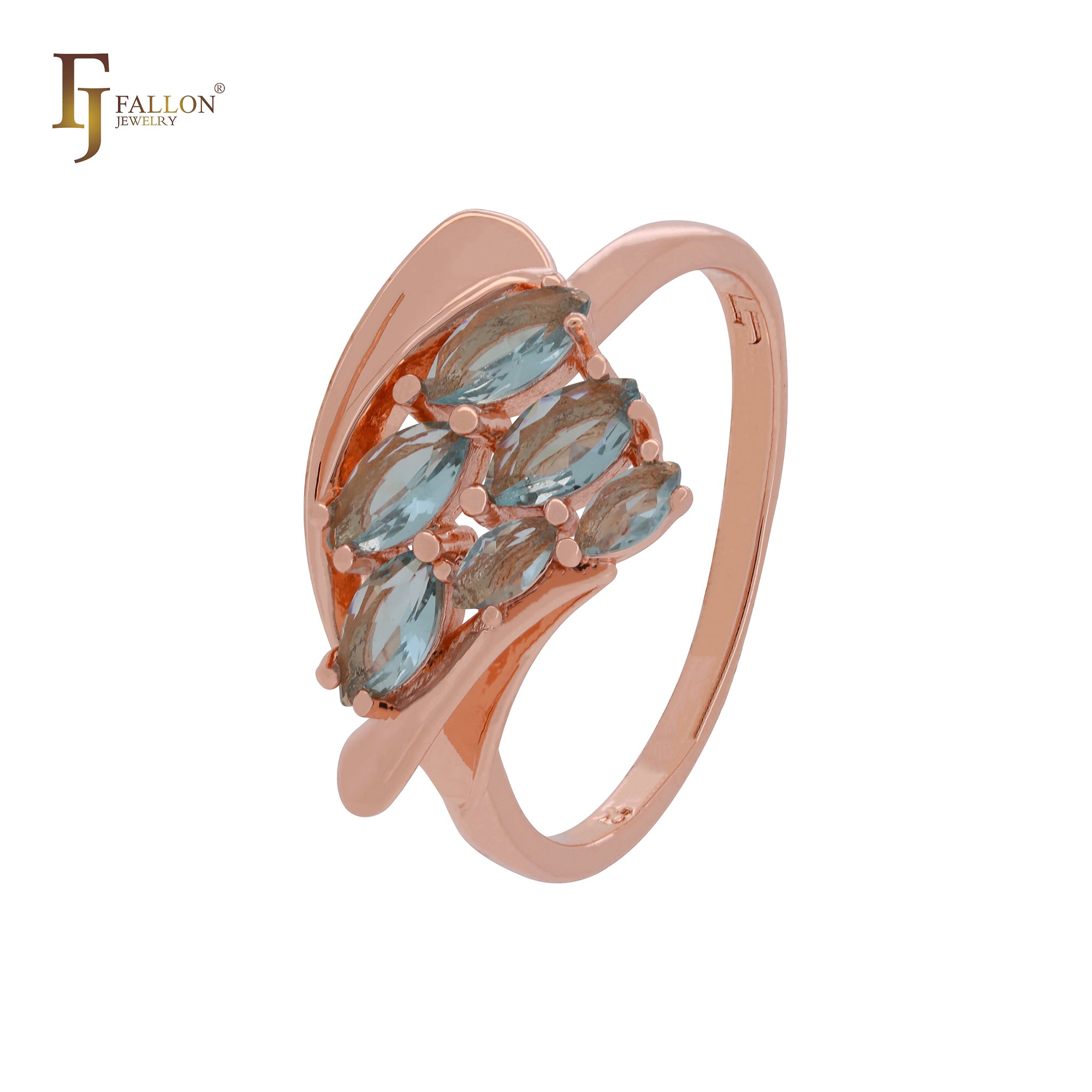 Thousand luxurious lake blue marquise cluster CZs Rose Gold Fashion Rings