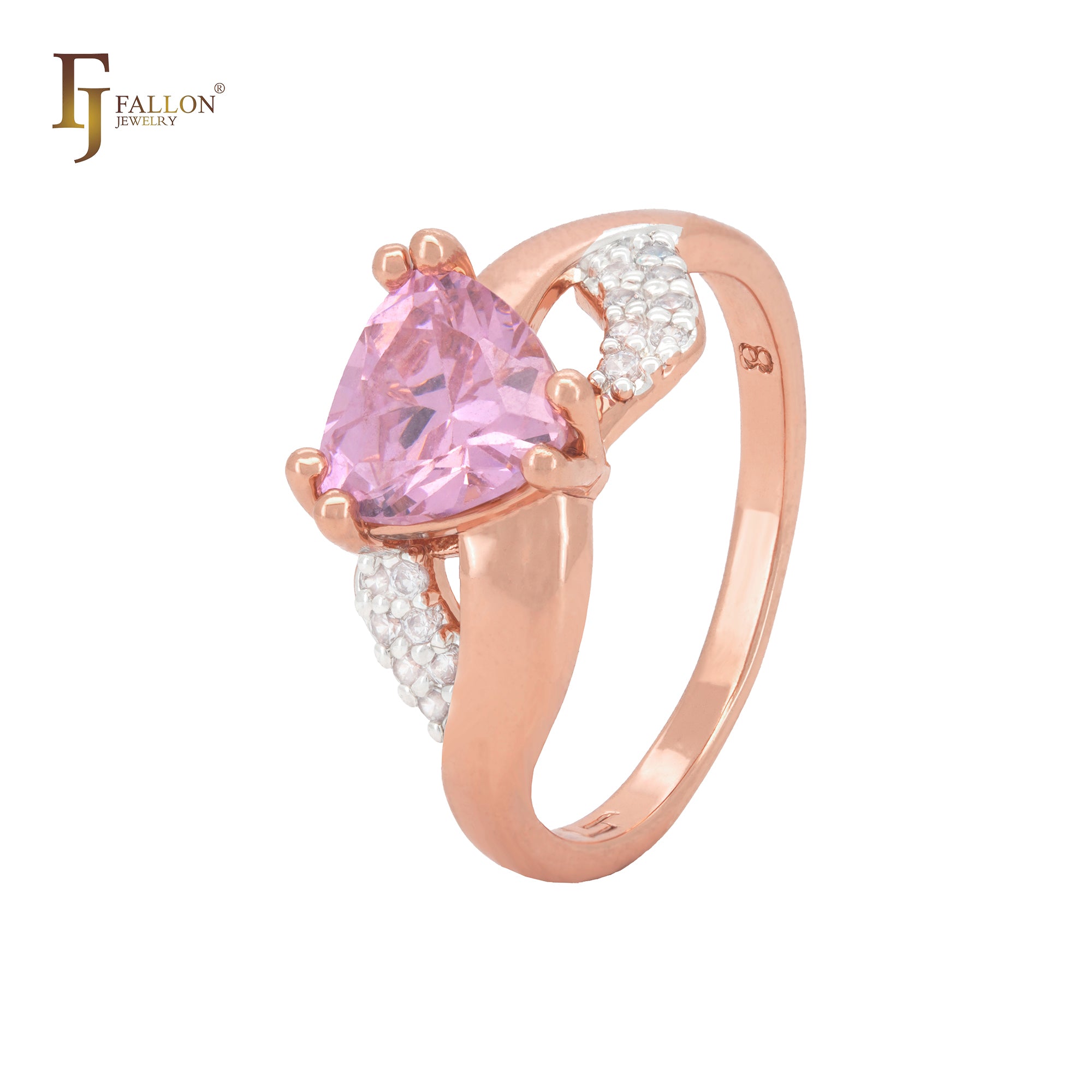 Triangular pinky solitaire CZ with white CZs Rose Gold Fashion Rings