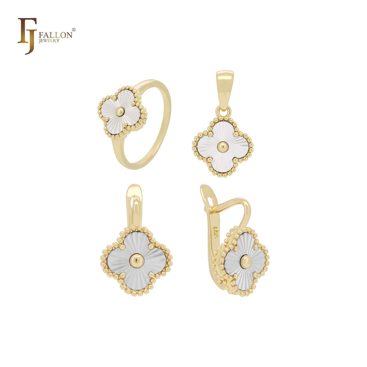 Lucky clover layered 14K Gold Jewelry Set with Pendant and Rings