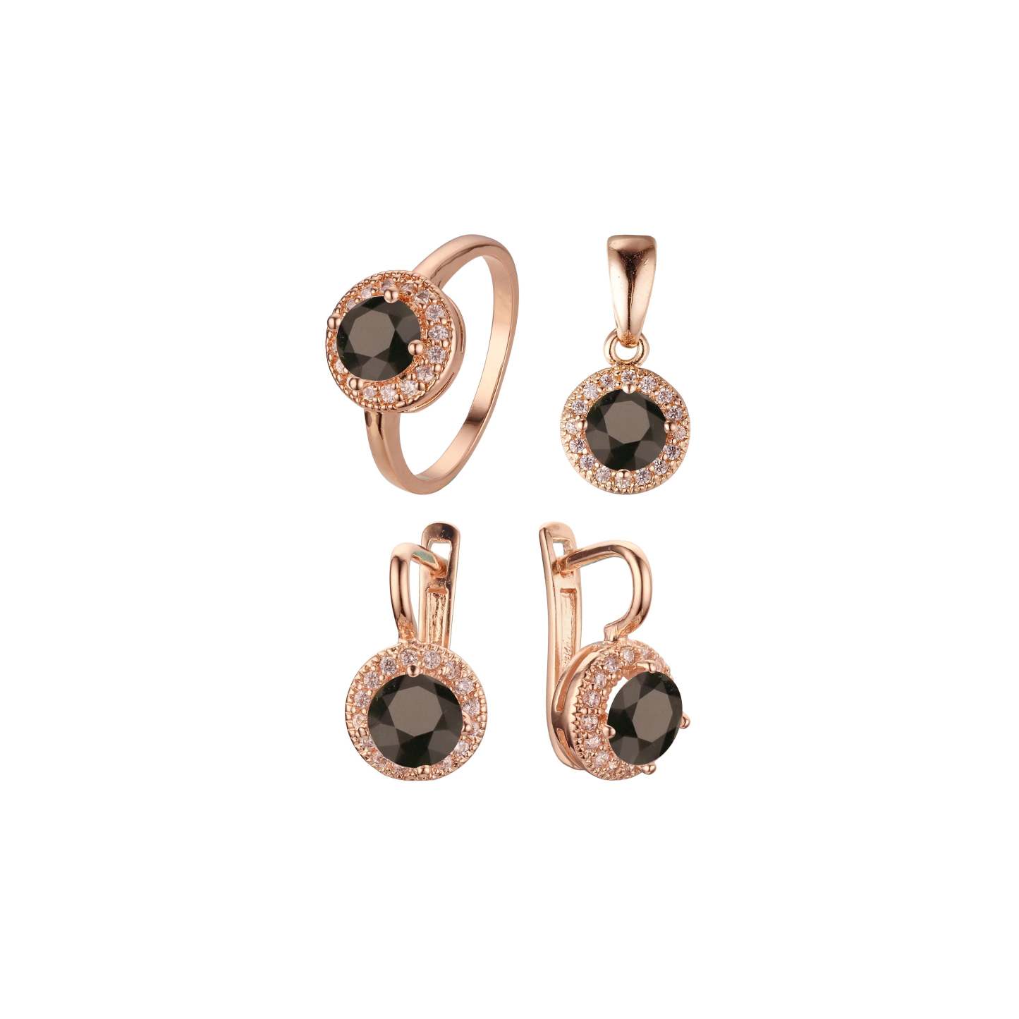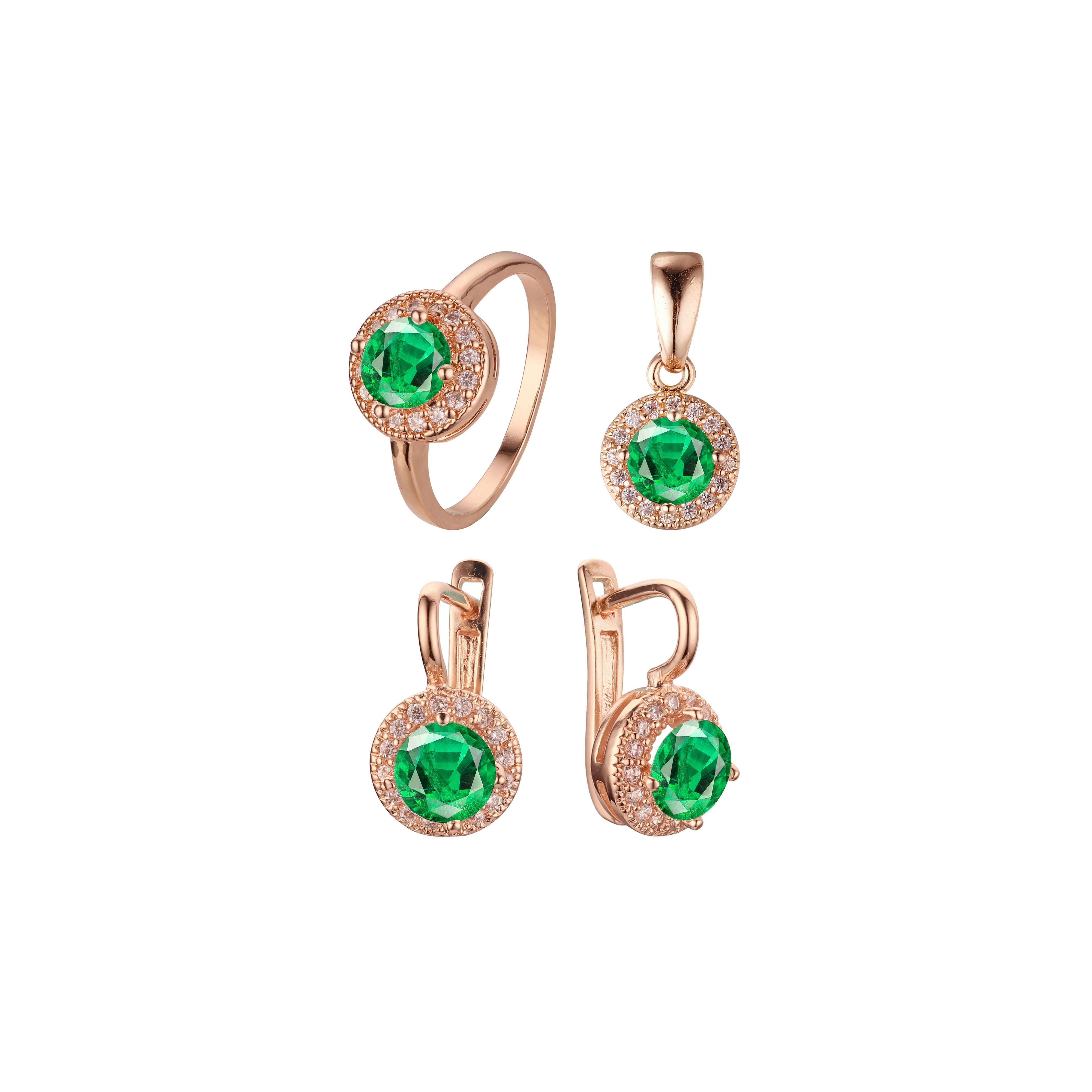 .Rosa's Halo - Big round colorful halo cz Rose Gold plated rings and pendant jewelry set