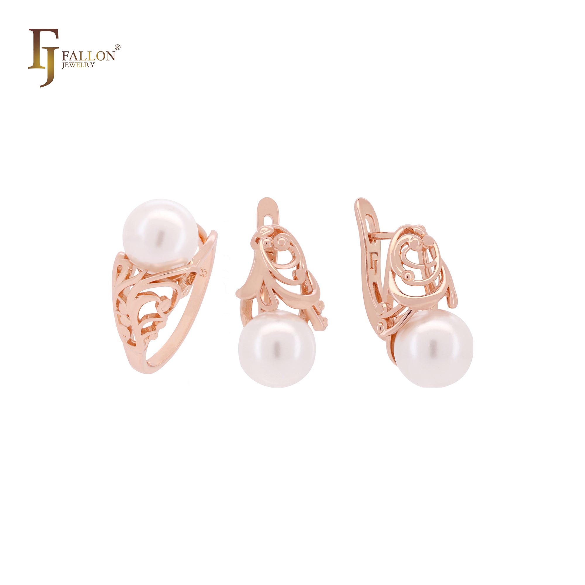 Fruitful filigree Pearl Rose Gold Jewelry Set with Rings