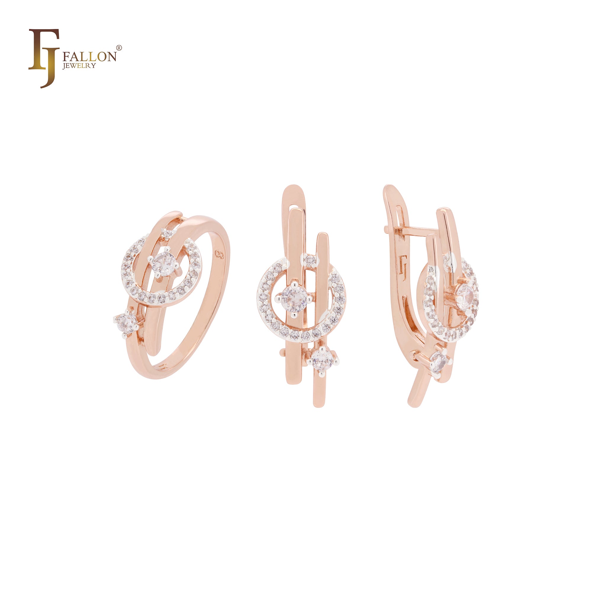 Circle of white CZs interlocking stars Rose Gold two tone Jewelry Set with Rings