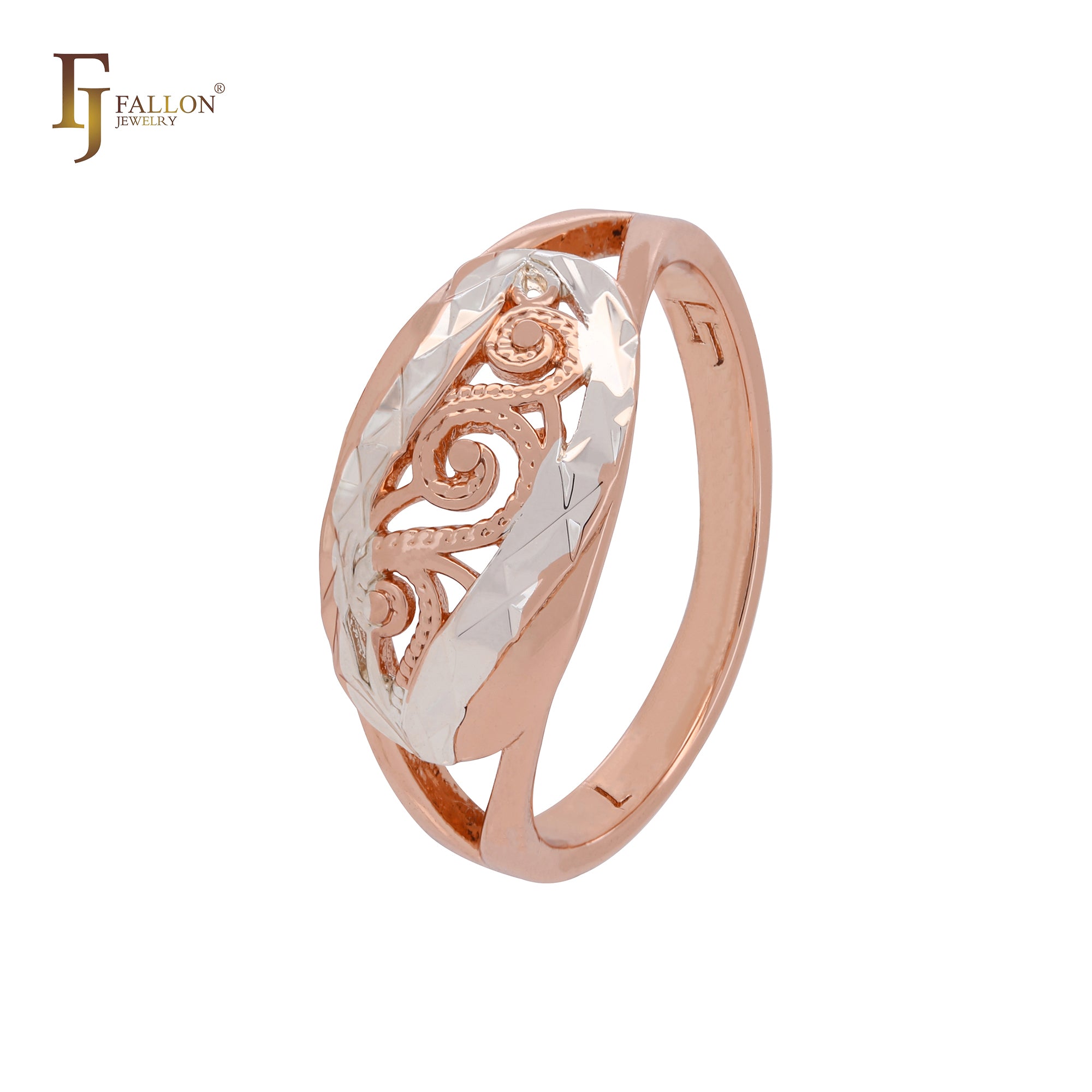 Oval cloudy waves of filigree Rose Gold two tone Fashion Rings