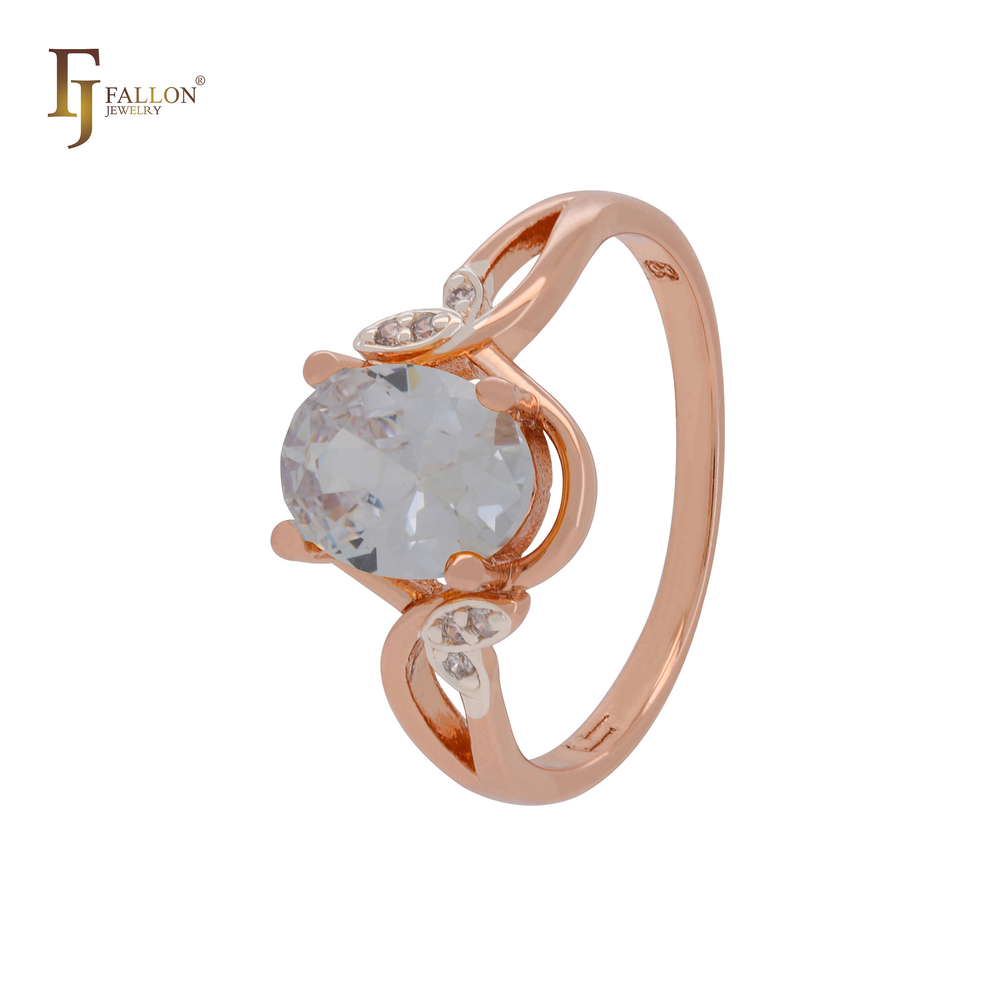 Oval wire filigree textured white CZs Rose Gold two tone Fashion Rings