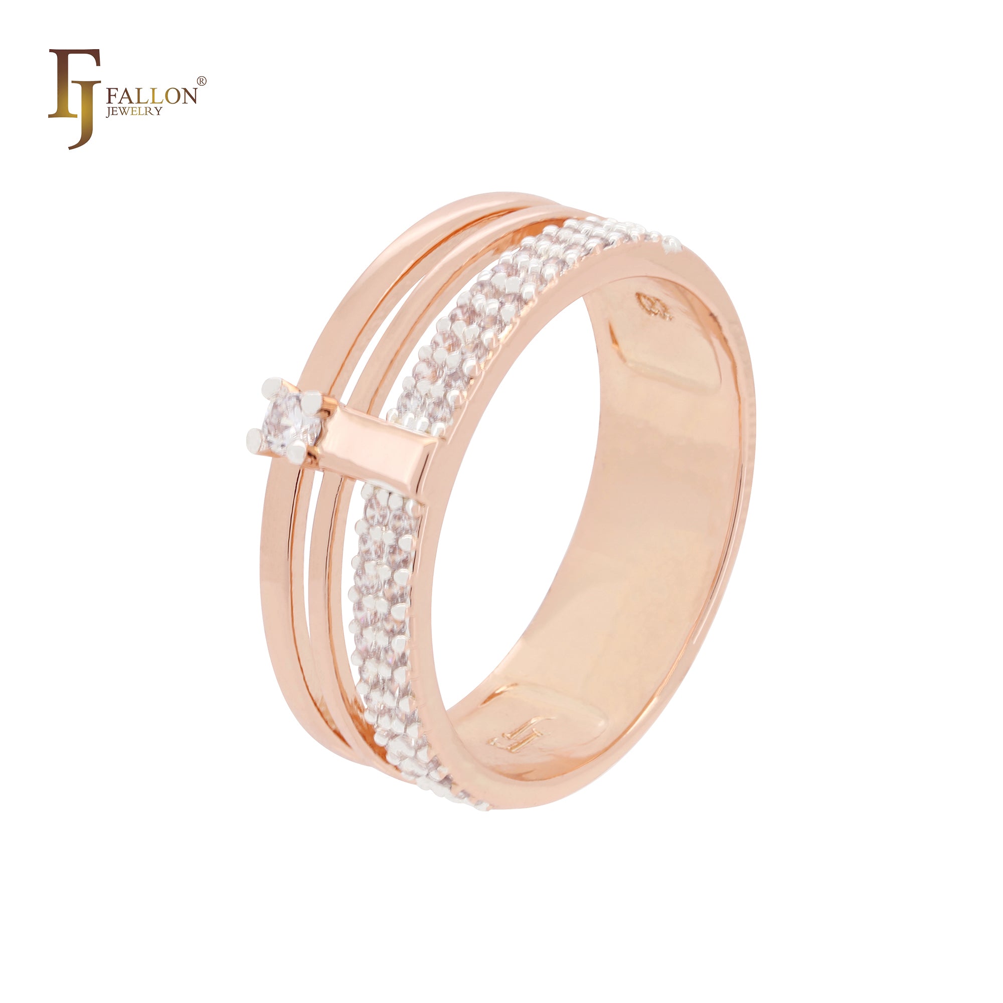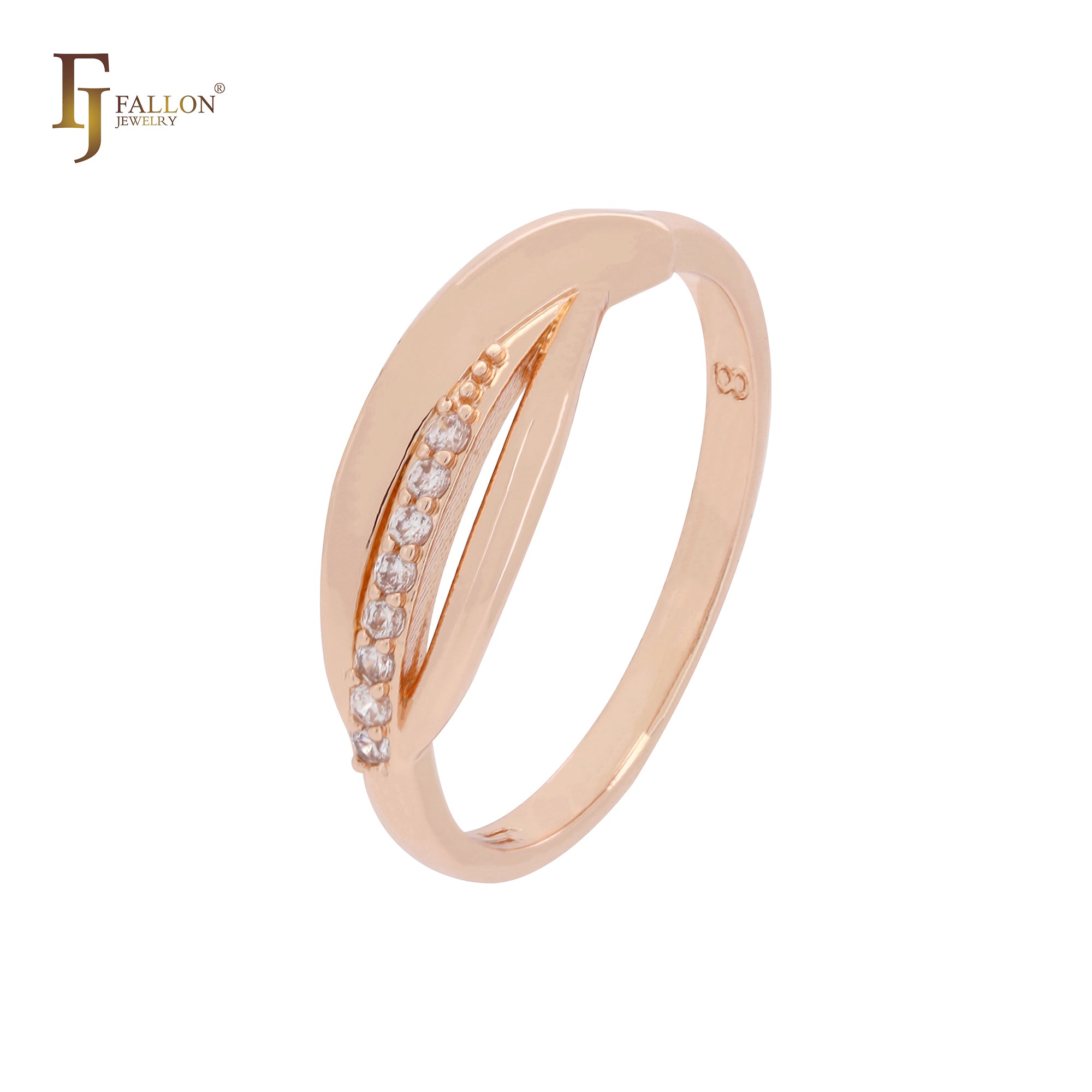 Ribbon of great paved white CZs Rose Gold two tone Fashion Rings