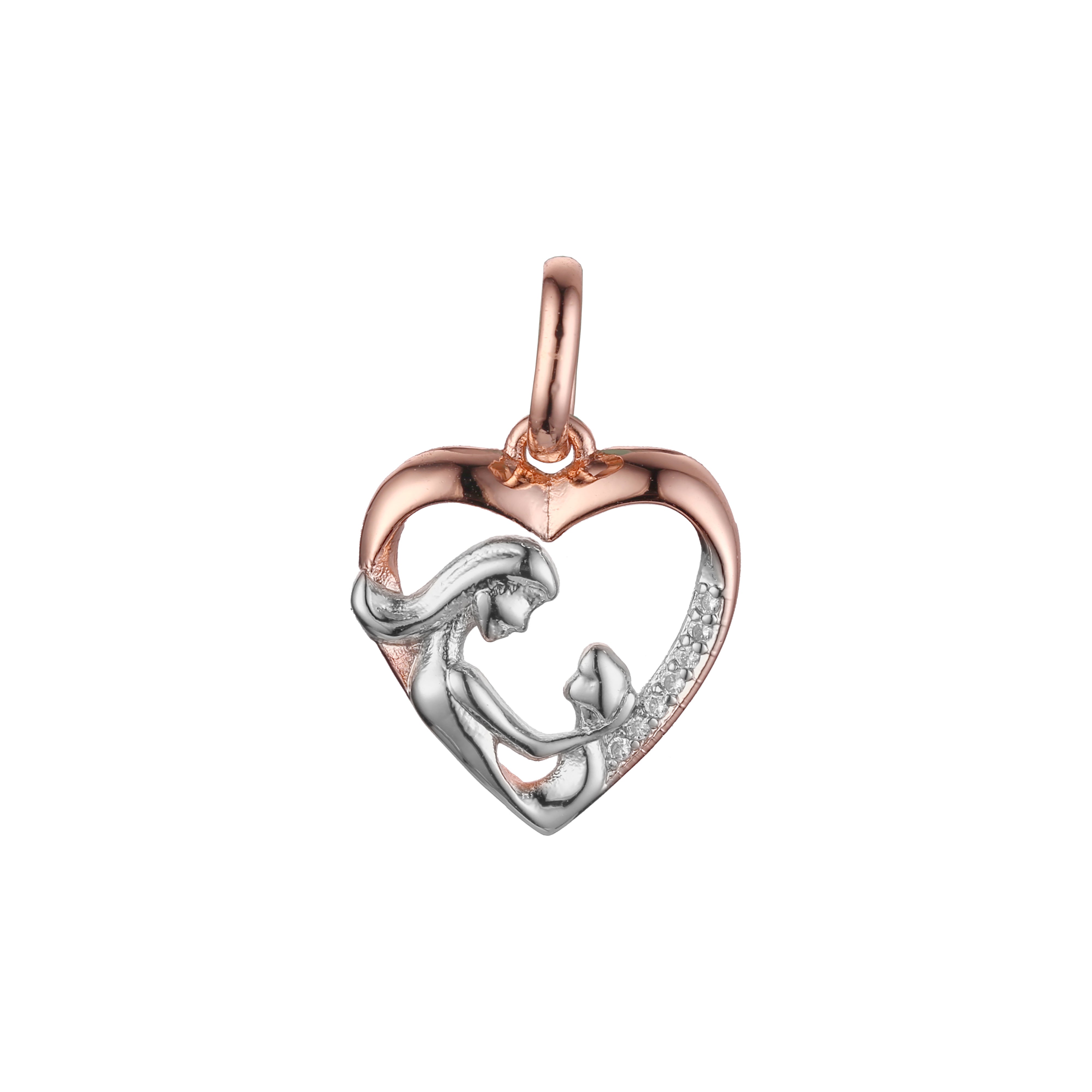 Mother and kid heart pendant in Rose Gold two tone, 14K Gold plating colors