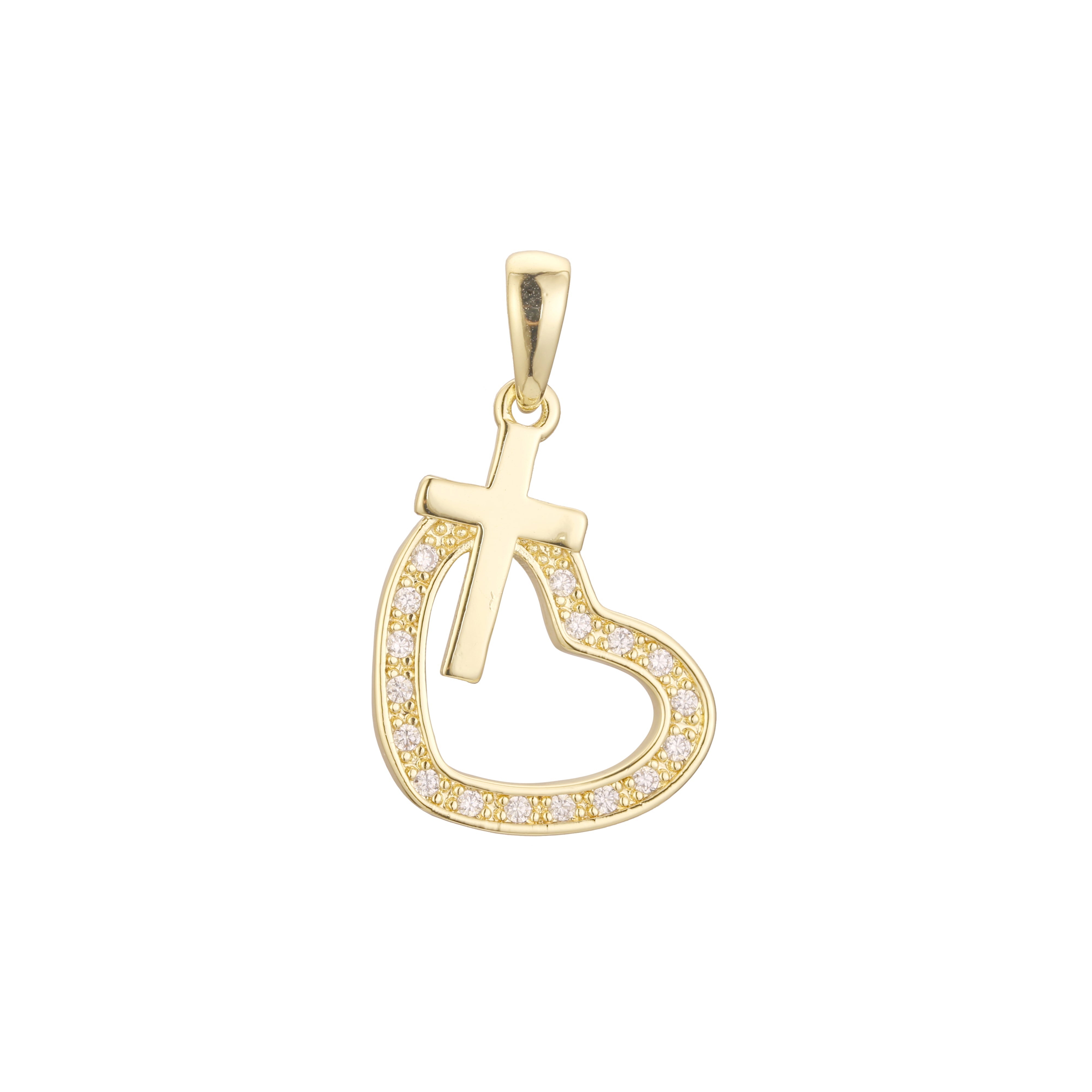 Cross in heart pendant in Rose Gold, 14K Gold plating colors