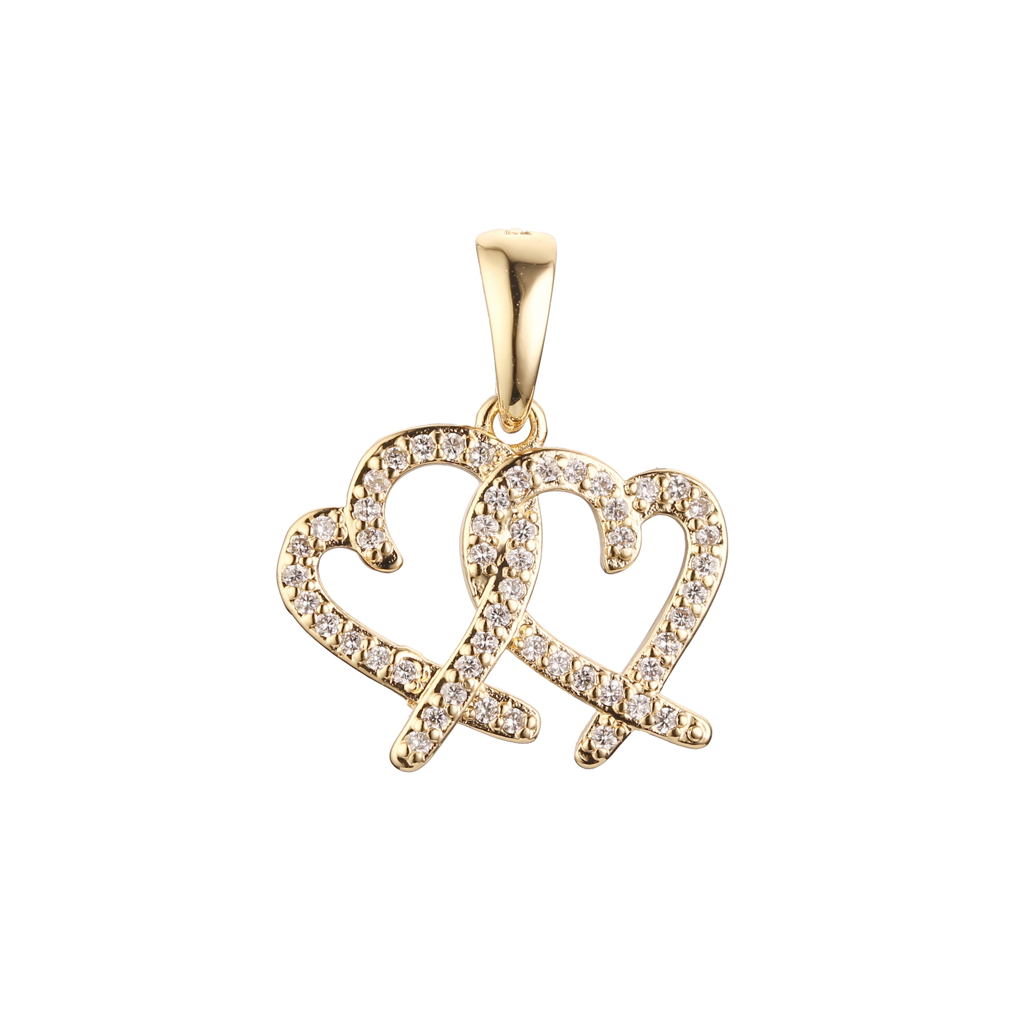 Double heart and arrow pendant in 14K Gold, Rose Gold, White Gold plating colors