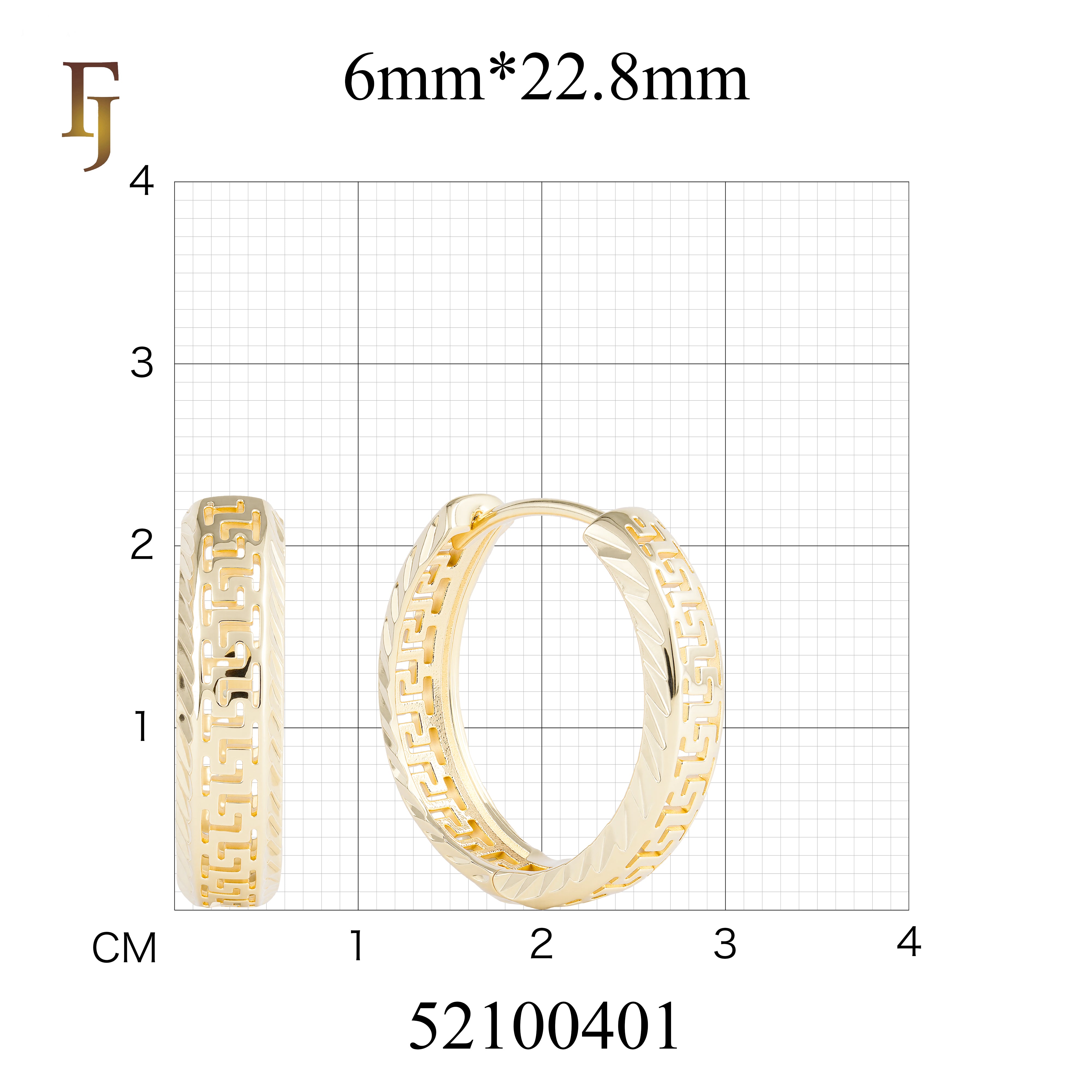 Greek Key Pattern Hoop Earrings in 18K Gold Plated Brass | Geometric Huggie Earrings for Women | FJ Fallon Jewelry