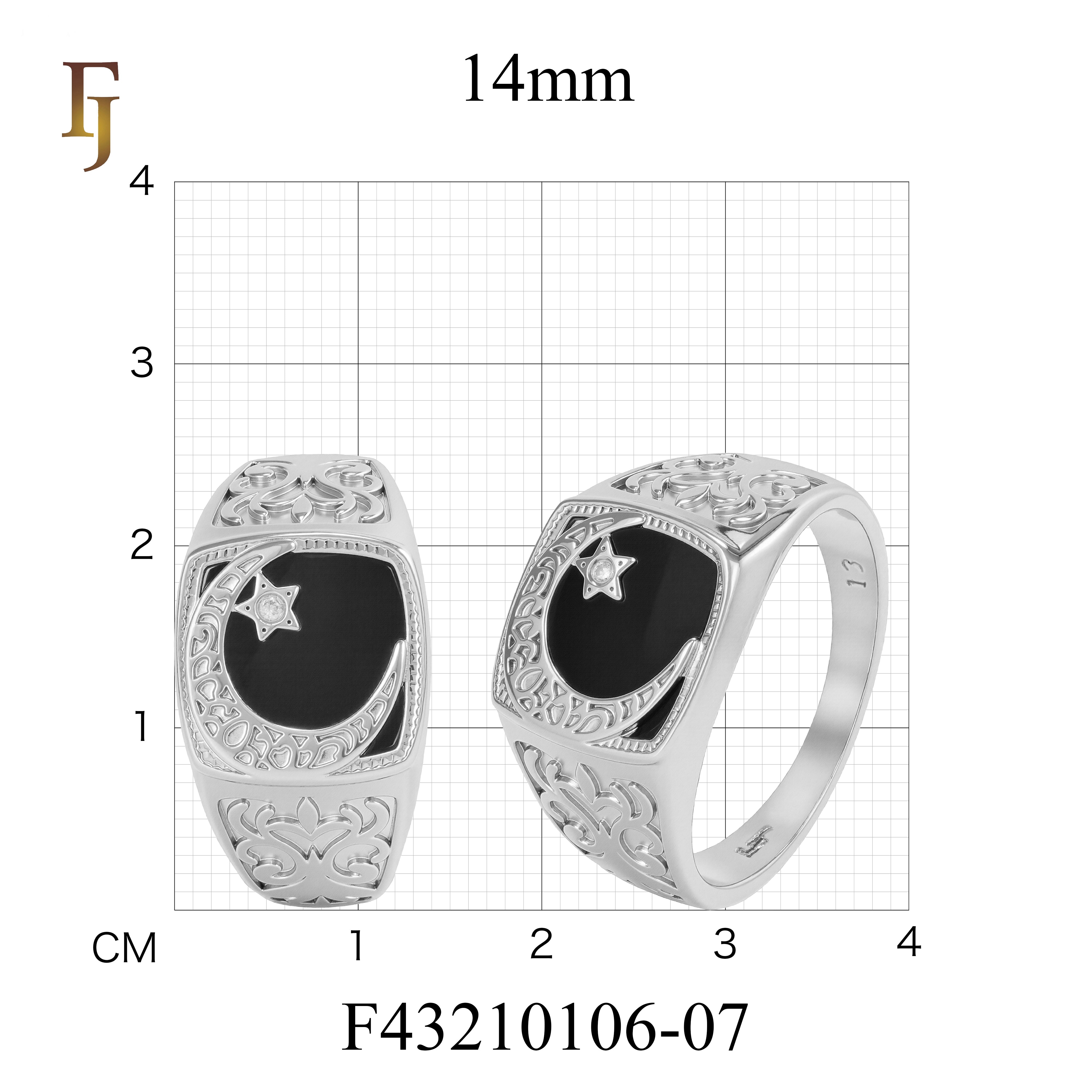 Islamic Crescent Star Black Onyx Ring for Men – Muslim Stainless Steel Signet Ring – FJ Jewelry