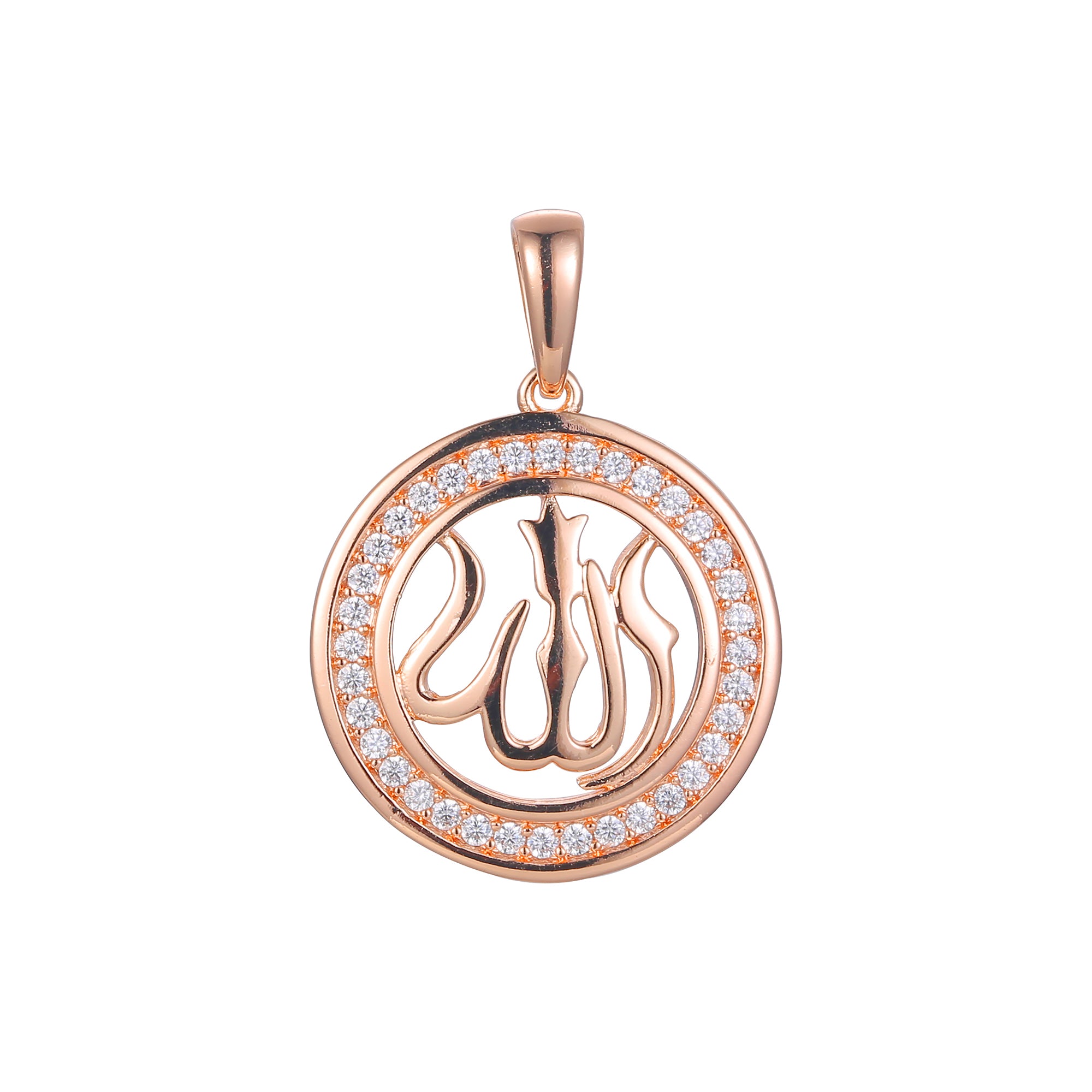 Islamic Allah sign Halo paved white CZs 14K Gold, Rose Gold, 18K Gold pendant