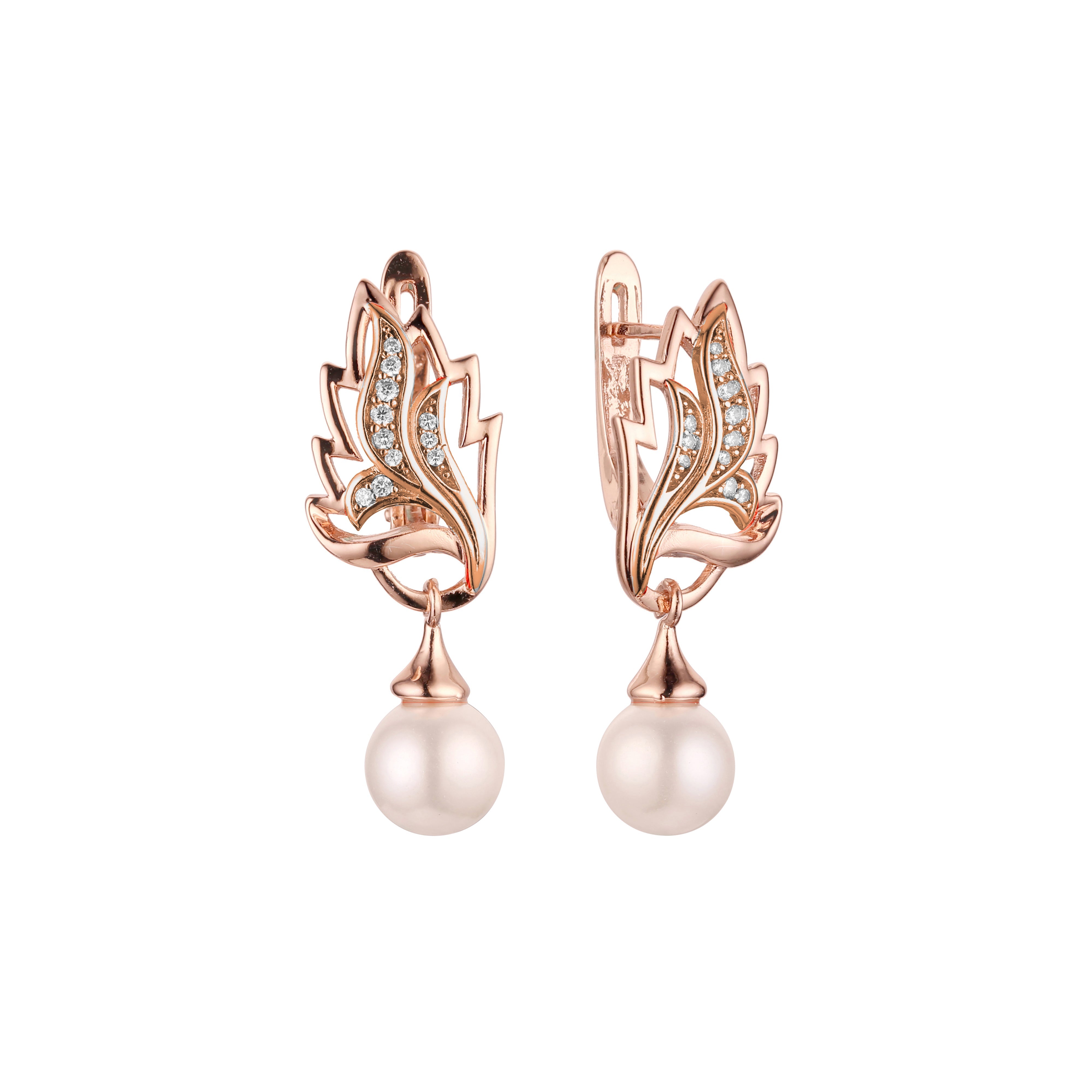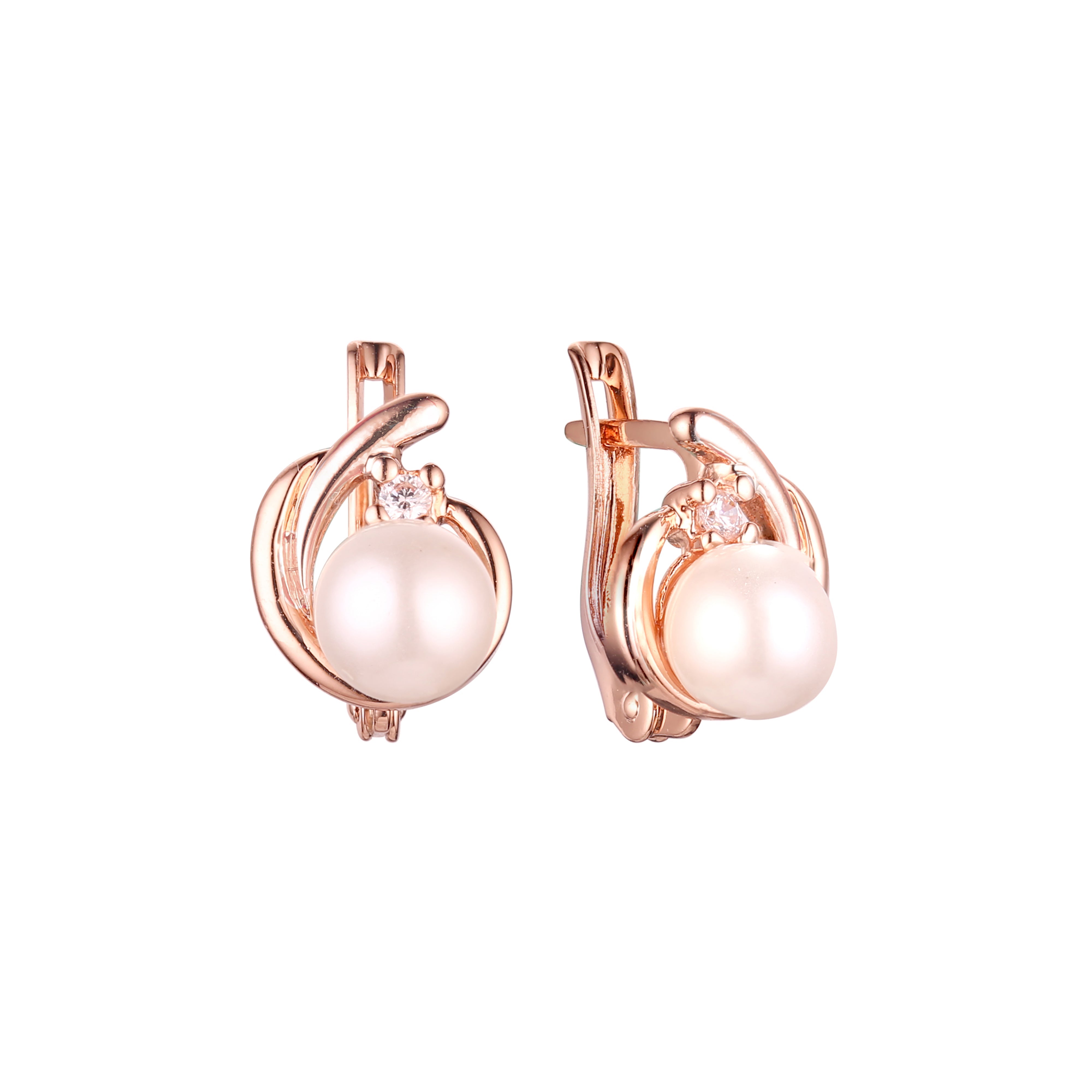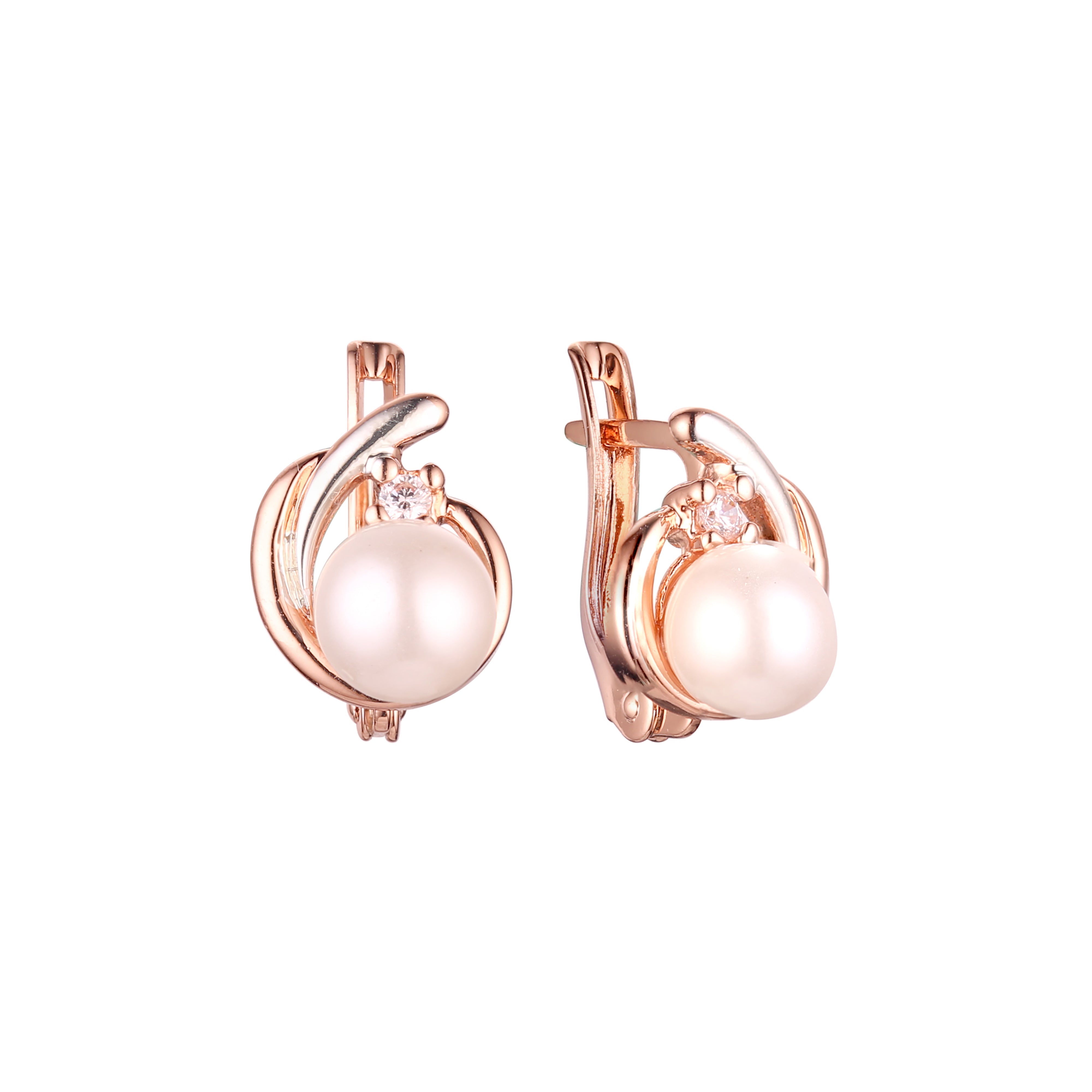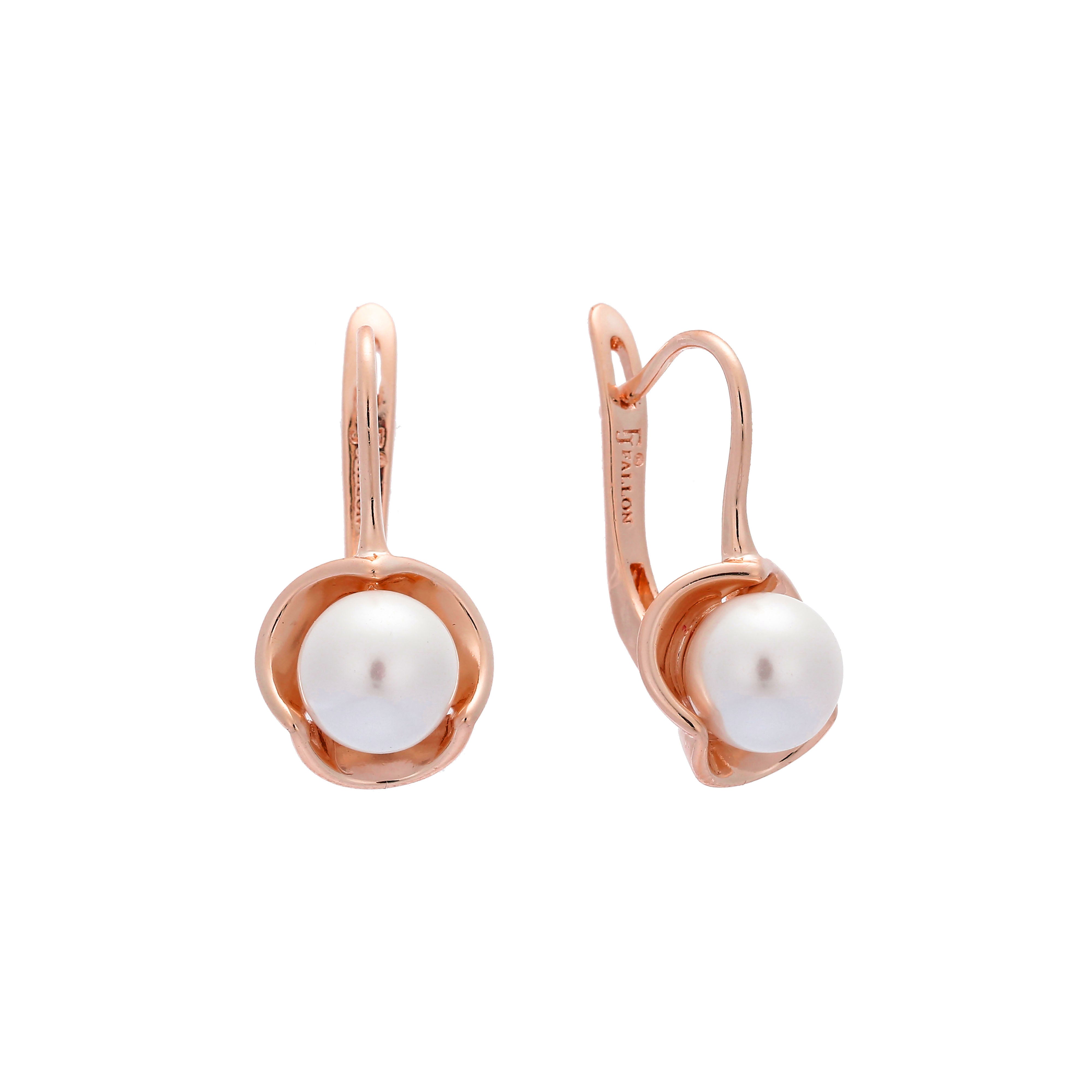 Pearl earrings in Rose Gold, two tone plating colors