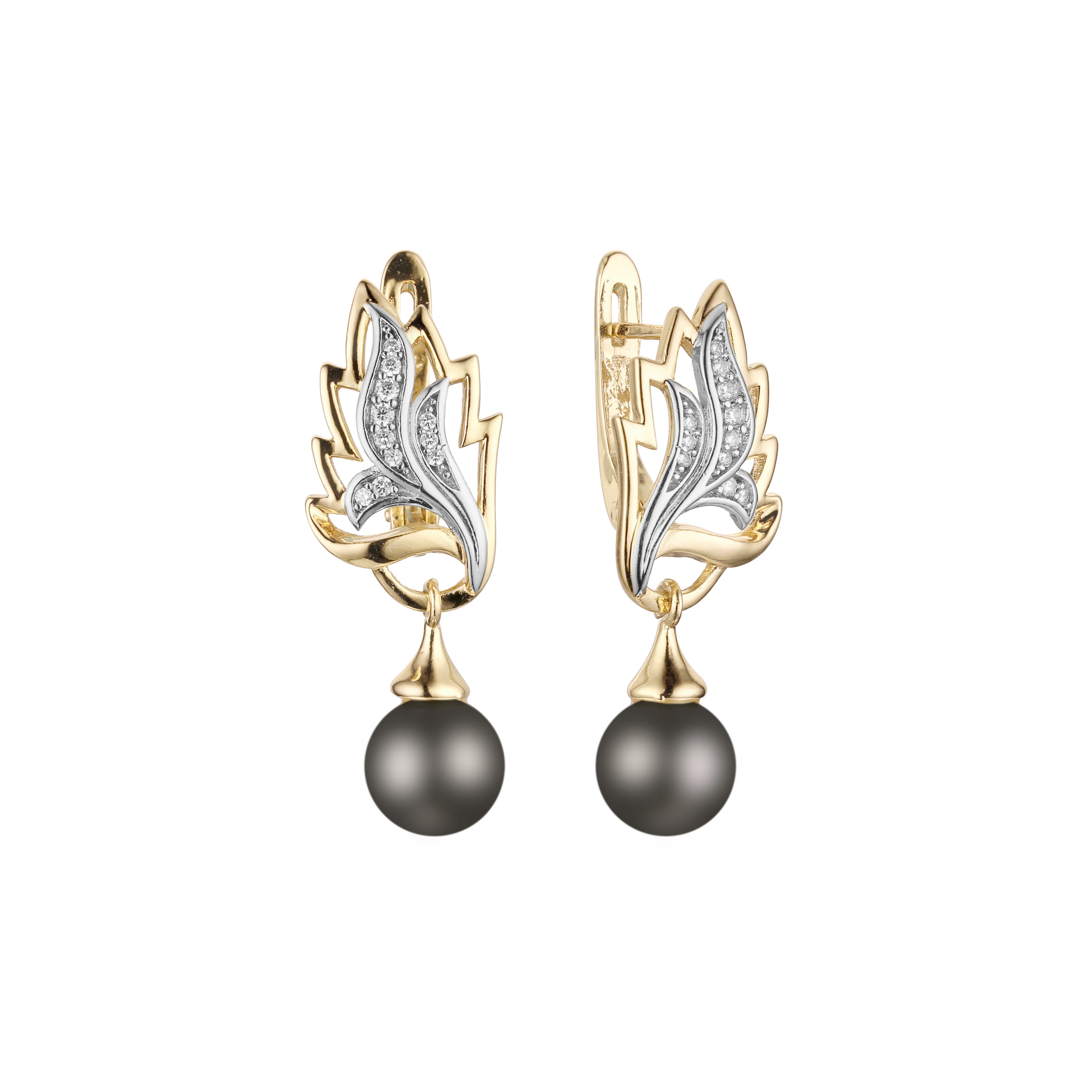 Pearl and leaves drop earrings in 14K Gold, Rose Gold two tone plating colors