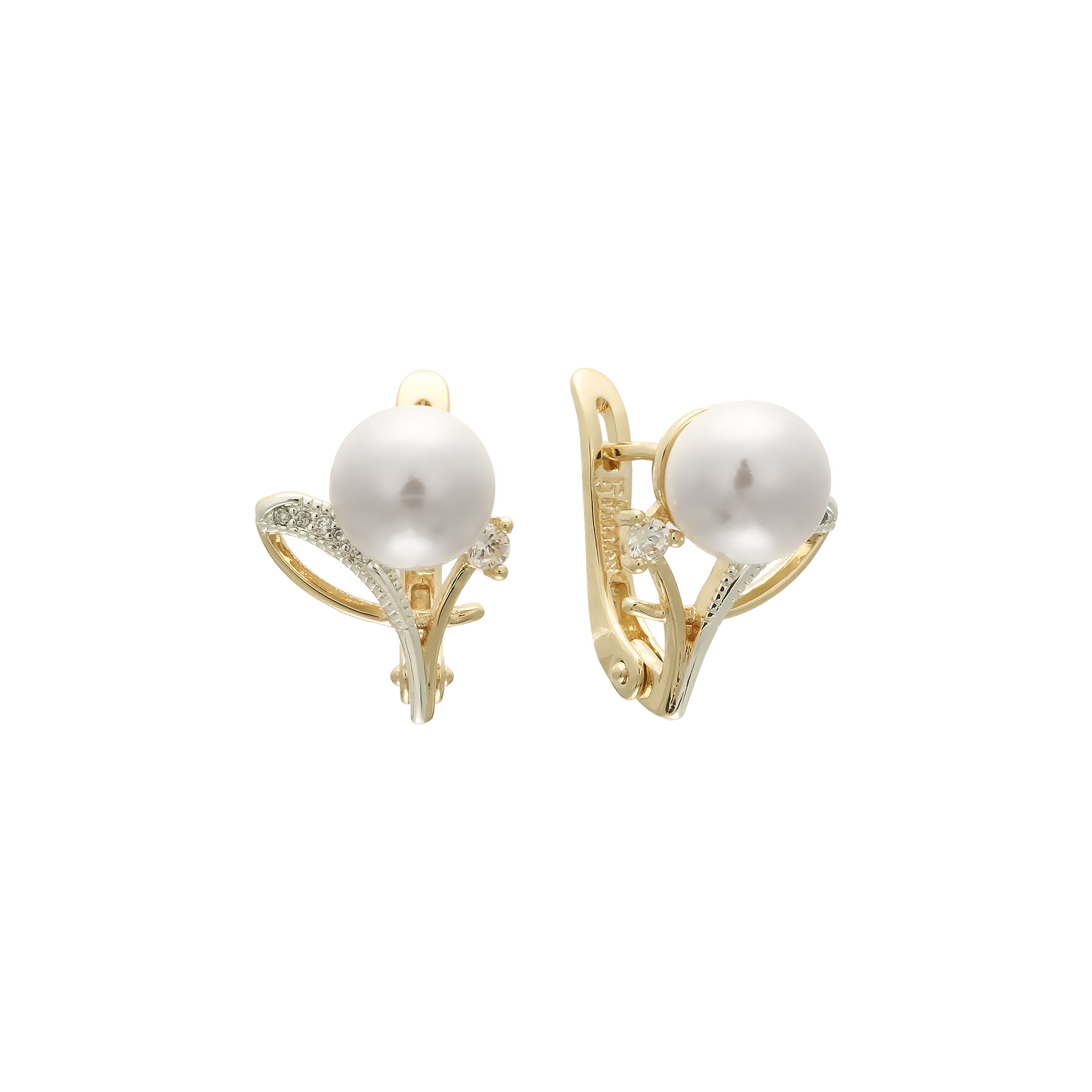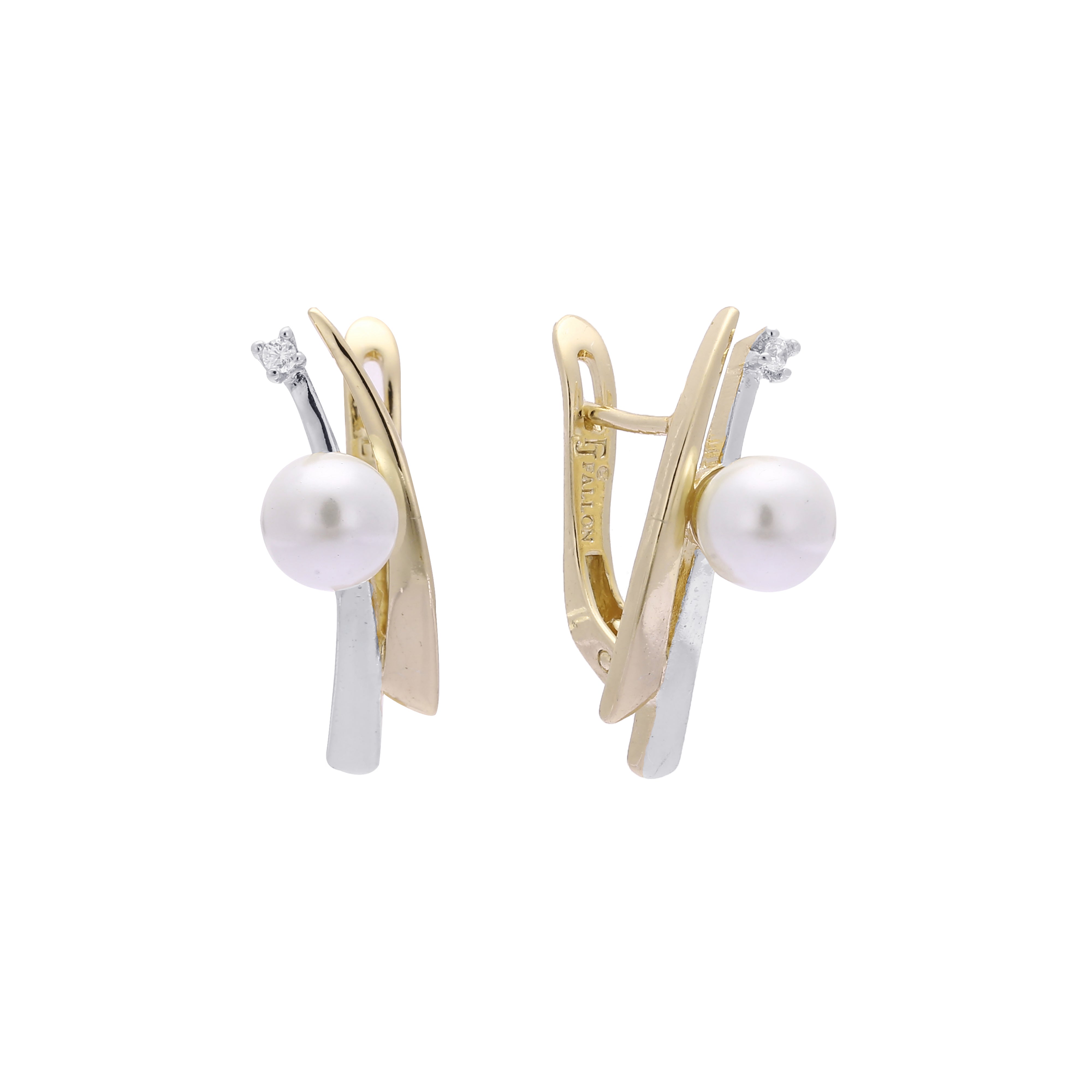 Pearl earrings in 14K Gold, Rose Gold, two tone plating colors