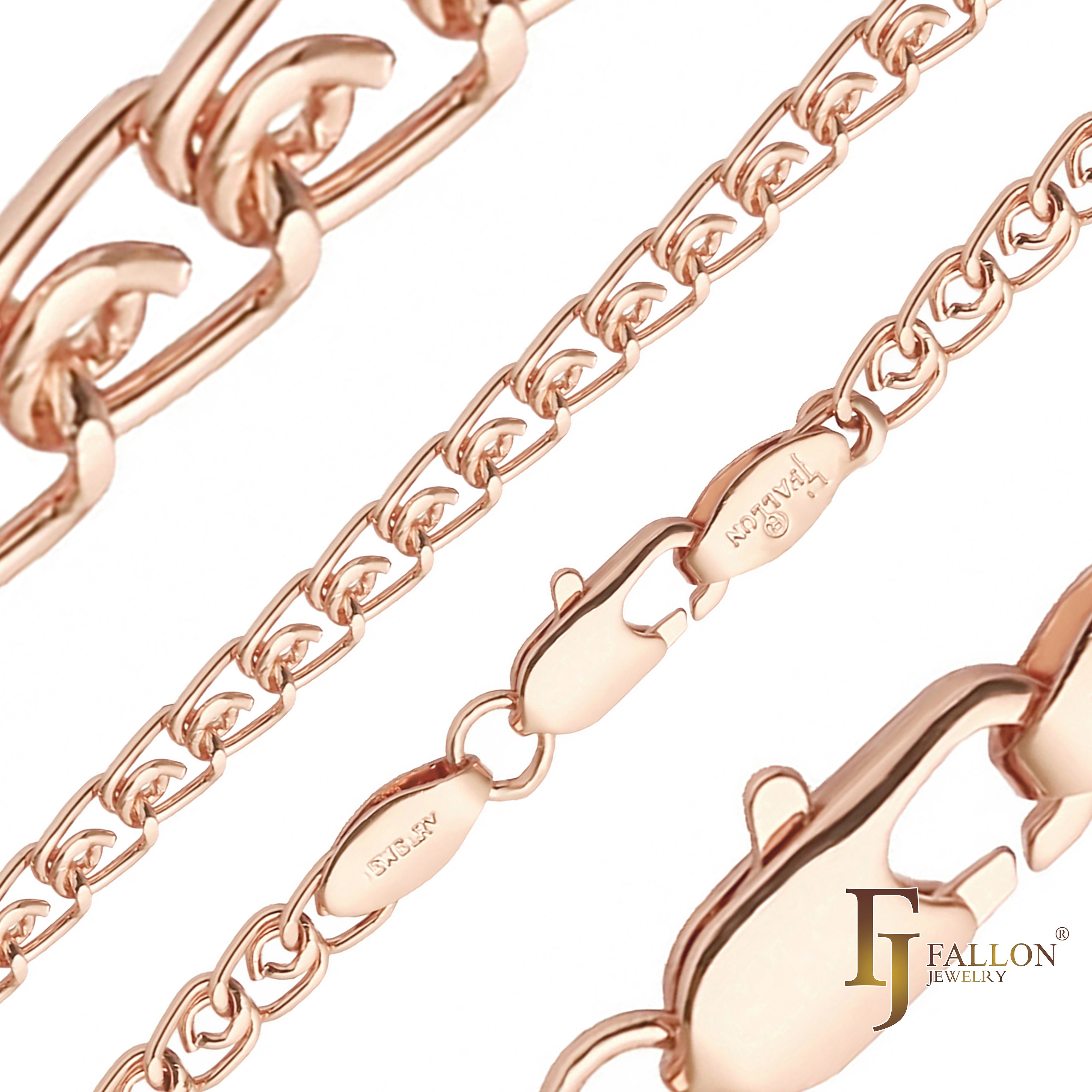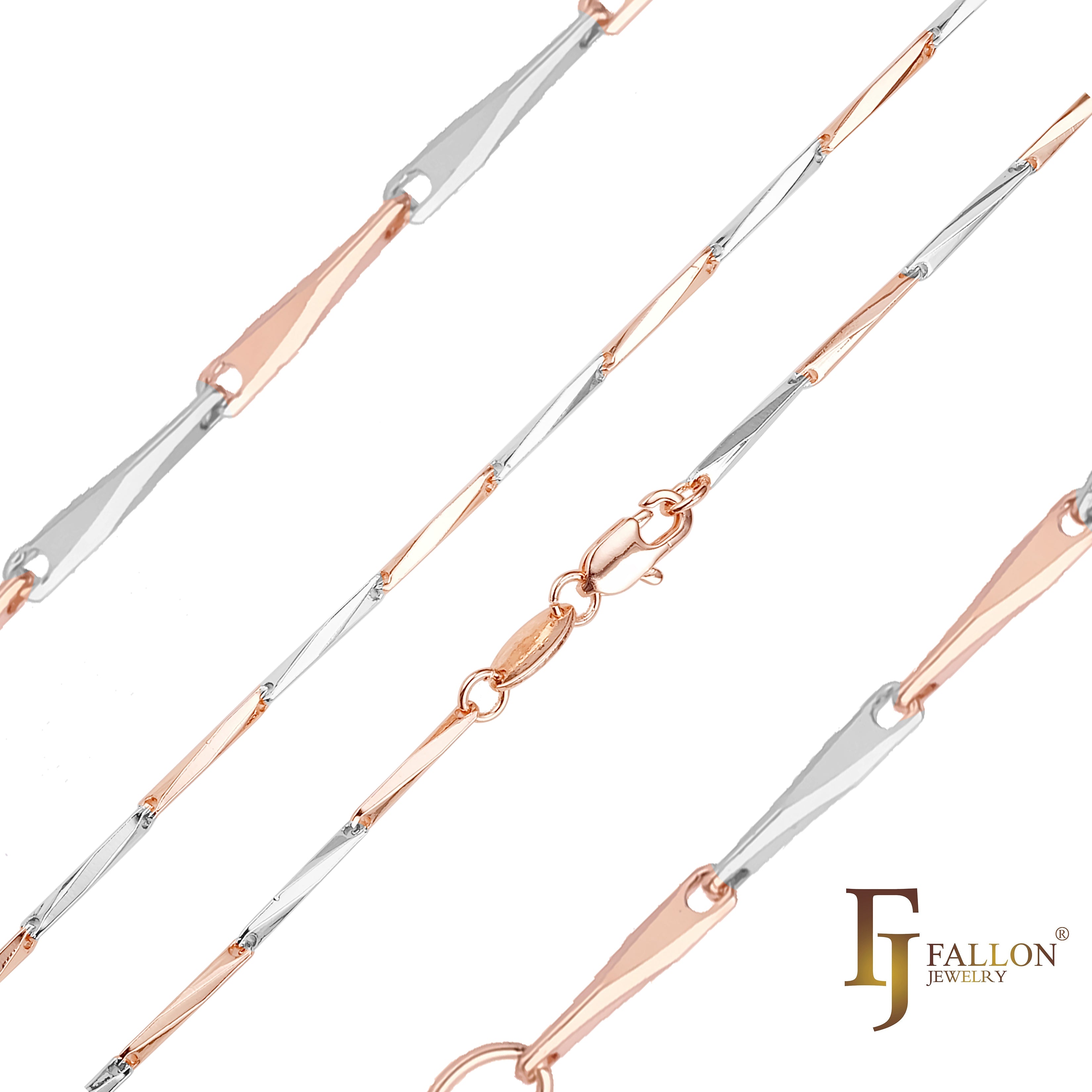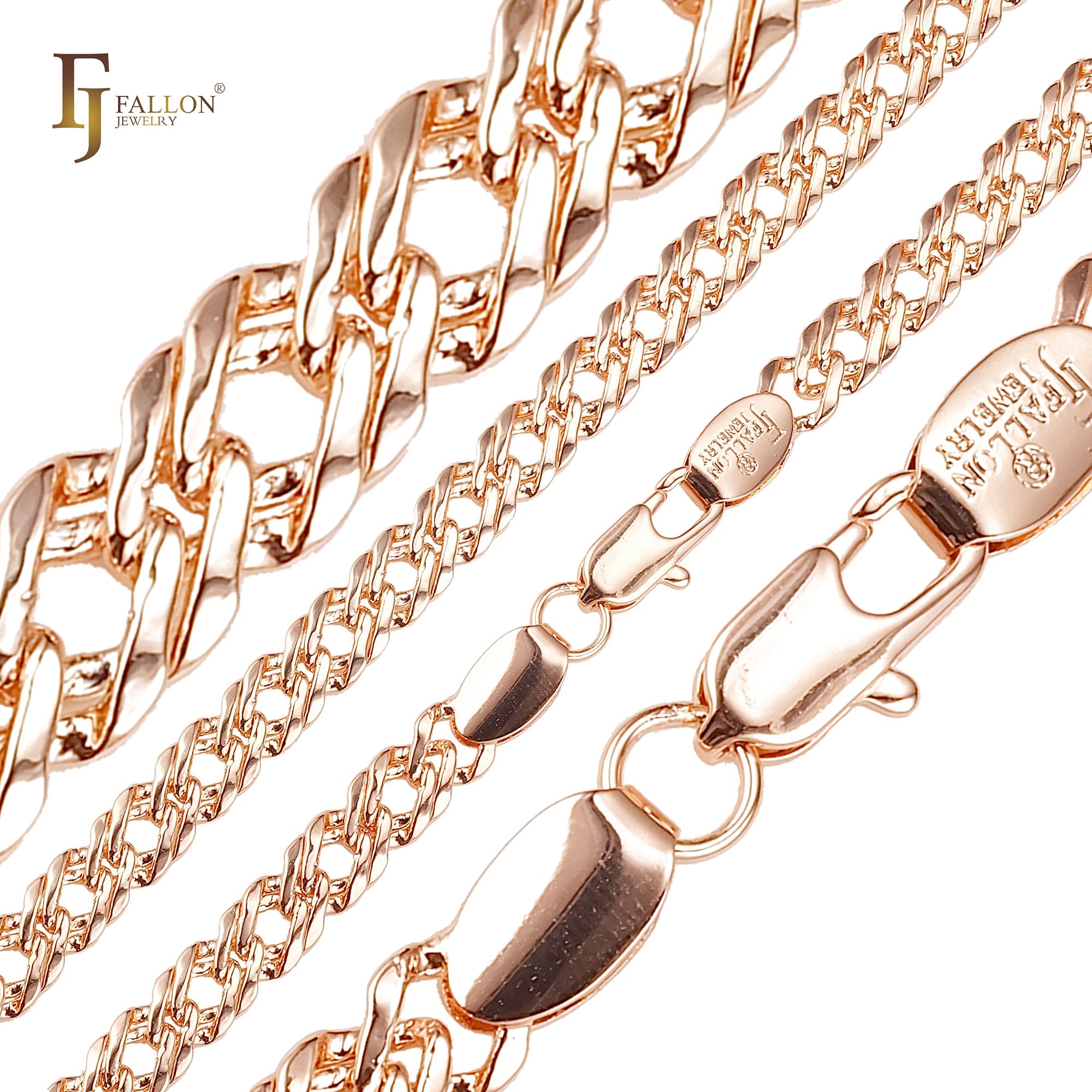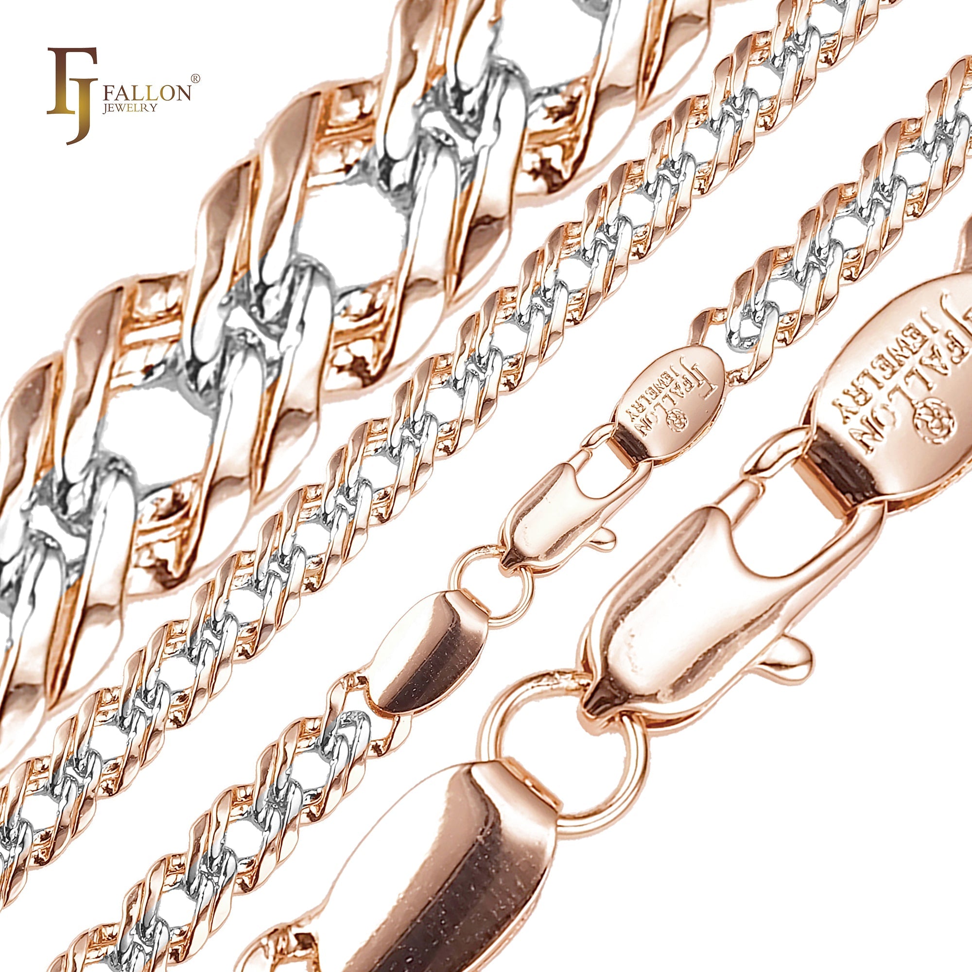 Figaro Z mixed Cuban fancy link chains plated in 14K Gold, Rose Gold, two tone