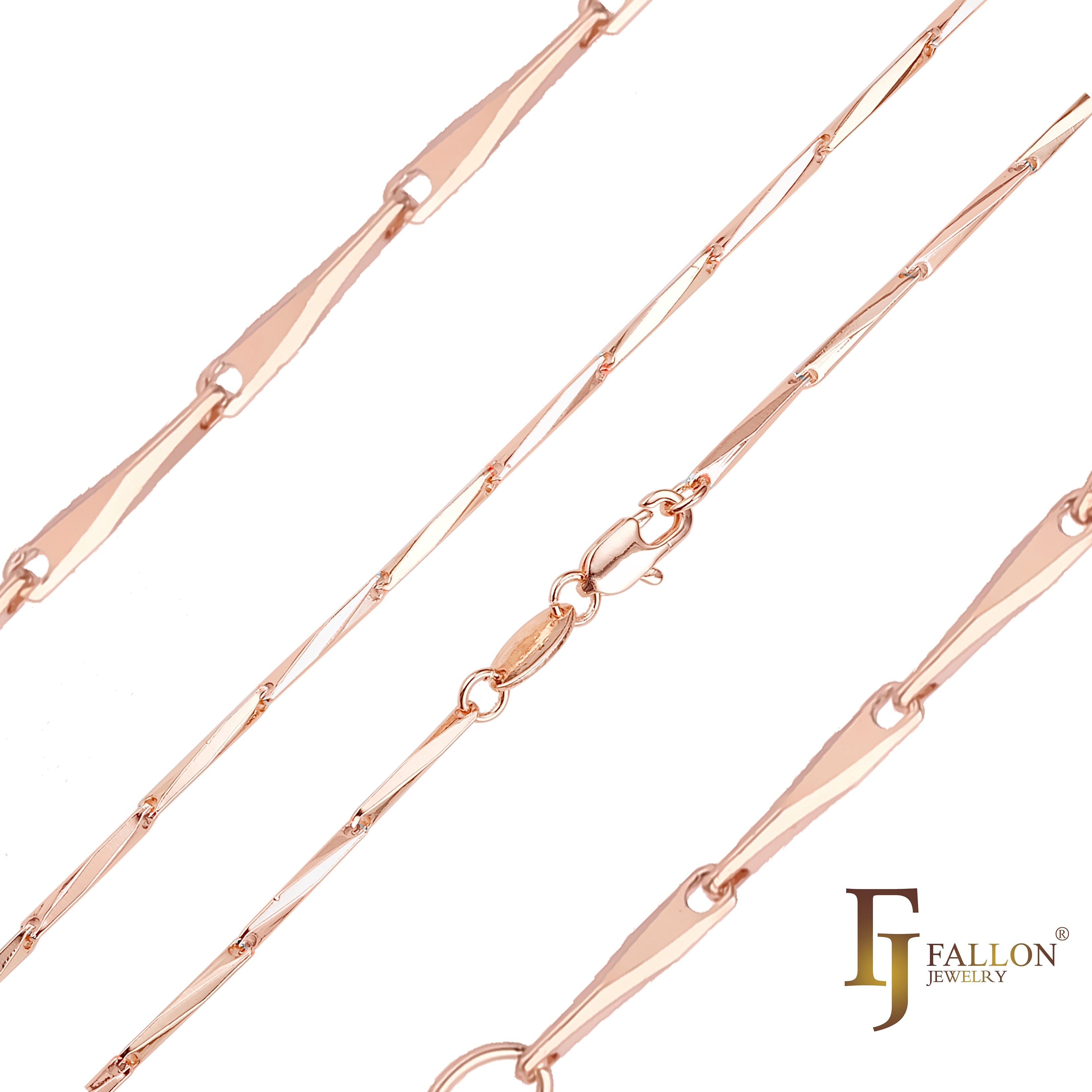 .Rombo hammered chains plated in White Gold, 14K Gold, Rose Gold, two tone