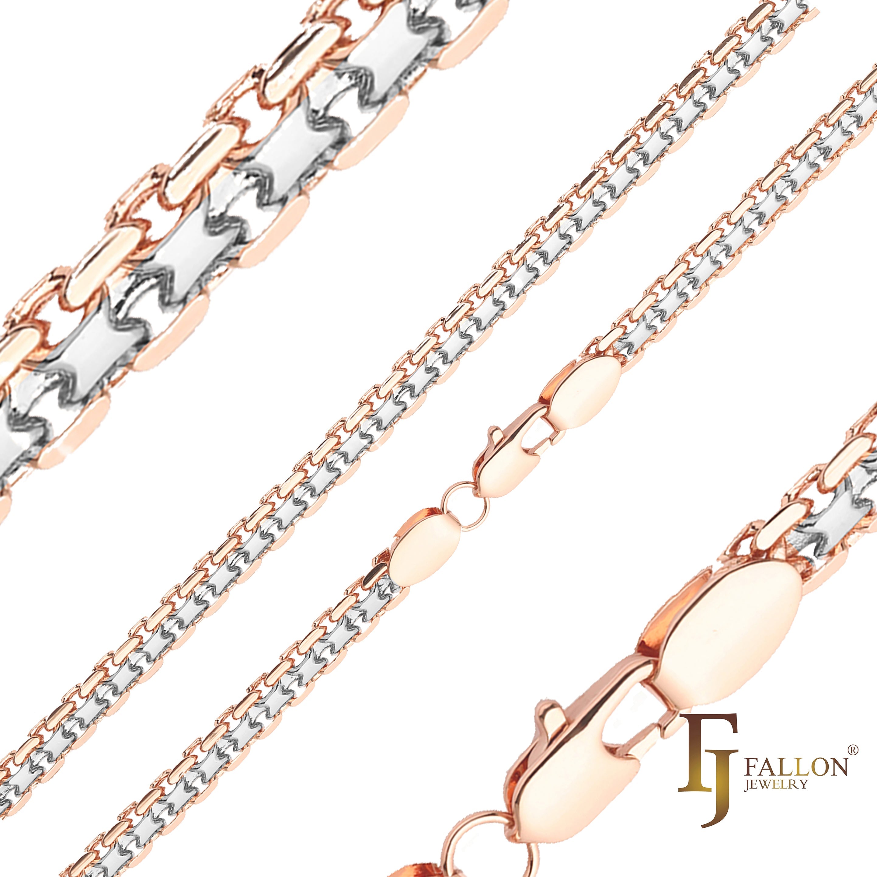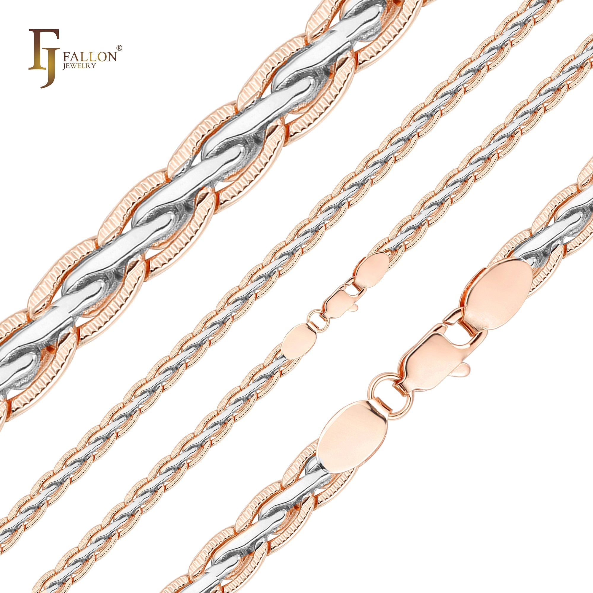Elegant Rose Gold two tone classic barleycorn fancy link chains