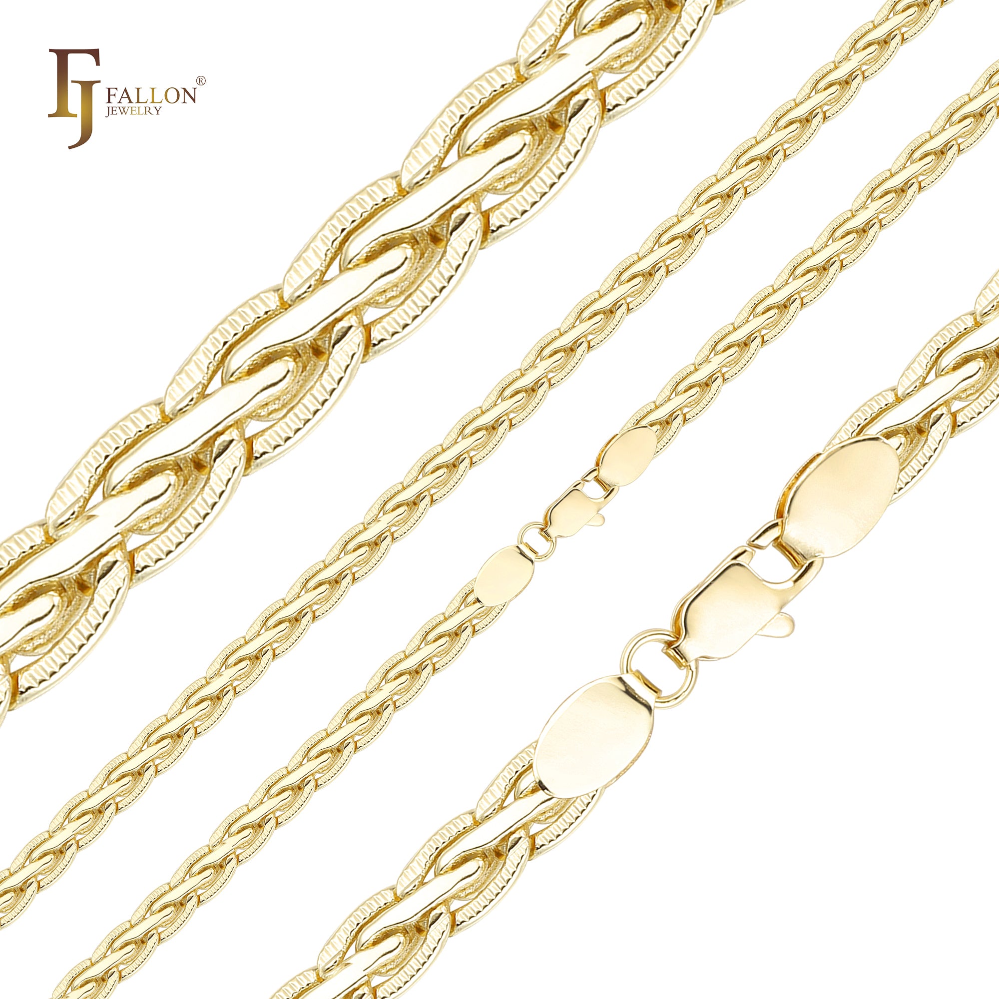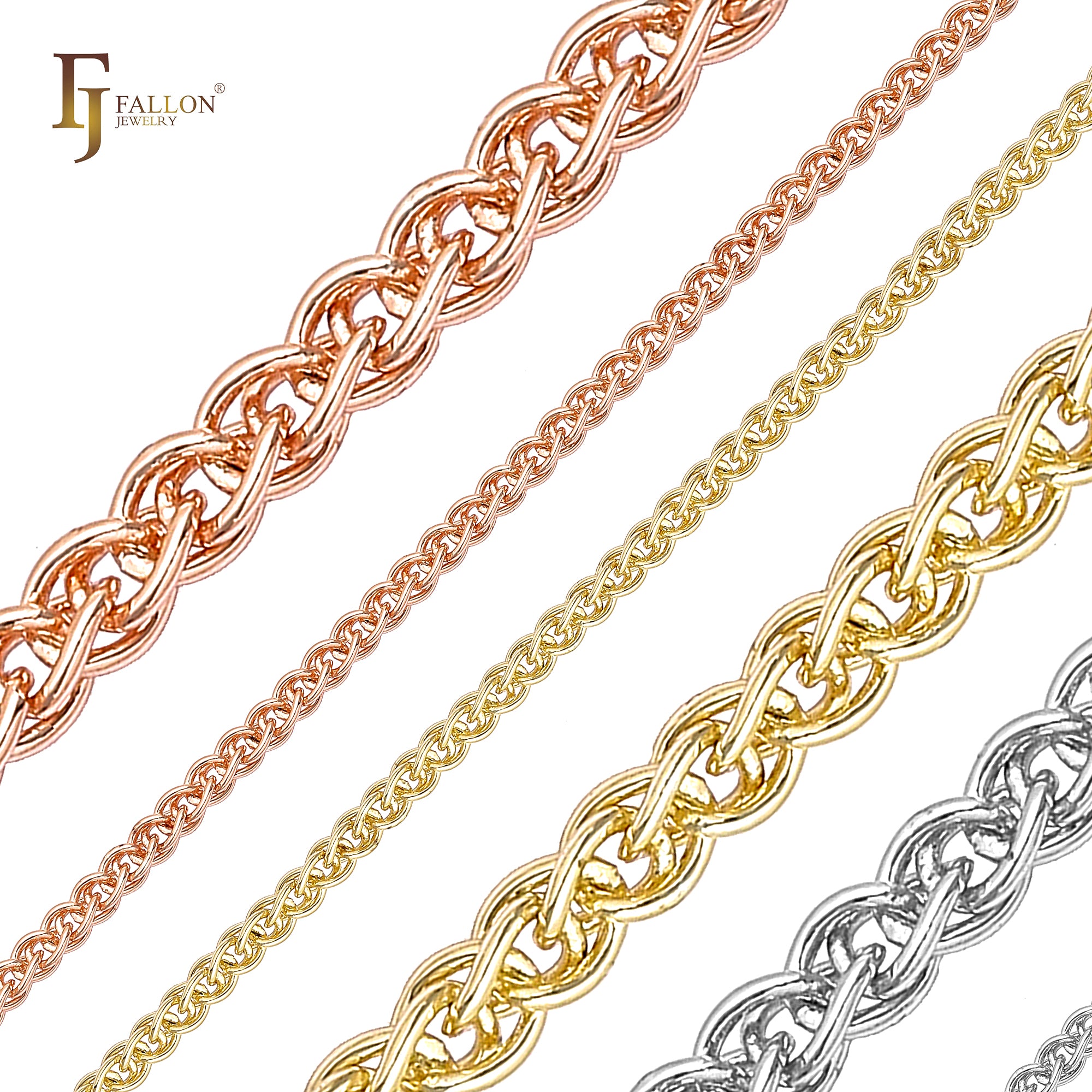 Spiga wheat chains cable link plated in 14K Gold, Rose Gold, White Gold