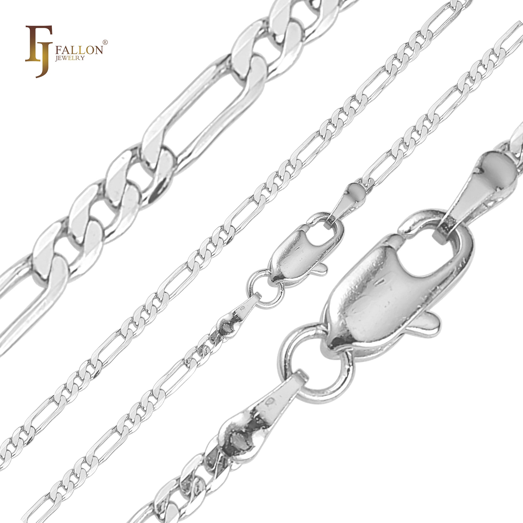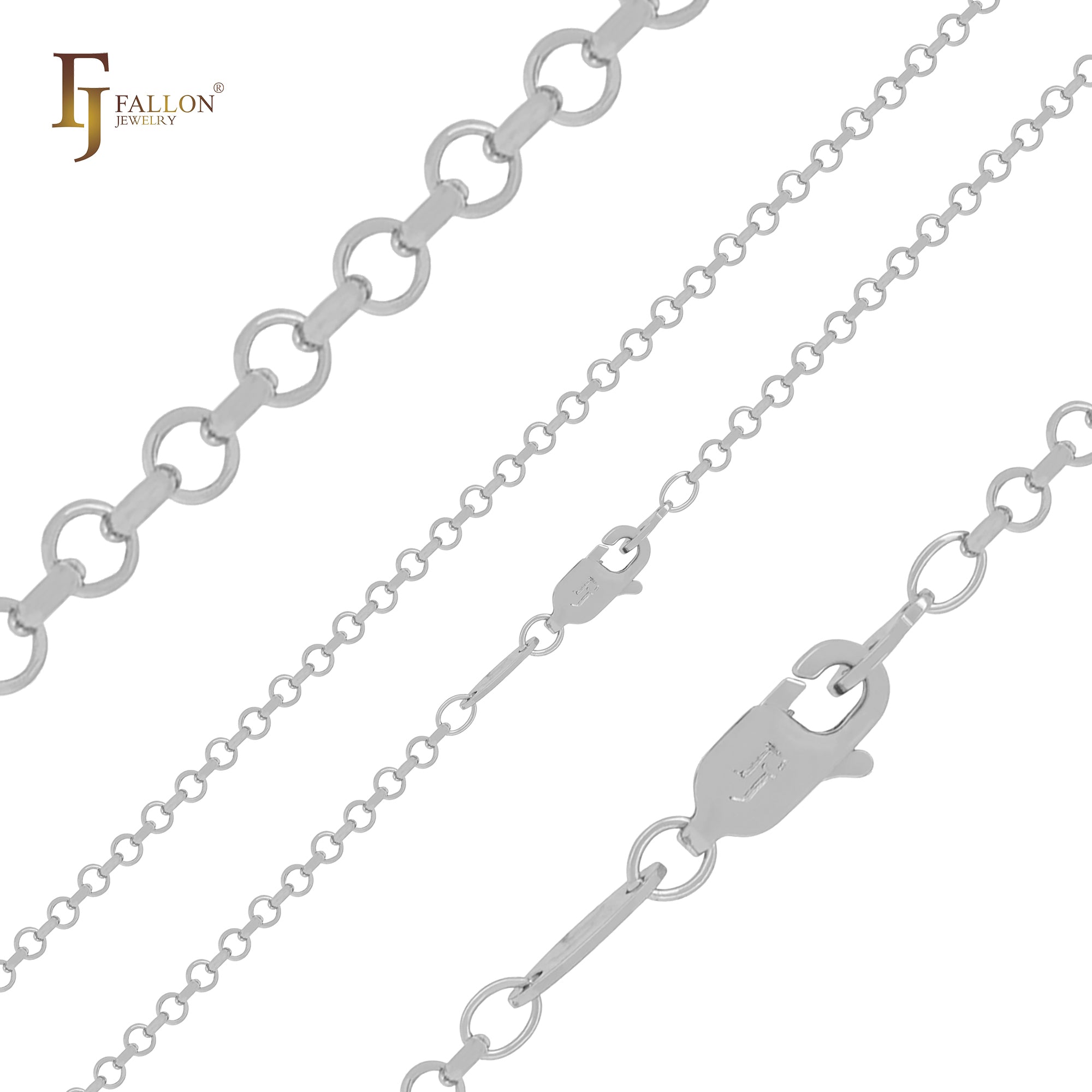 Italian Anchor cable link chains plated in White Gold, 14K Gold, Rose Gold