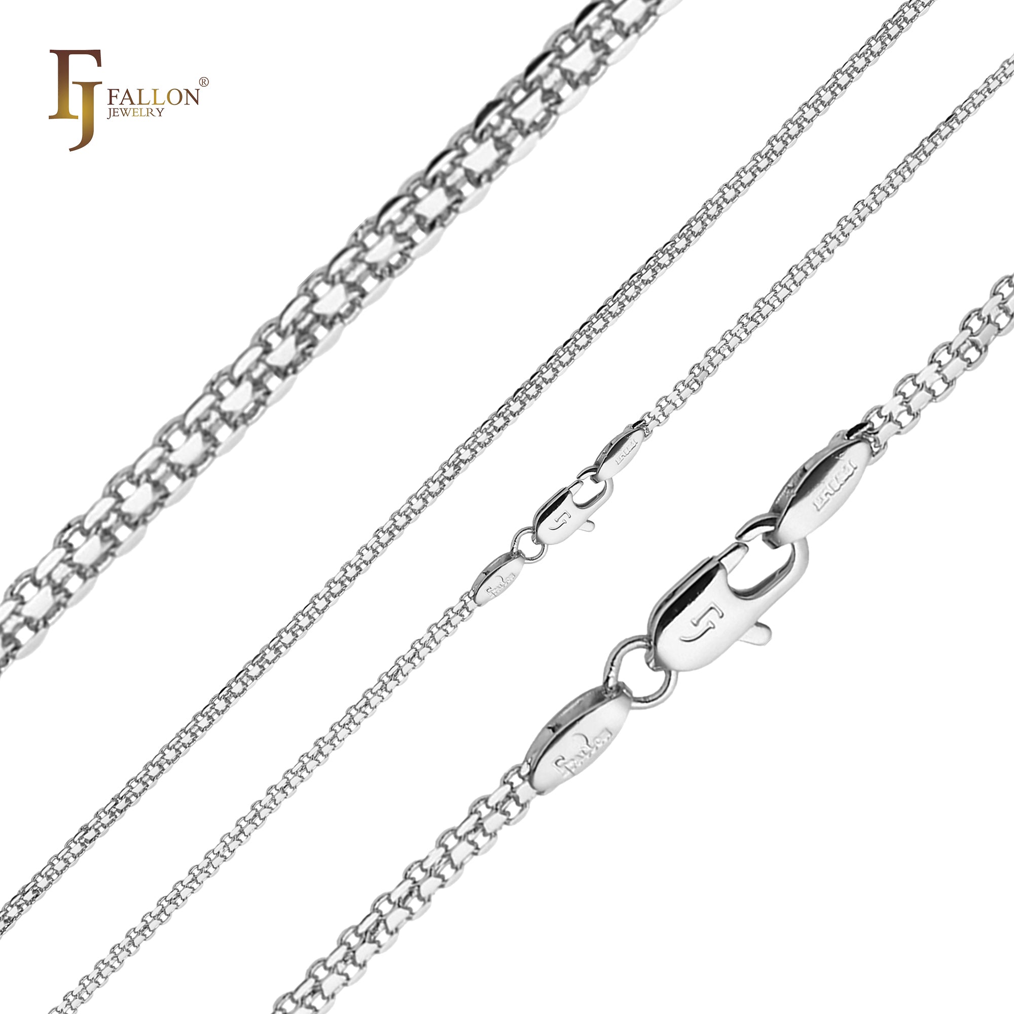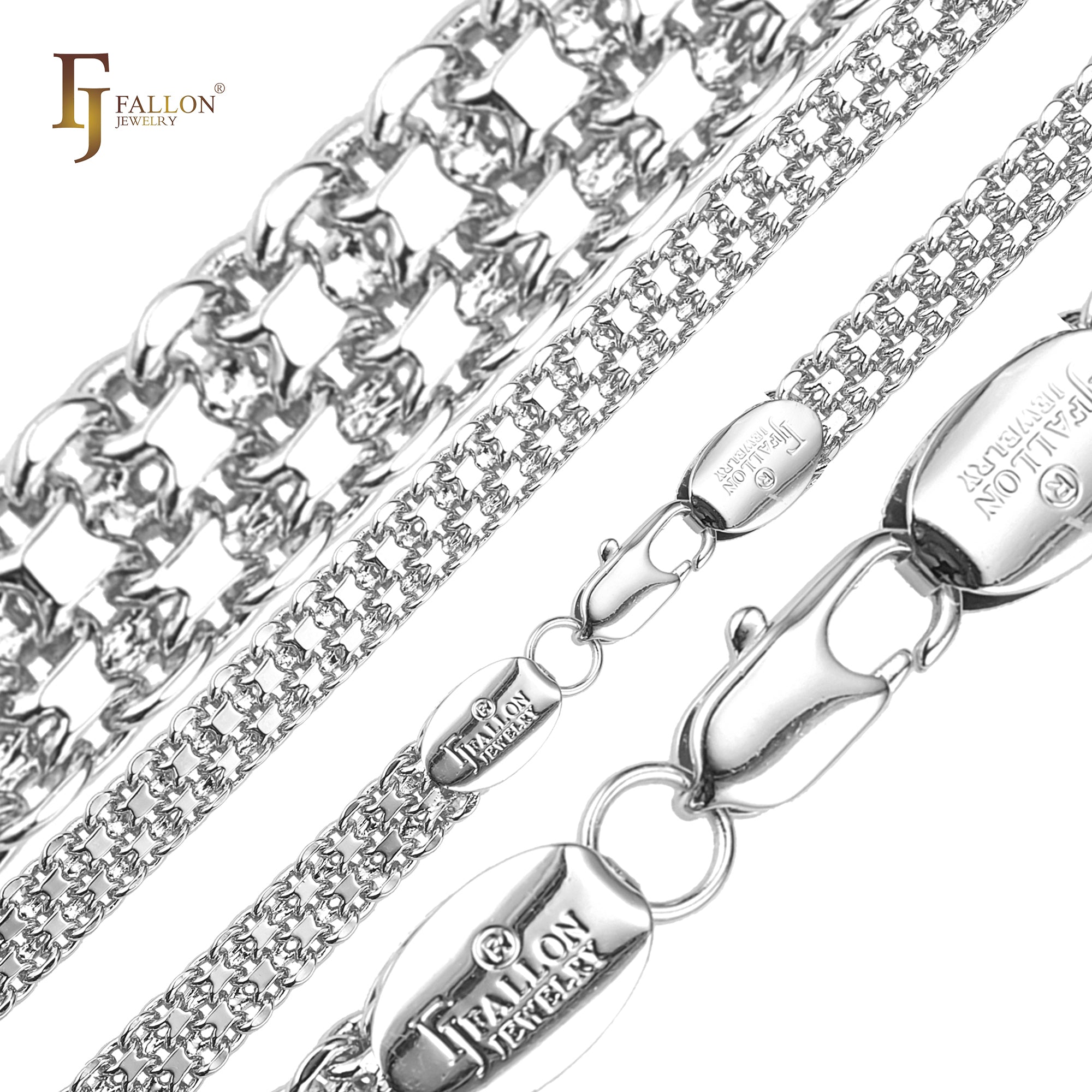 .Two-way Cuban double link chains plated in White Gold Surface flattened SF