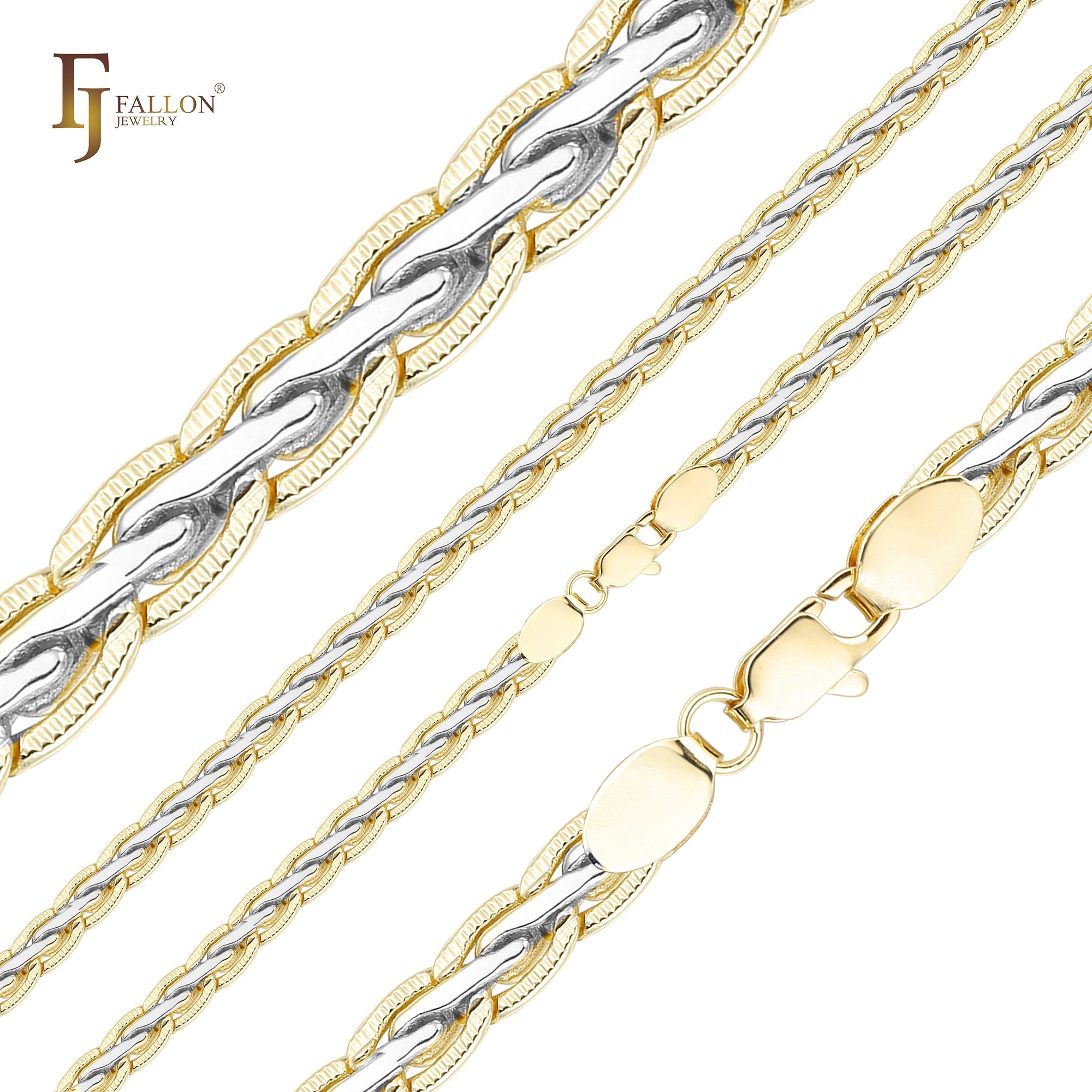 Spiga wheat tire hammered chains plated in 14K Gold, two tone, White Gold