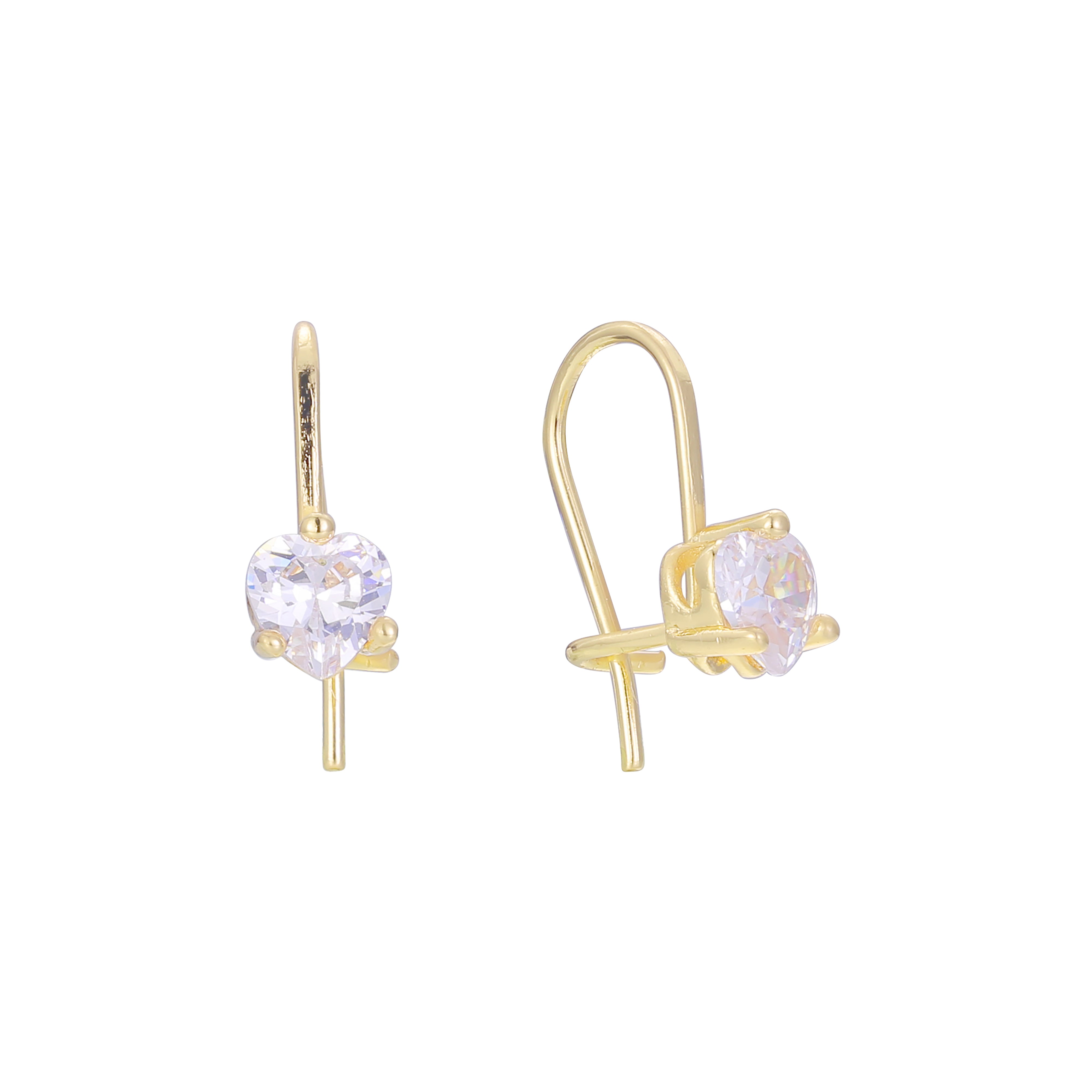 Solitaire heart wire hook child earrings in 14K Gold, Rose Gold plating colors