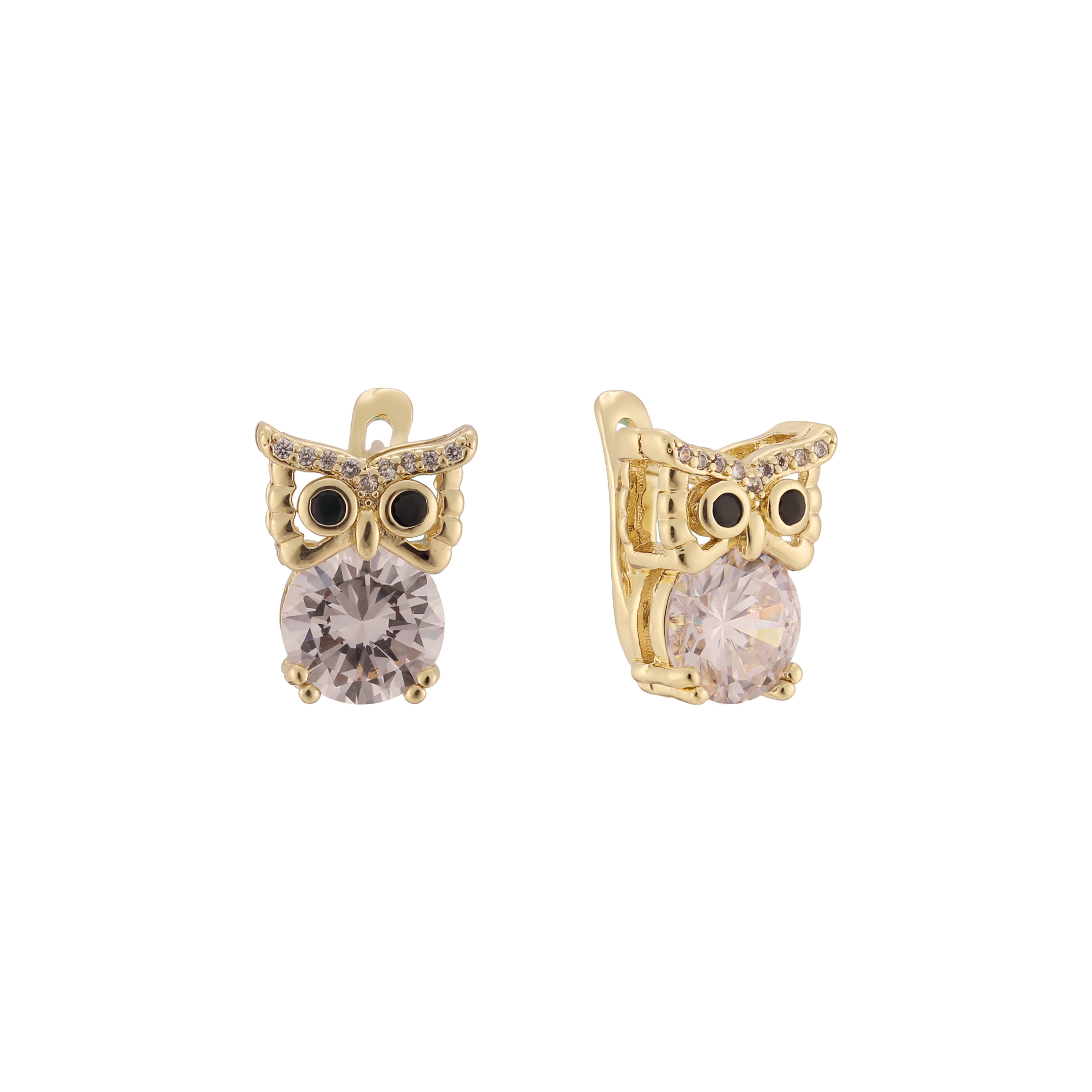 Cute owl solitaire 14K Gold, Rose Gold Child earrings