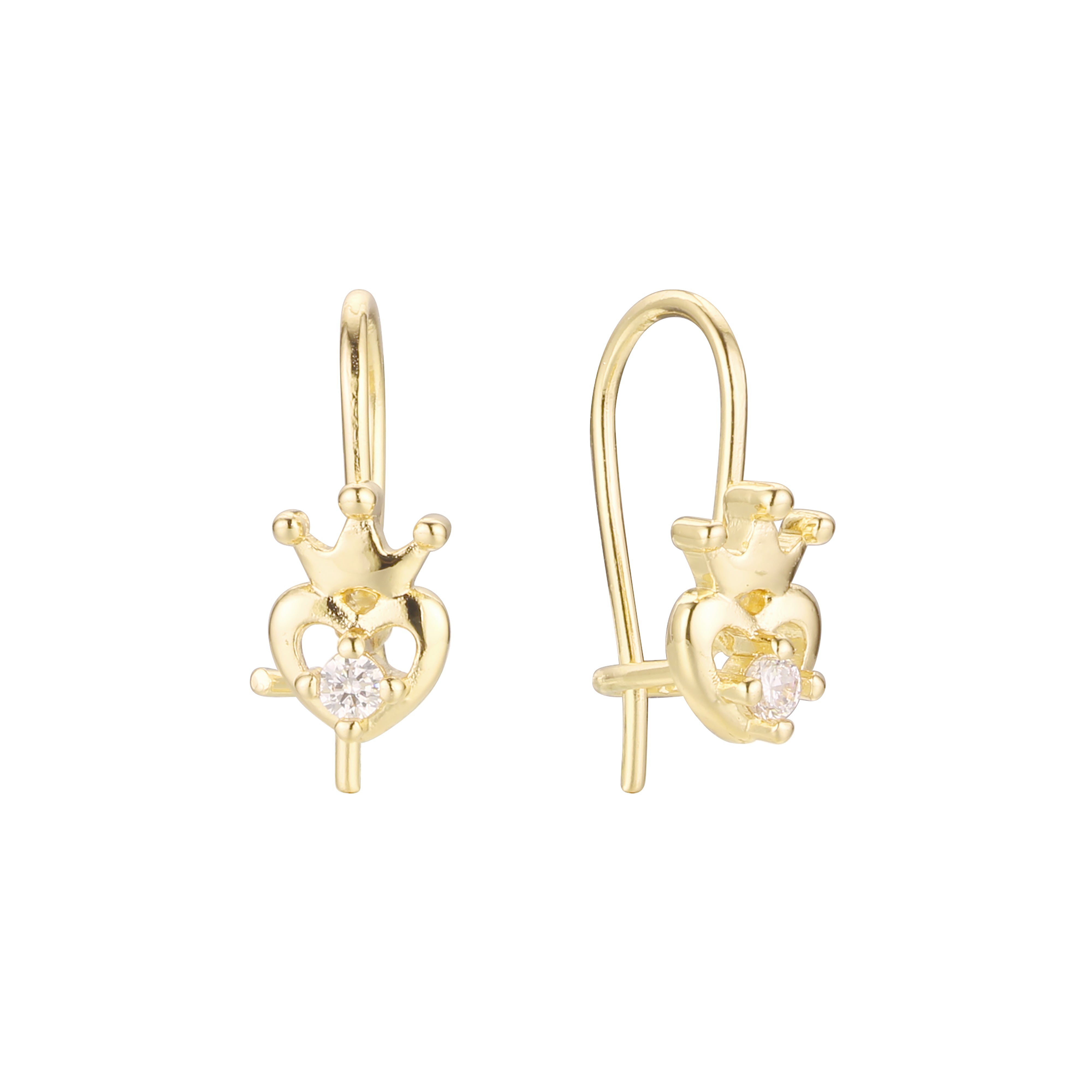 Crown and heart wire hook child earrings in 14K Gold, Rose Gold plating colors