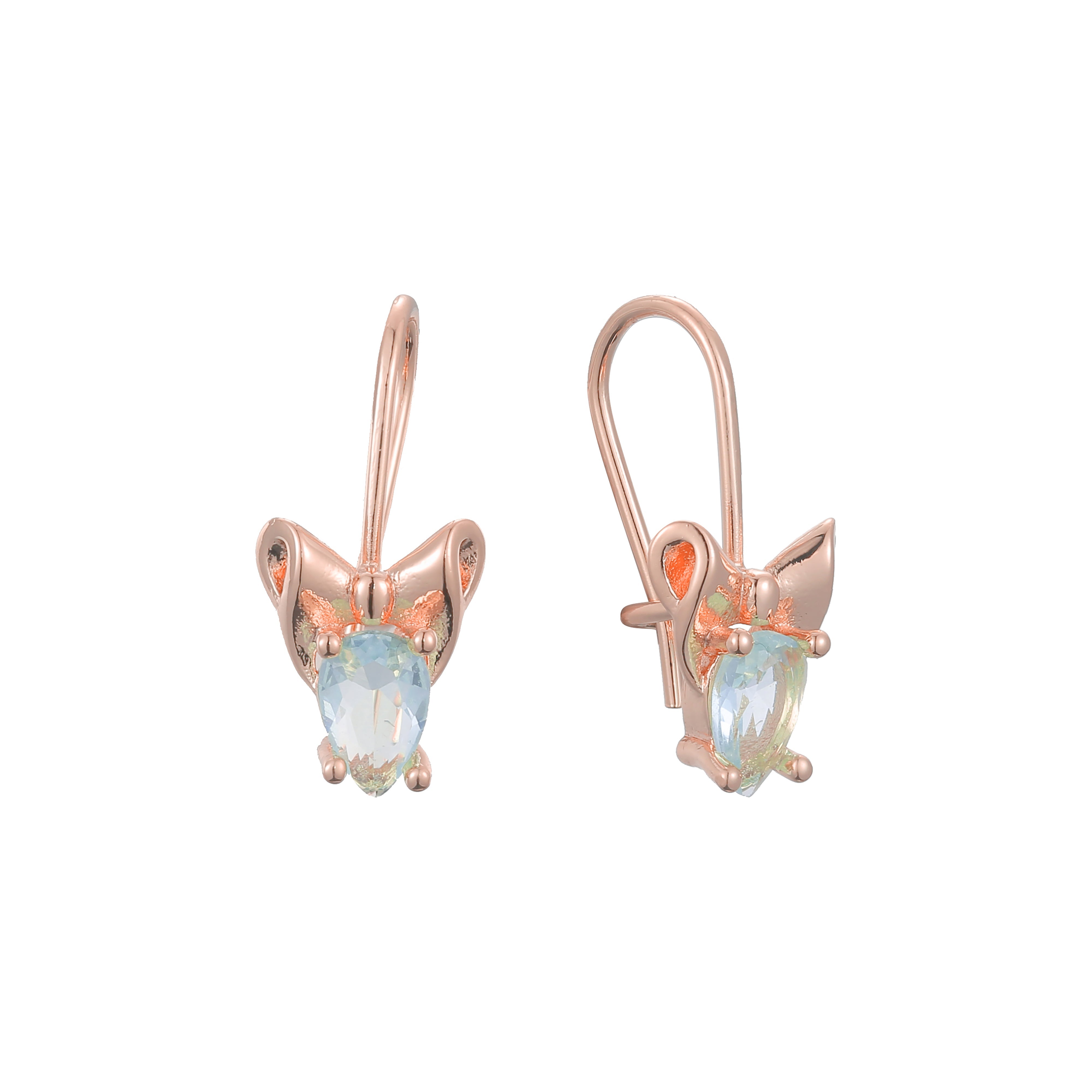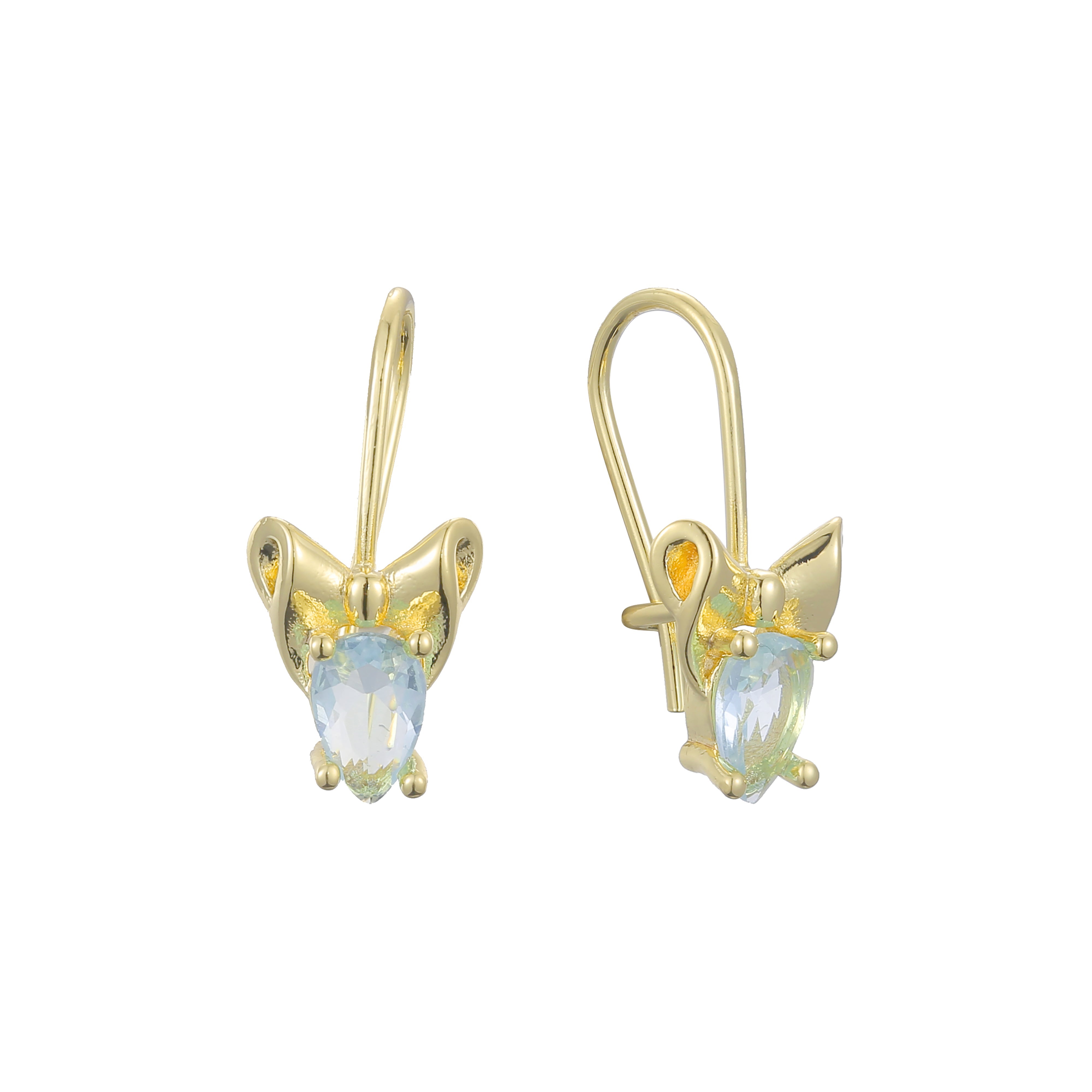 Butterfly wire hook child earrings in 14K Gold, Rose Gold plating colors