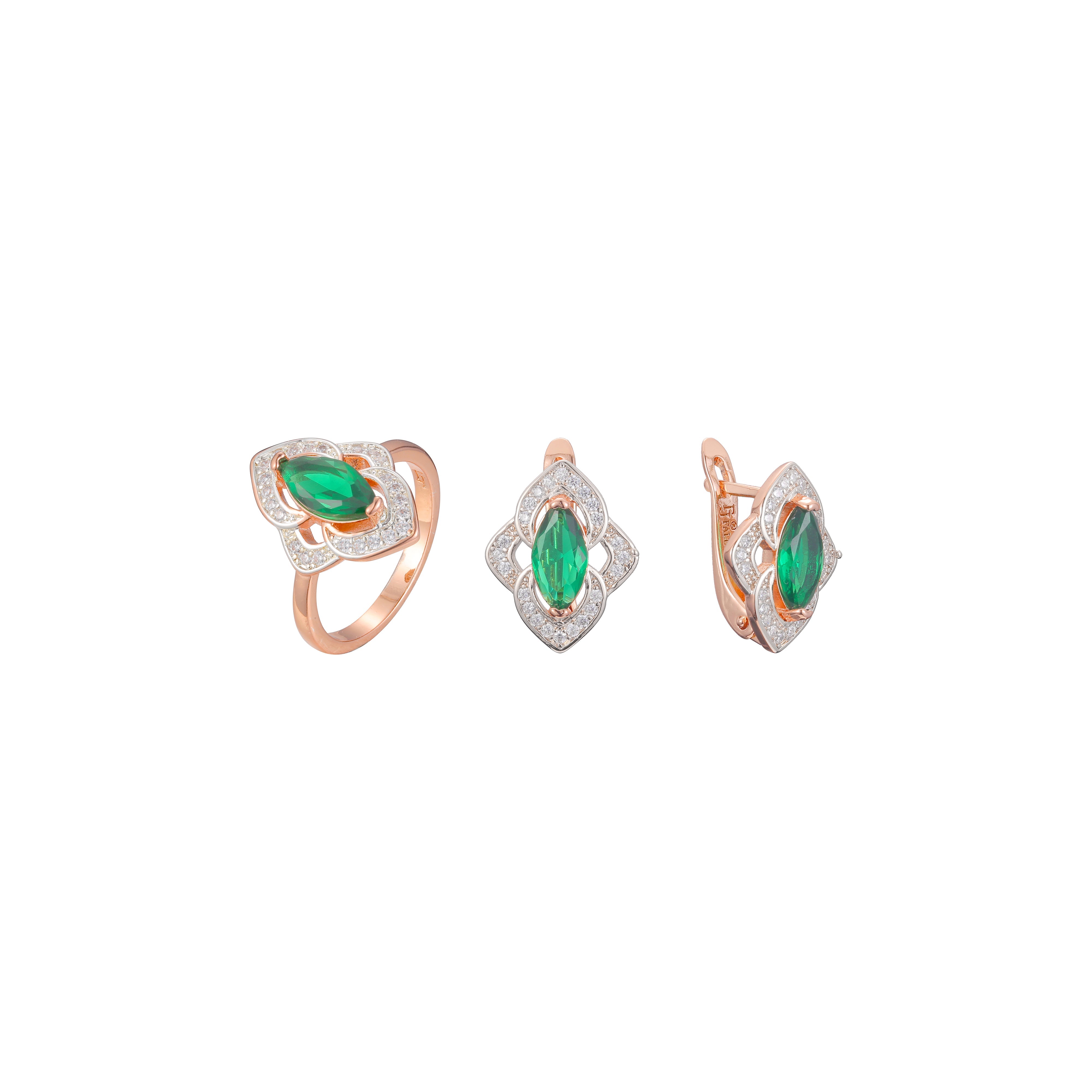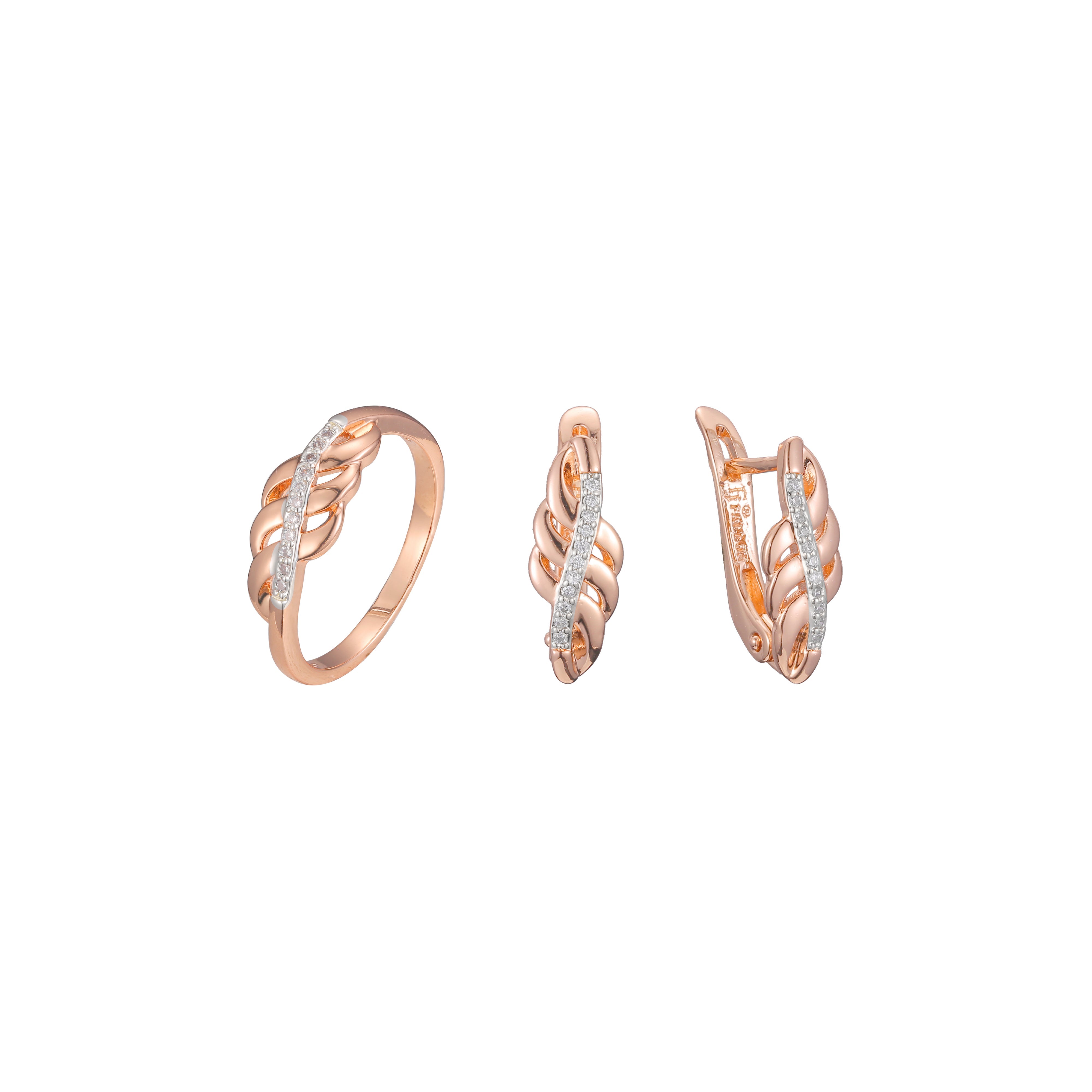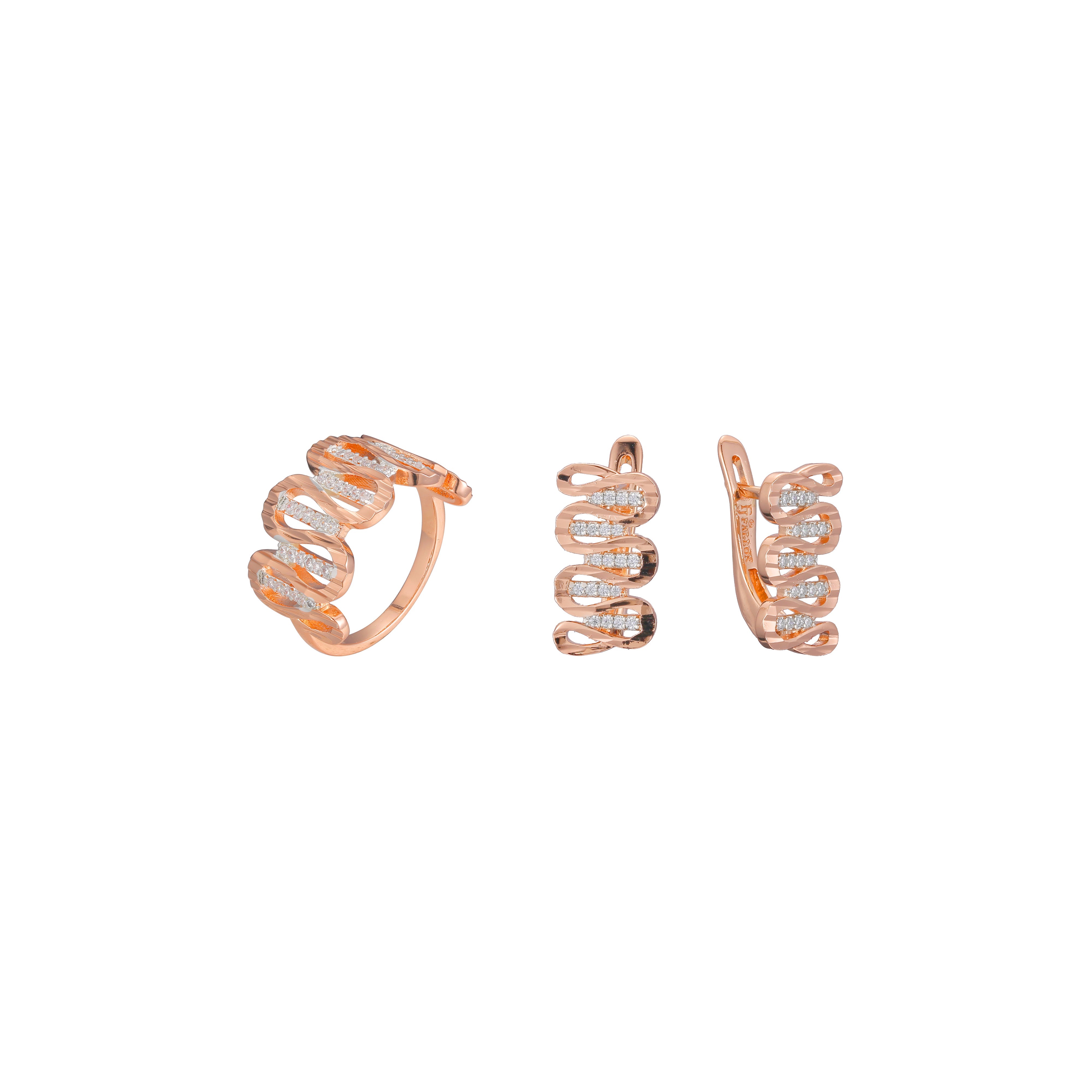 Criss-cross paved stones rings jewelry set plated in Rose Gold colors