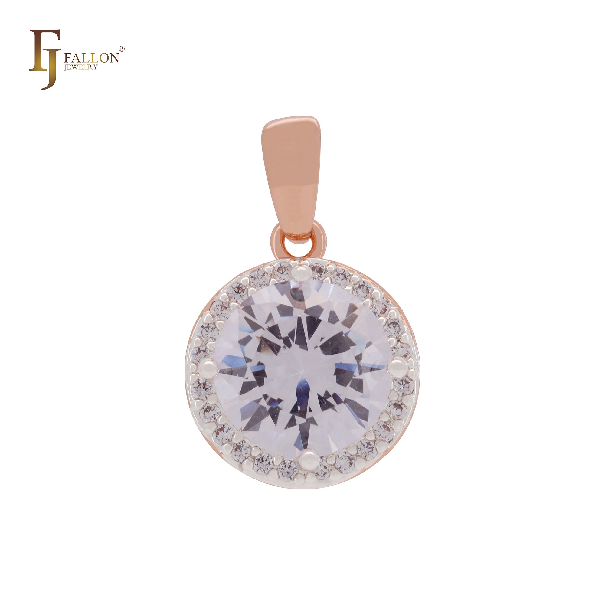 Halo Giant Rounded White Solitaire CZ Rose Gold two tone Pendant