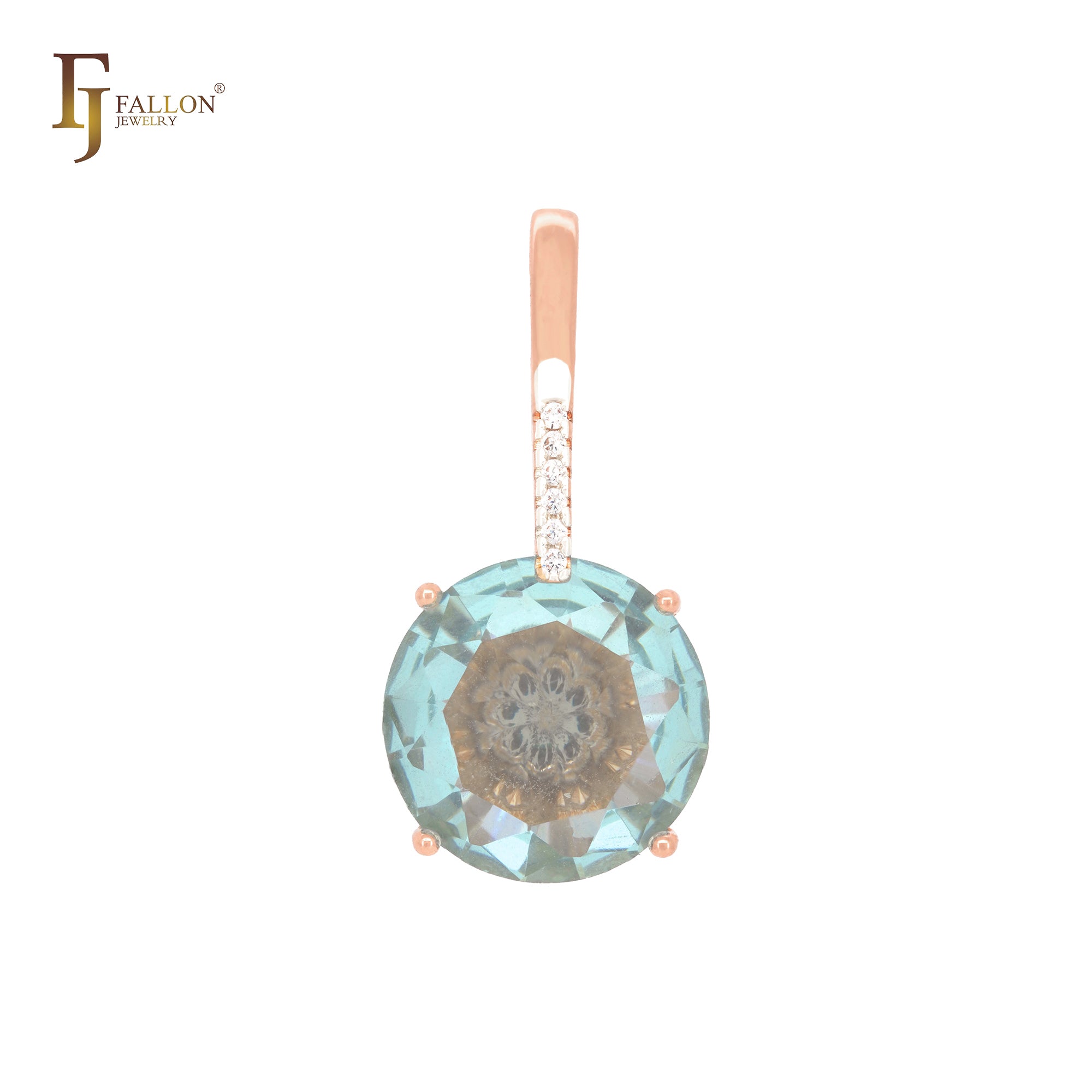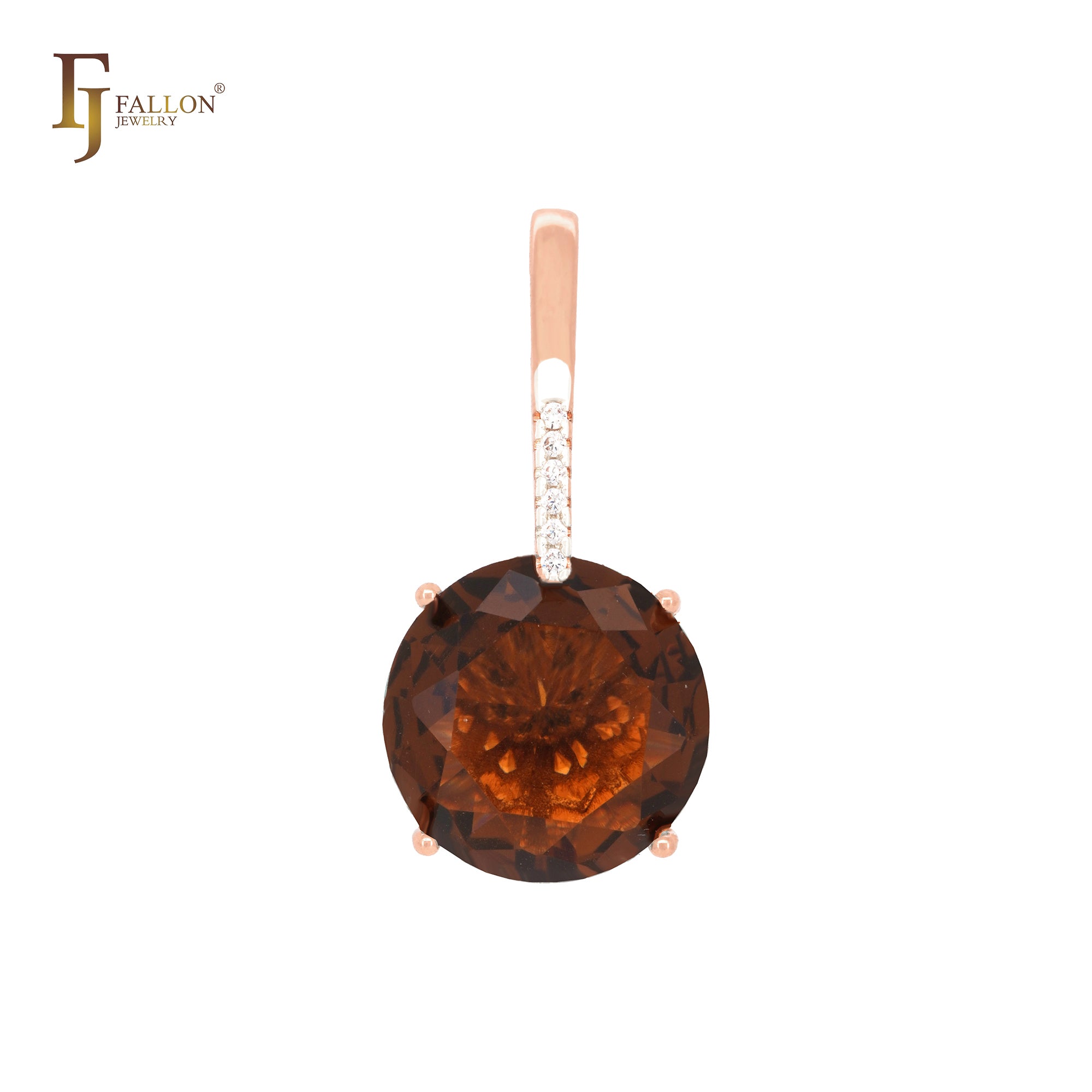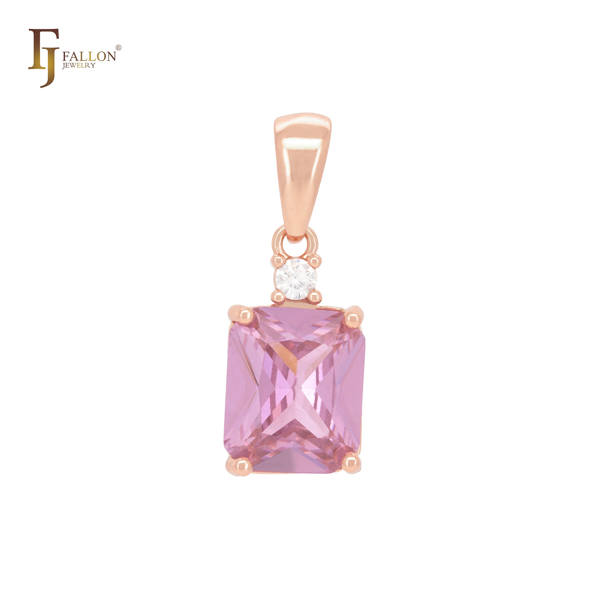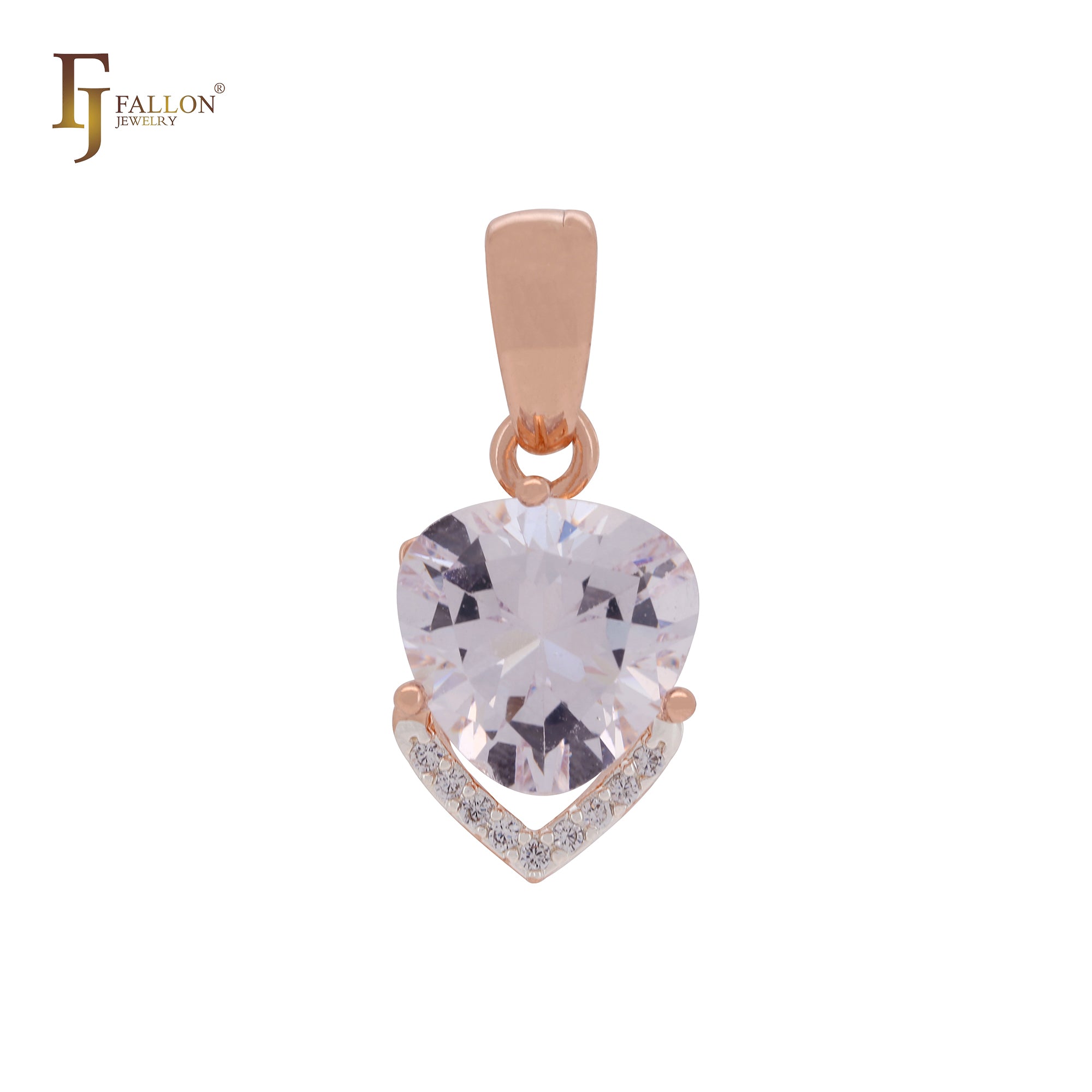 Solitaire big drop colorful clawed CZ Rose Gold pendant