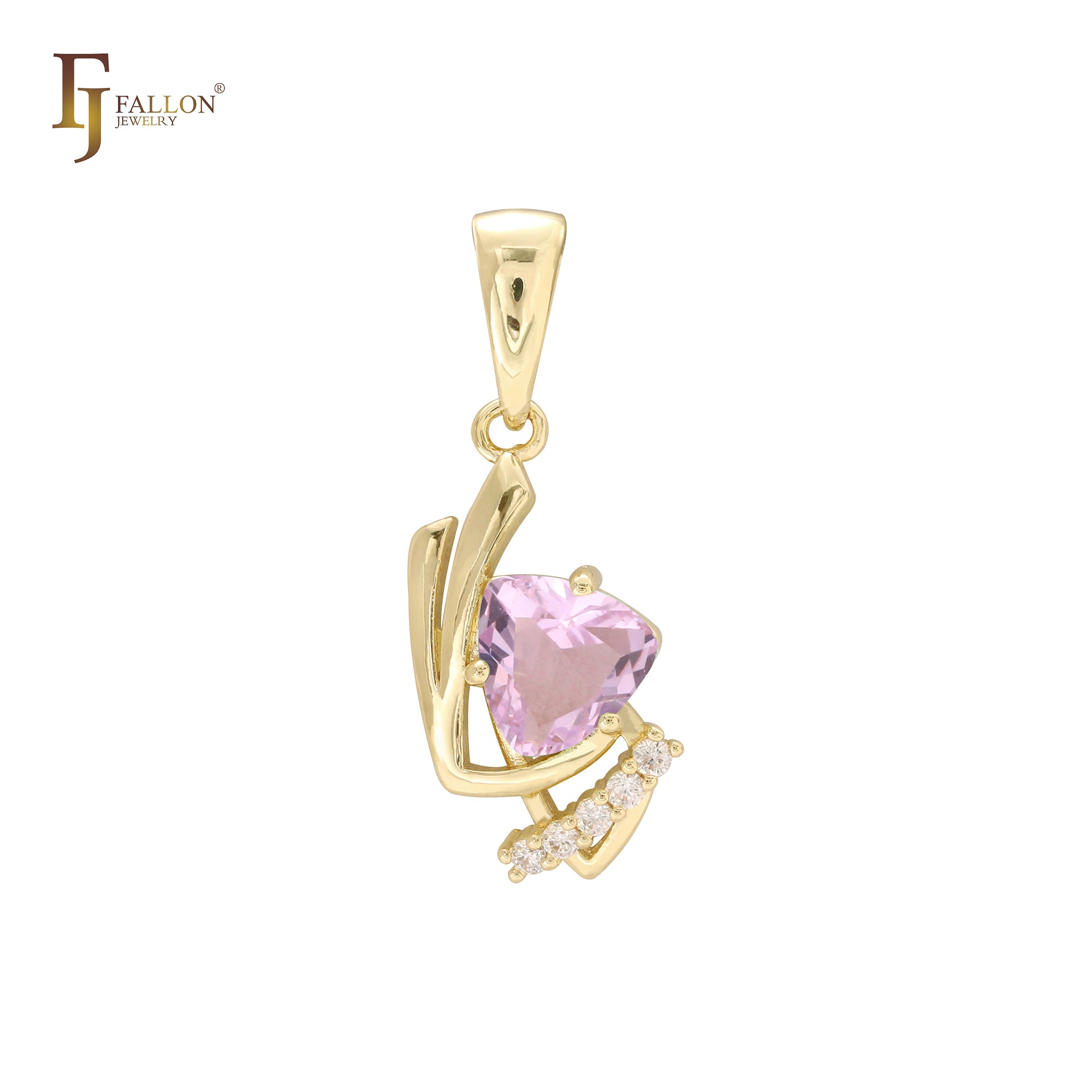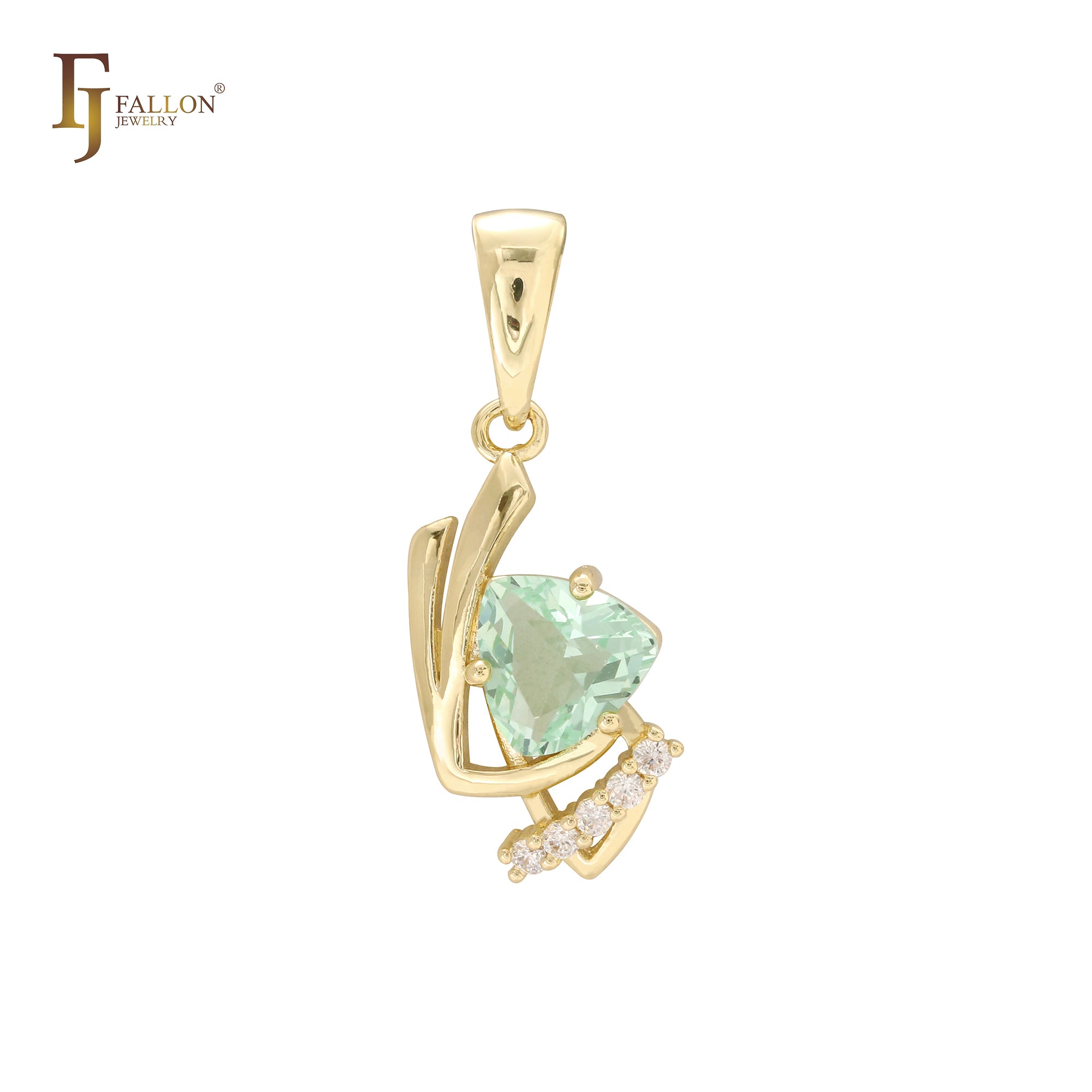 Solitaire triangular colorful CZ 14K Gold, Rose Gold, White Gold Solitaire Pendant